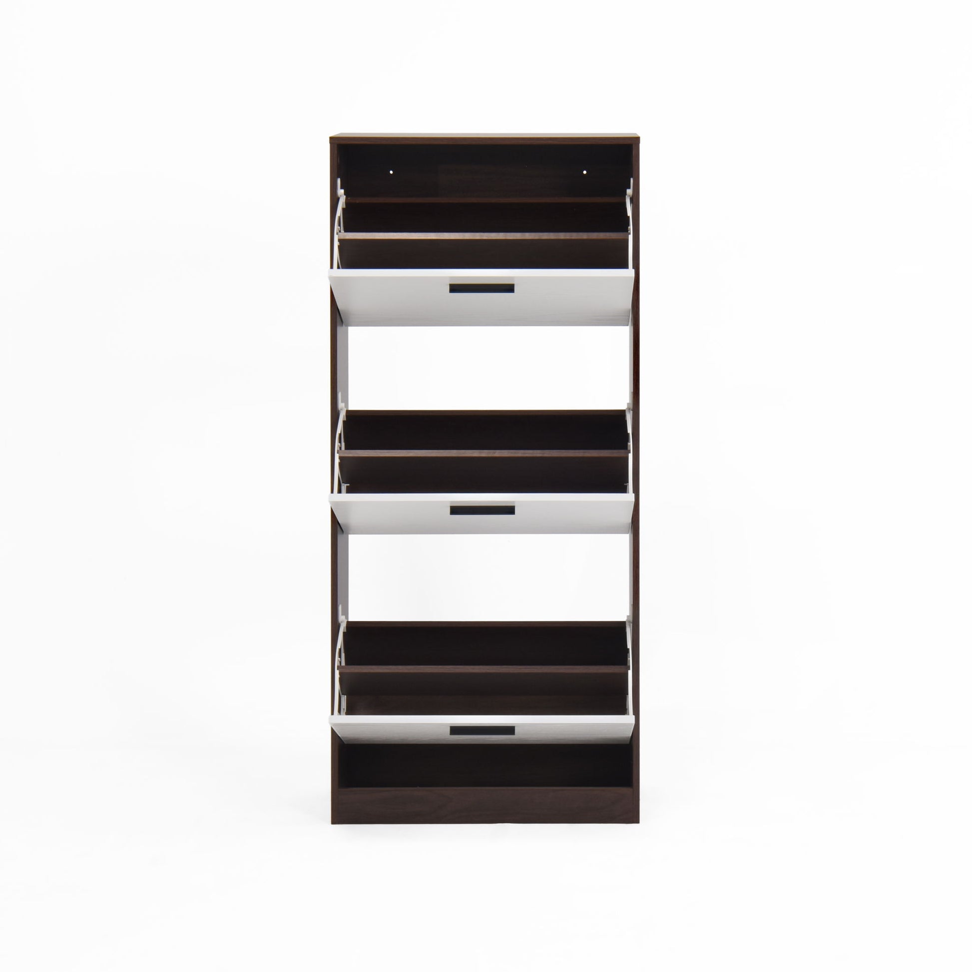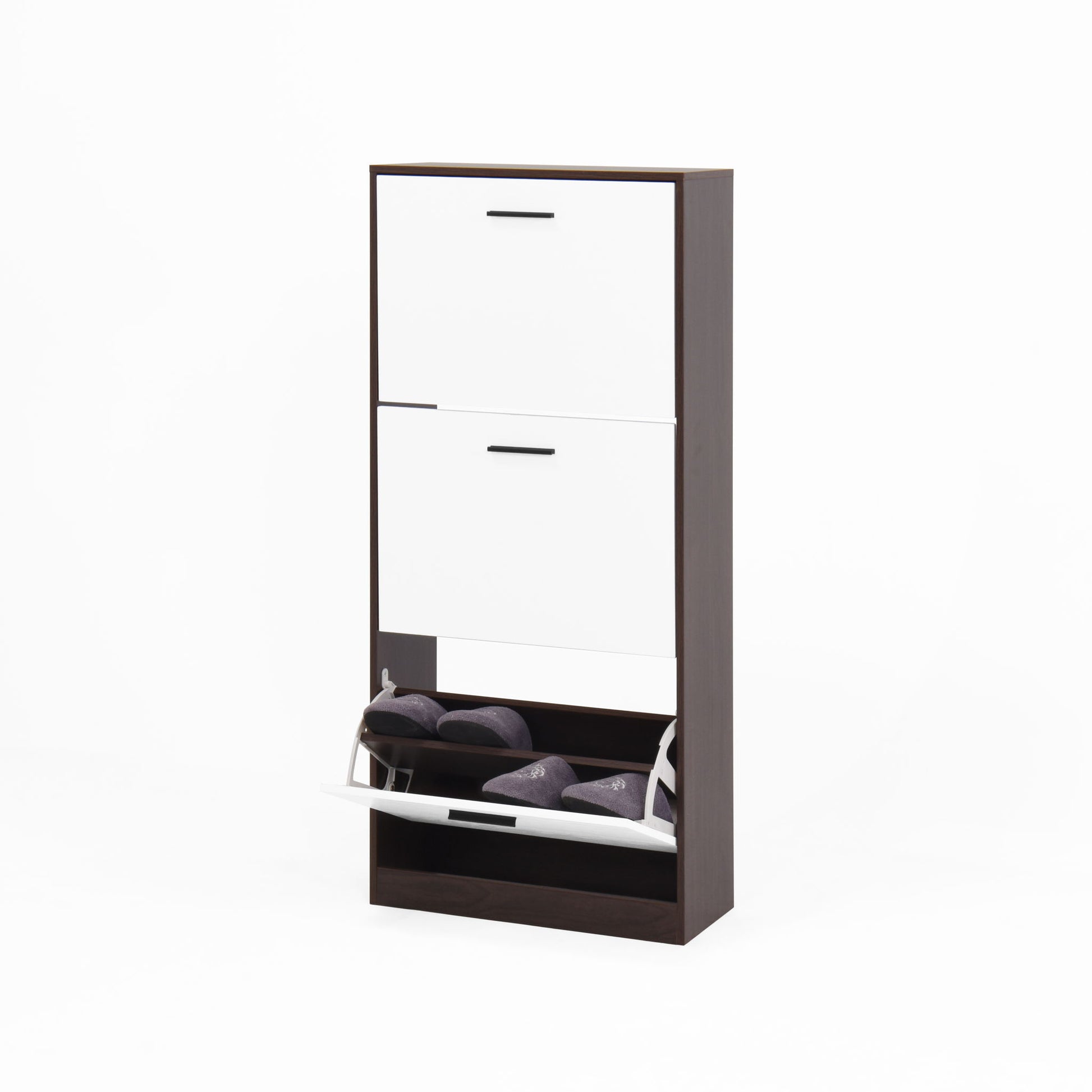 Modern Freestanding Shoe Storage Cabinet With 3 Flip Drawers - White / Walnut