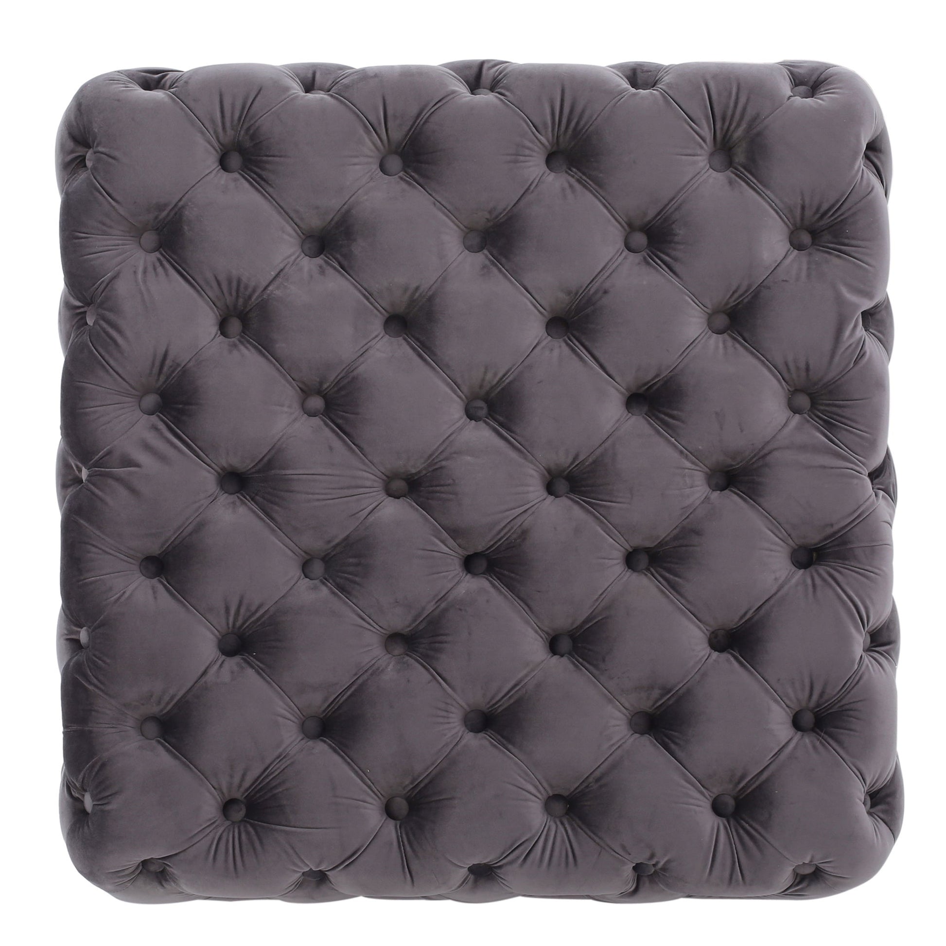 Modern Glam Velvet Ottoman With Button Tufted Diamond Stitch Design - Gray