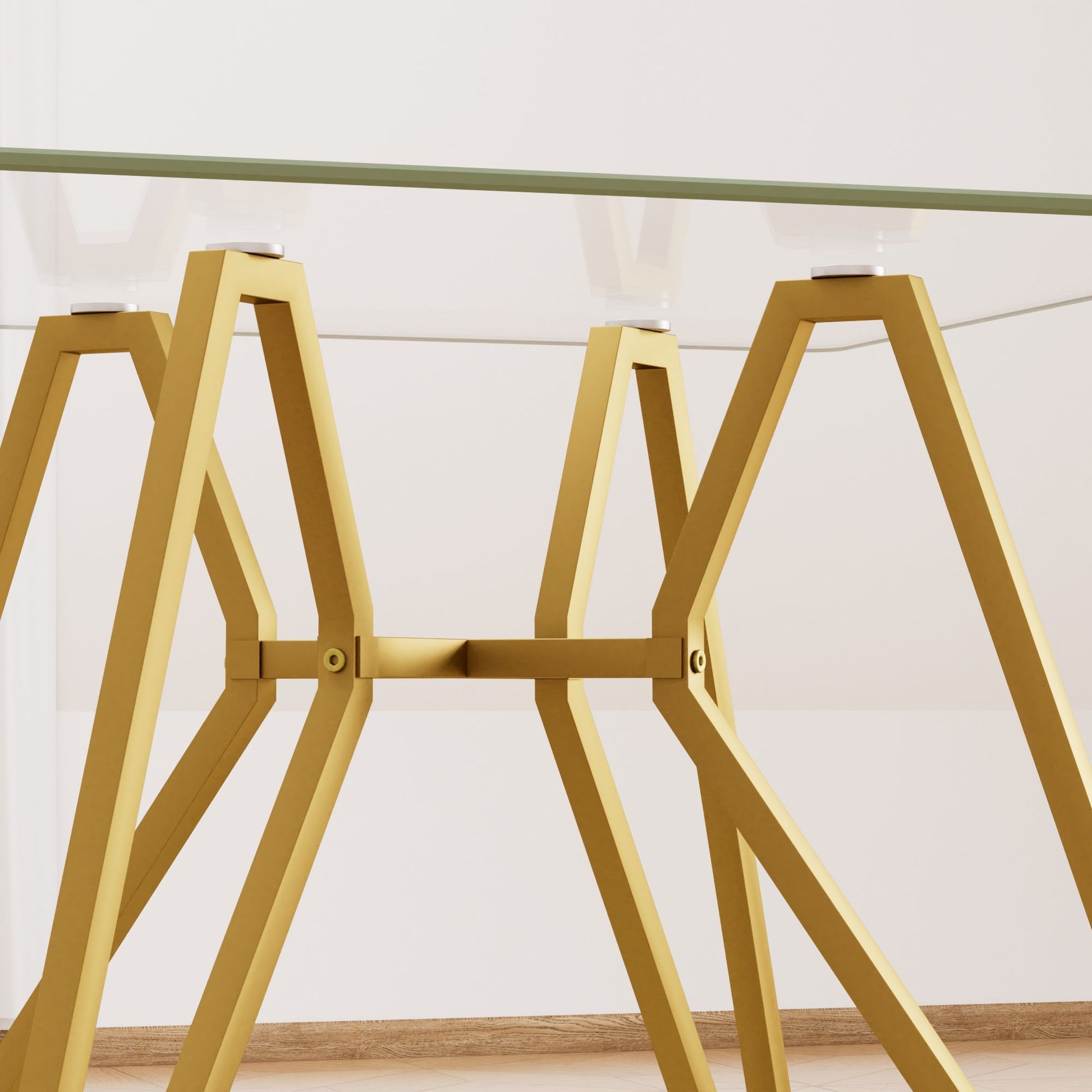 Modern Rectangular Glass Dining Table With Sturdy Metal Legs For Dining Room, Living Room, And Office - Gold