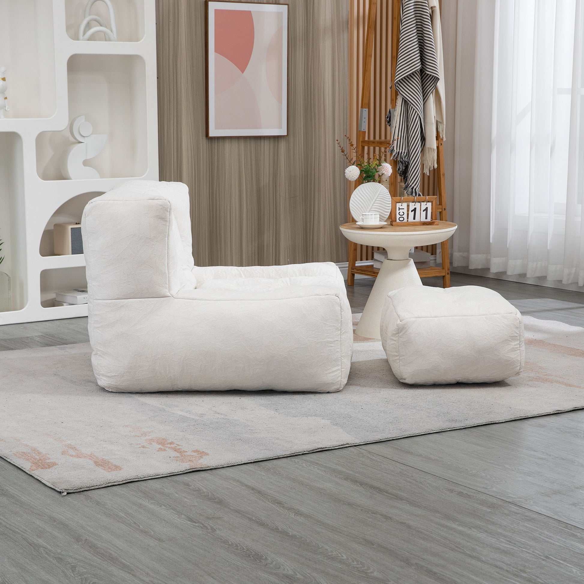 Fluffy Bean Bag Chair, Comfortable Bean Bag For Adults And Children, Super Soft Lazy Sofa Chair With Memory Foam And Ottoman, Indoor Modern Focus Bean Bag Chair For Living Room, Bedroom, Apartment - White