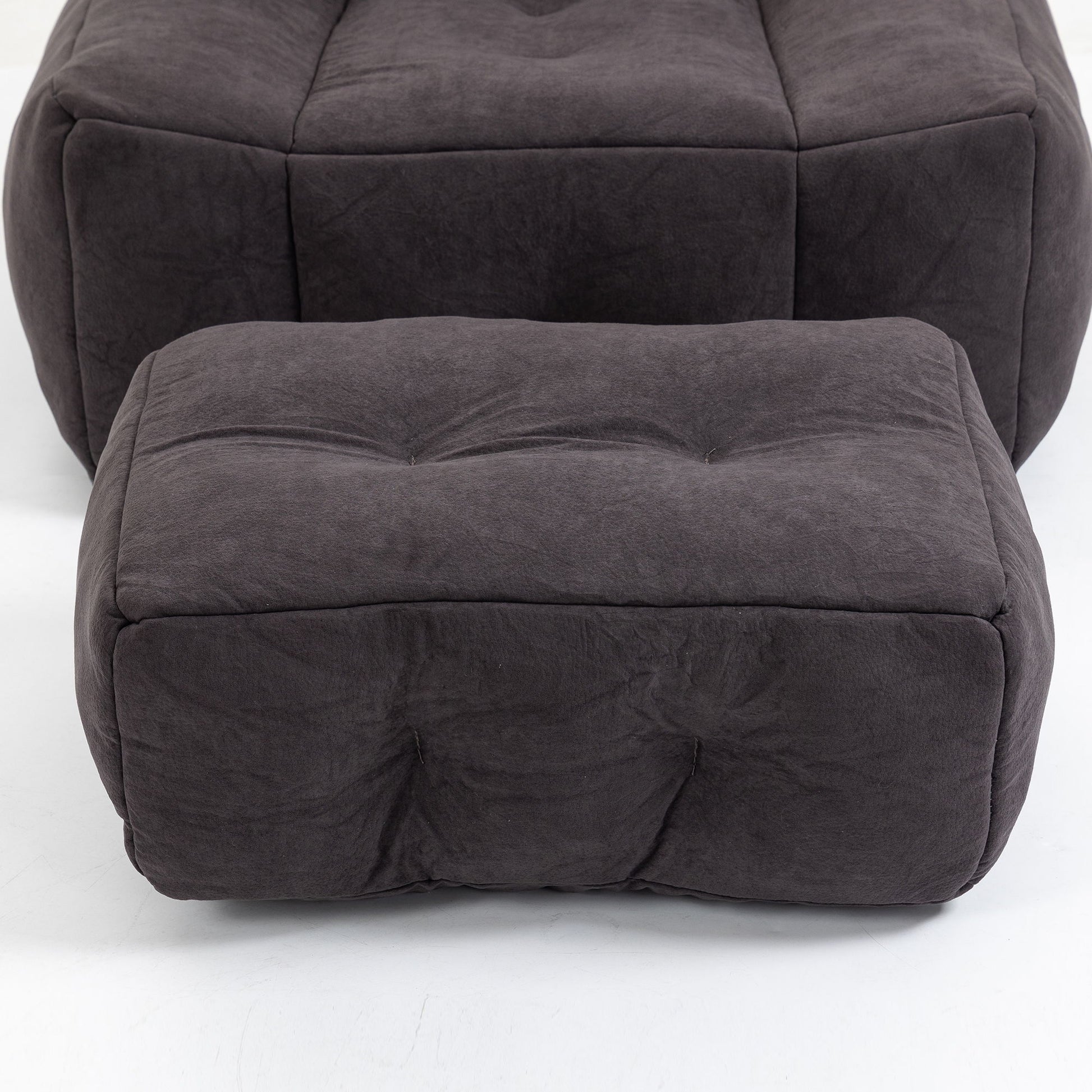 Modern Indoor Fluffy Bean Bag Chair With Memory Foam And Ottoman Super Soft Velvet - Brown