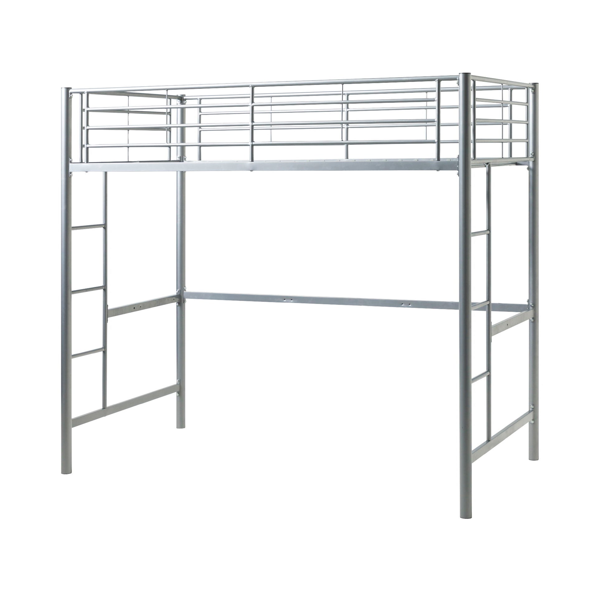 Modern Industrial Twin Over Loft Metal Bunk Bed Frame With Integrated Guardrails - Silver