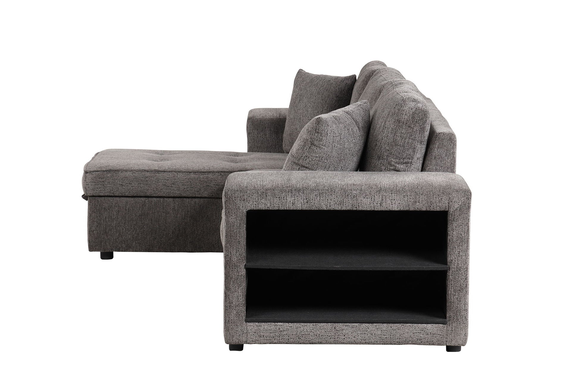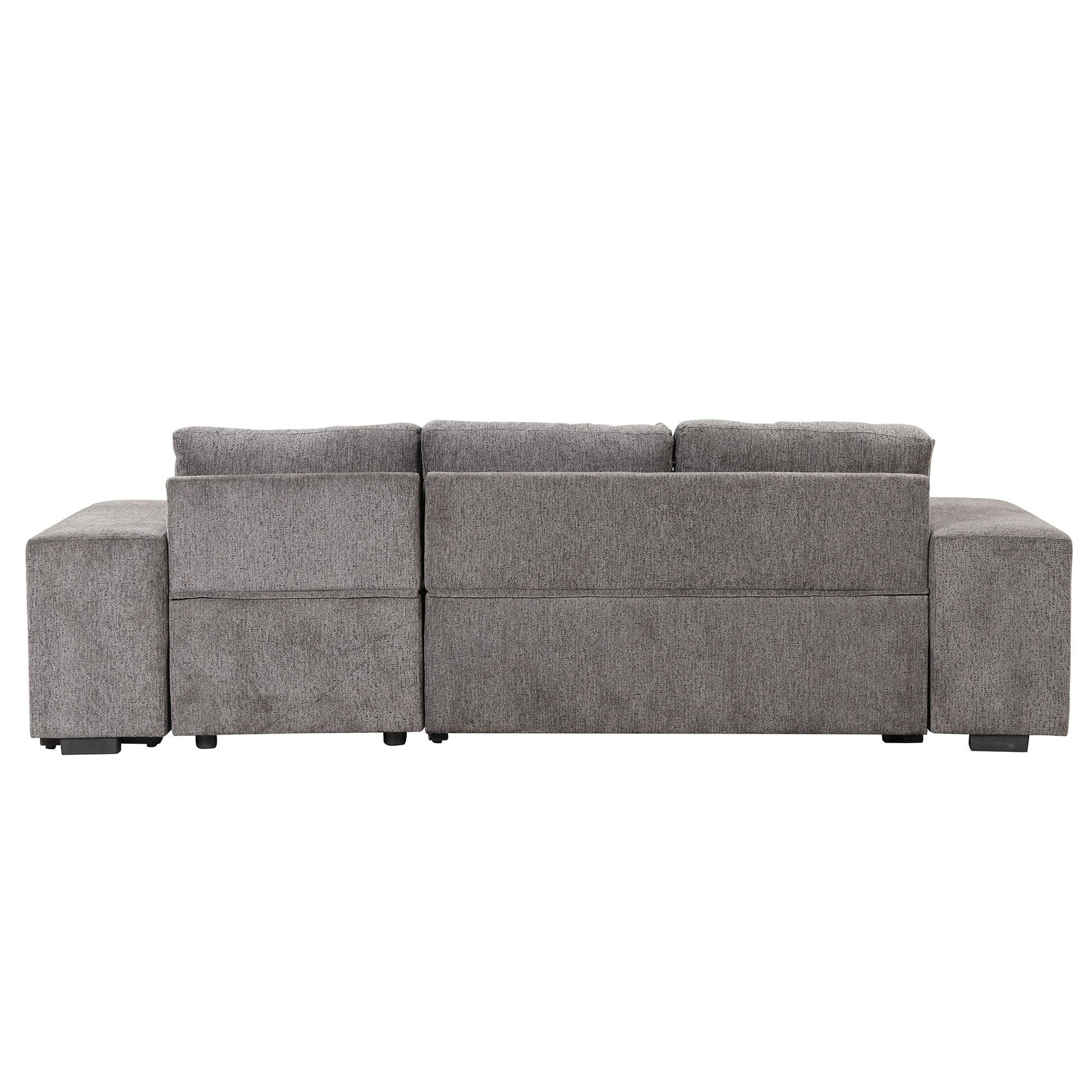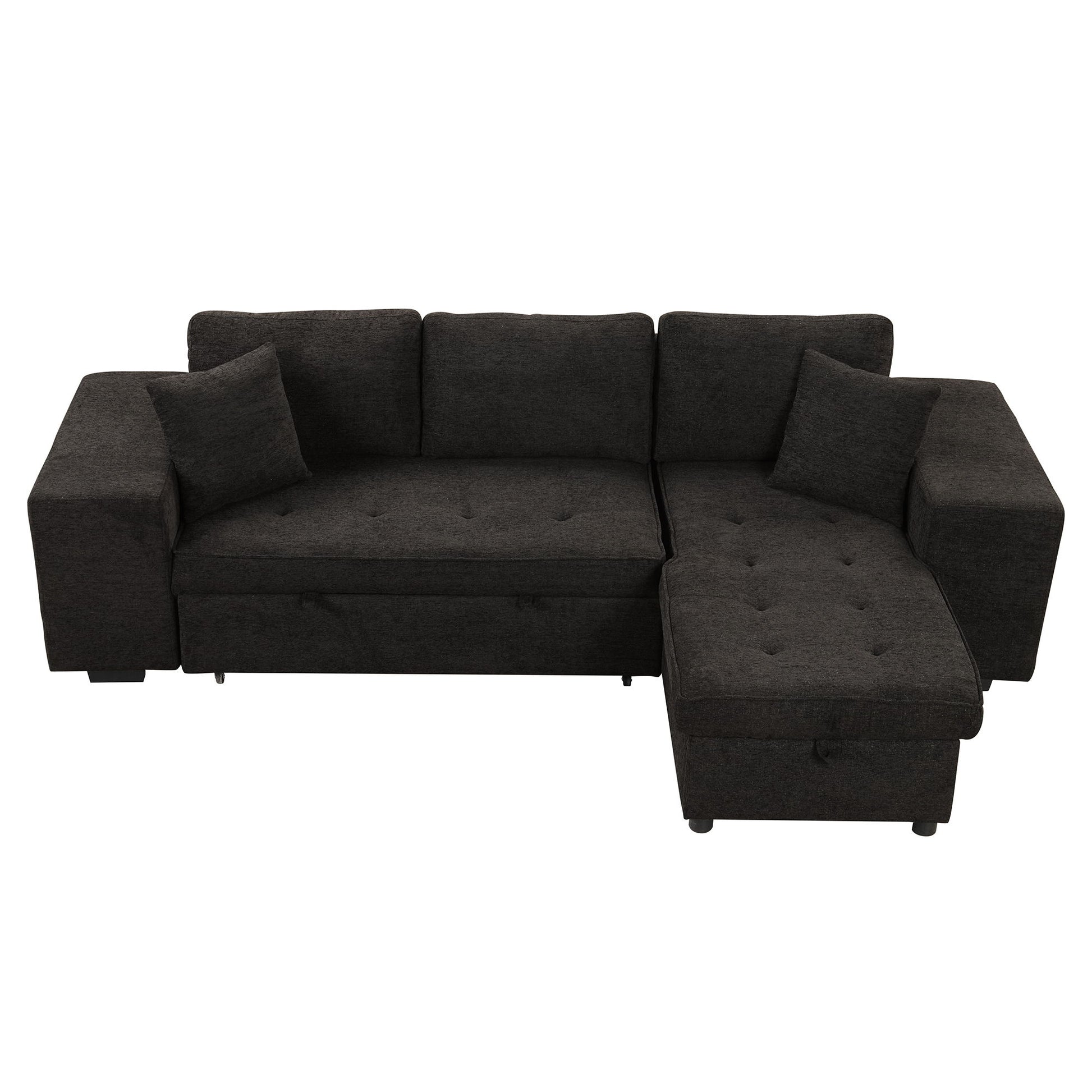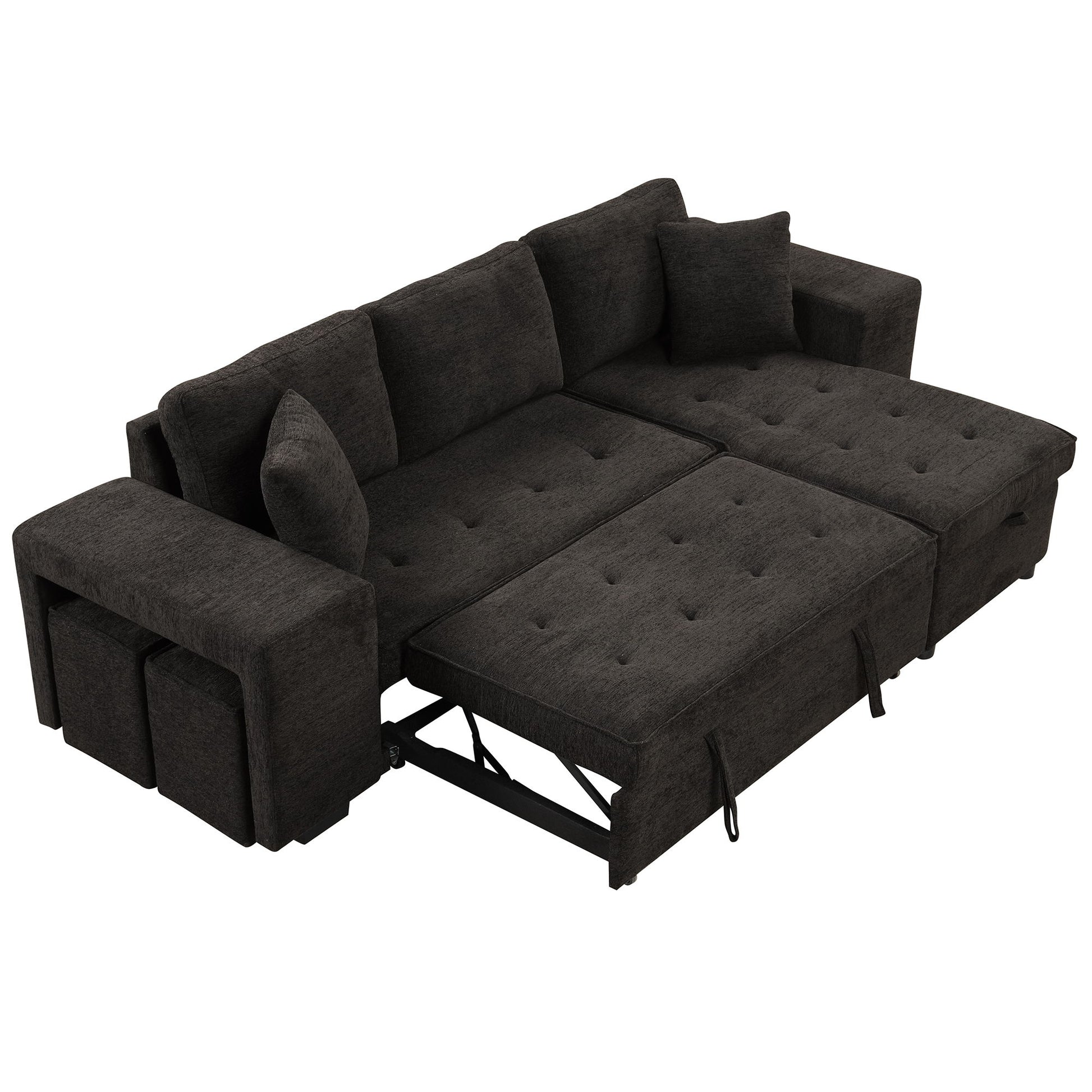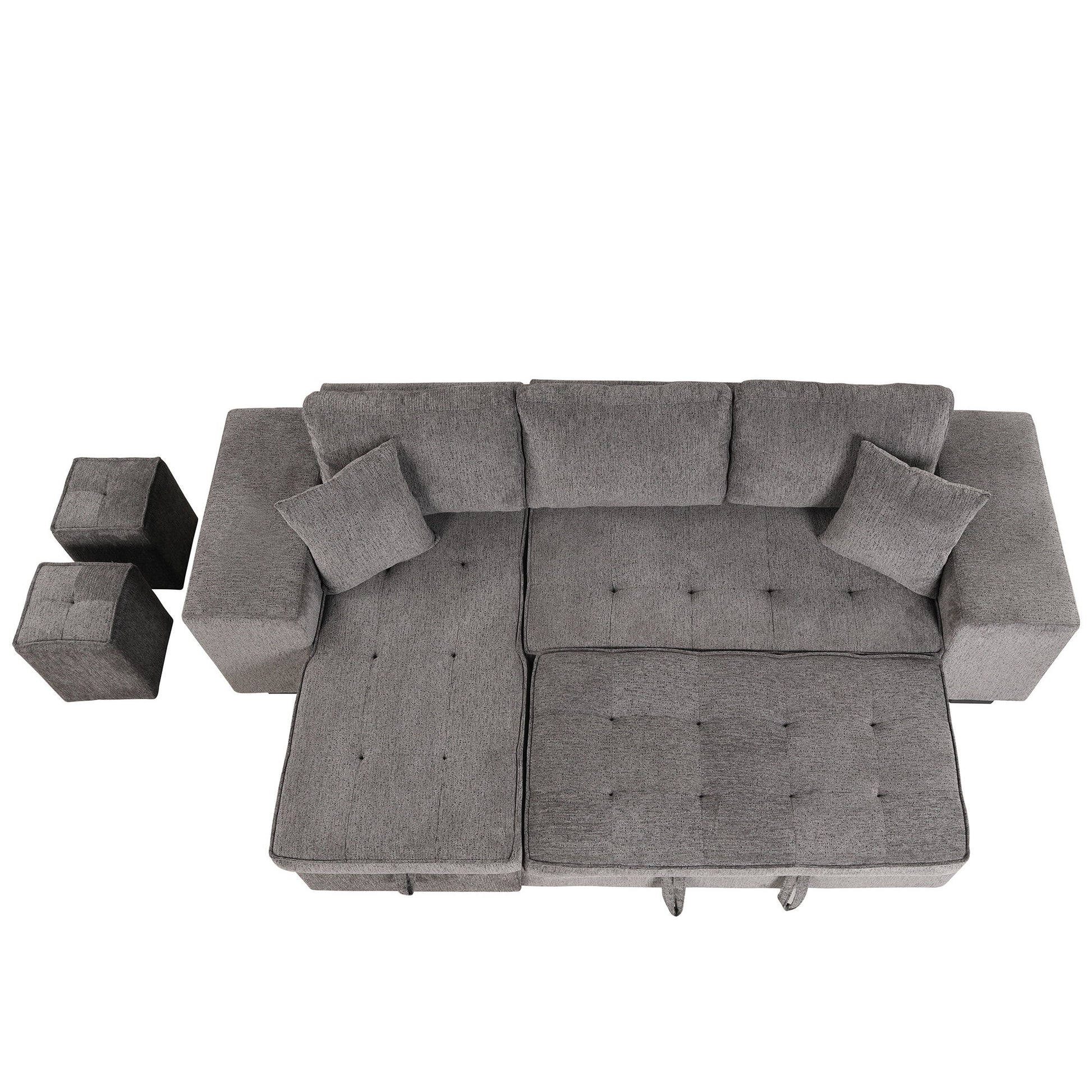 Modern L-Shape 3 Seat Reversible Sectional Couch, Pull Out Sleeper Sofa With Storage Chaise And 2 Stools For Living Room Furniture Set - Charcoal Gray