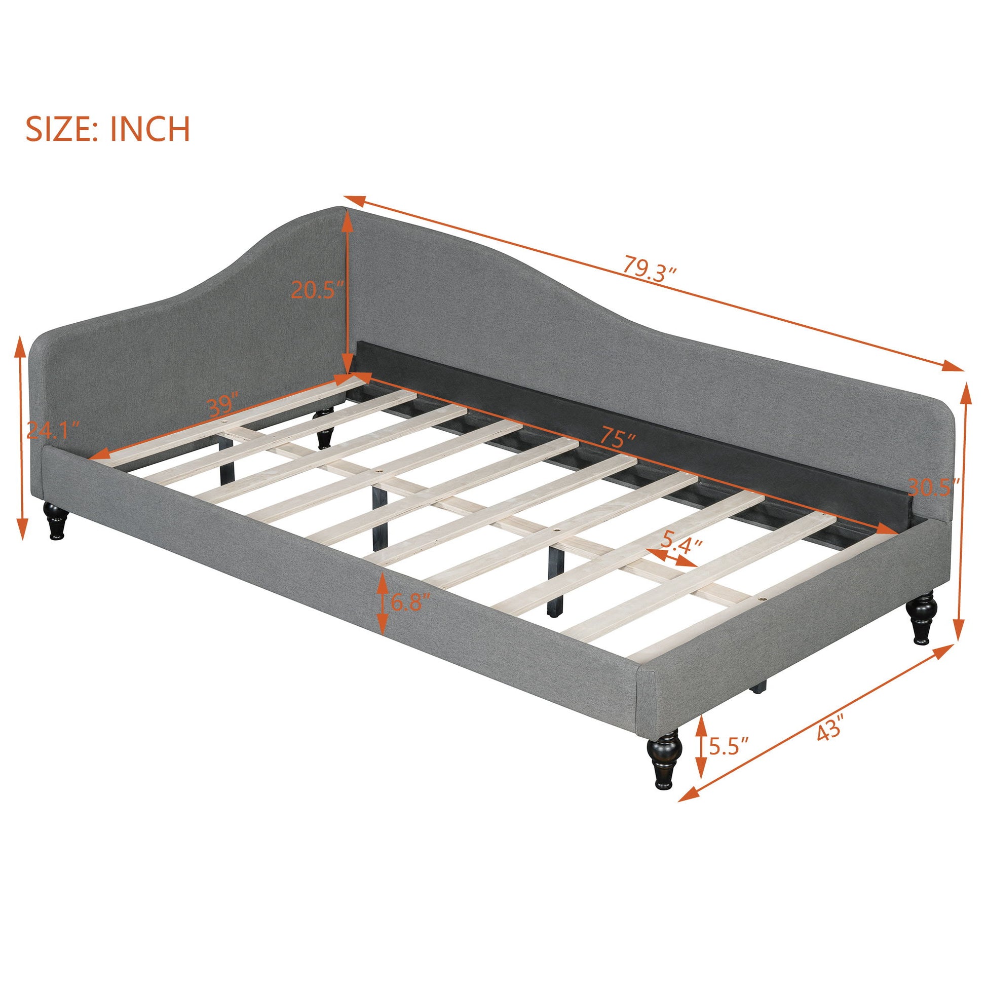 Twin Size L Shaped Linen Daybed With Legs - Gray