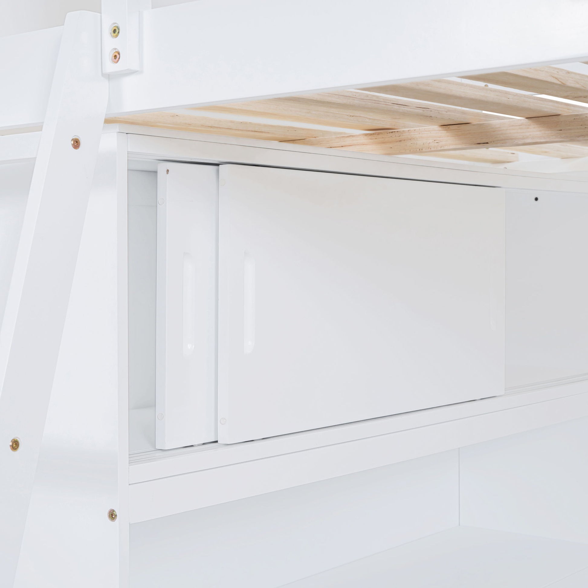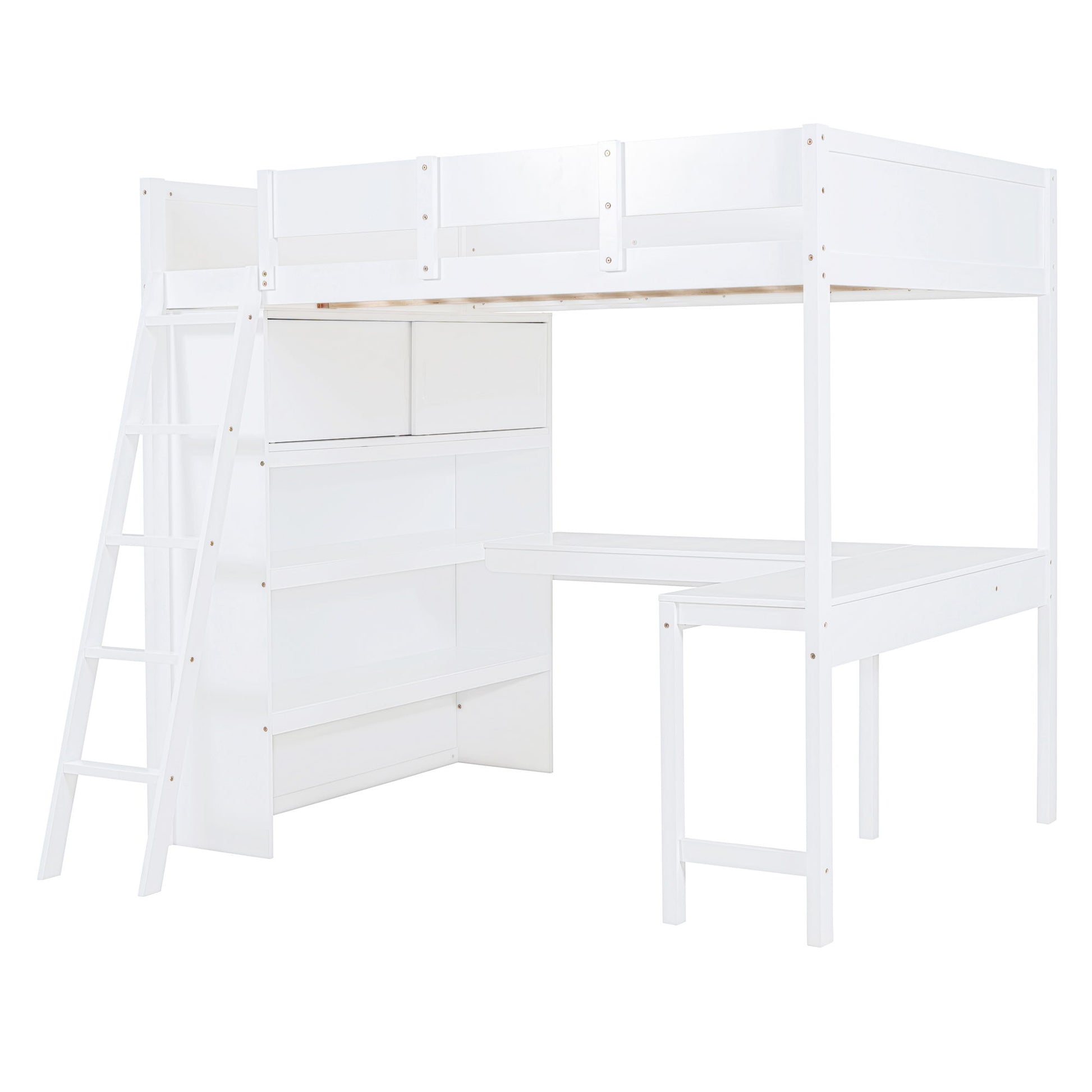 Full Size Loft Bed With Desk And Storage Shelves - White
