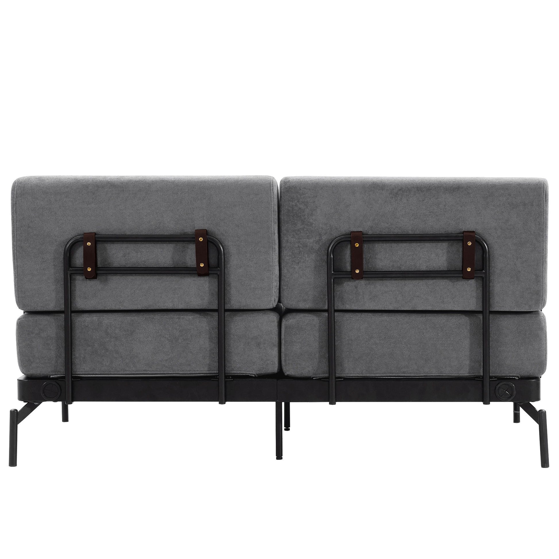 Modern Loveseat Sofa 59" Sofa Couch 2 Seater With USB Ports, Unique Cylindrical Armrests - Gray