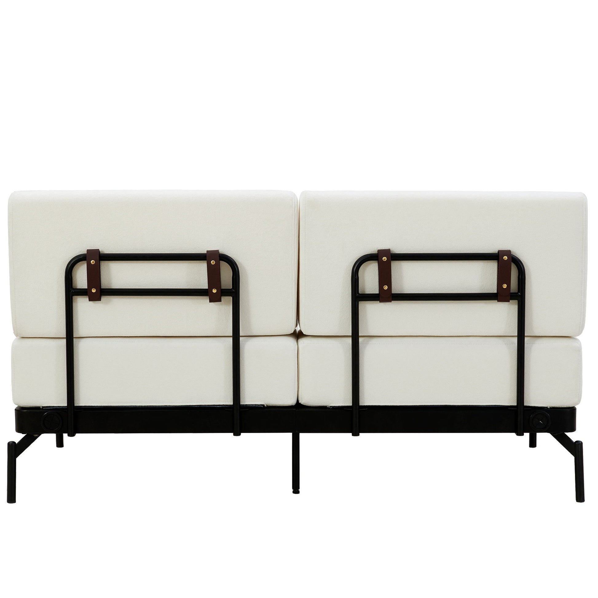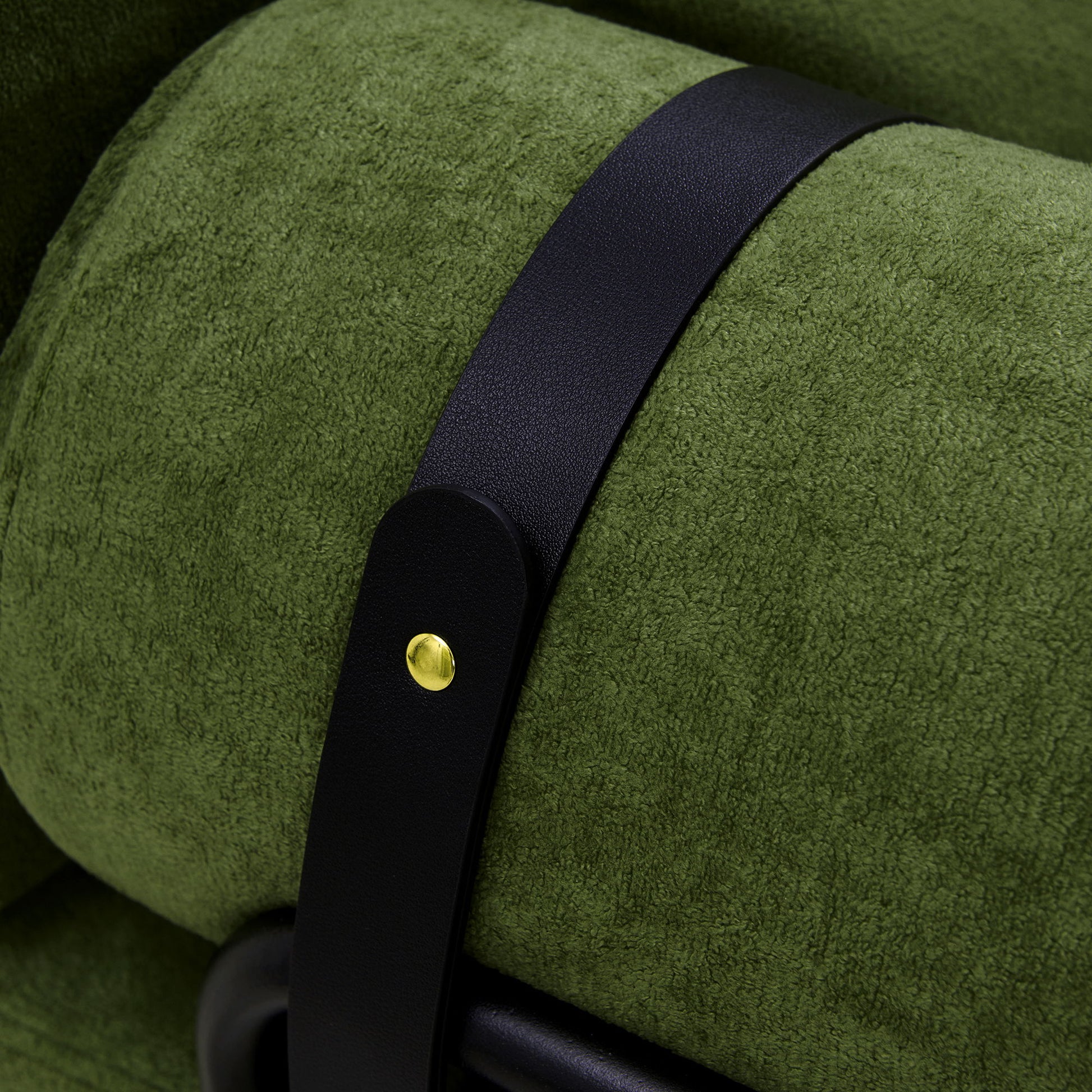 - Unique Cylindrical Armrest Design: This loveseat features uniquely designed cylindrical armrests with faux leather straps, adding both style and support.