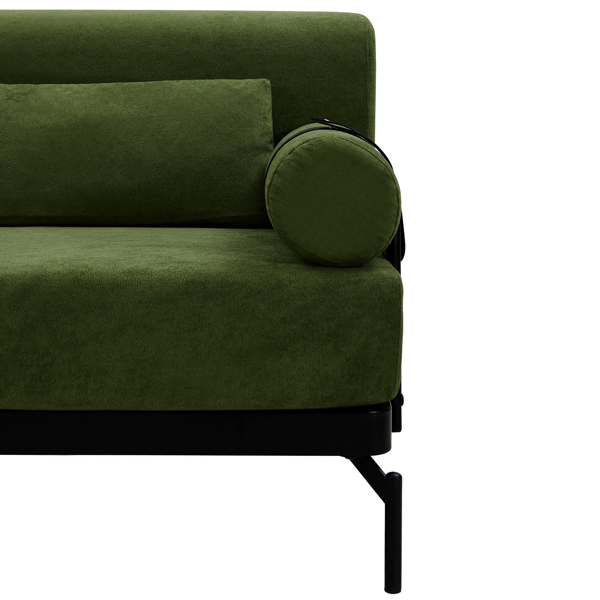Modern Loveseat Sofa 2 Seater With USB Ports, Cylindrical Armrests - Green