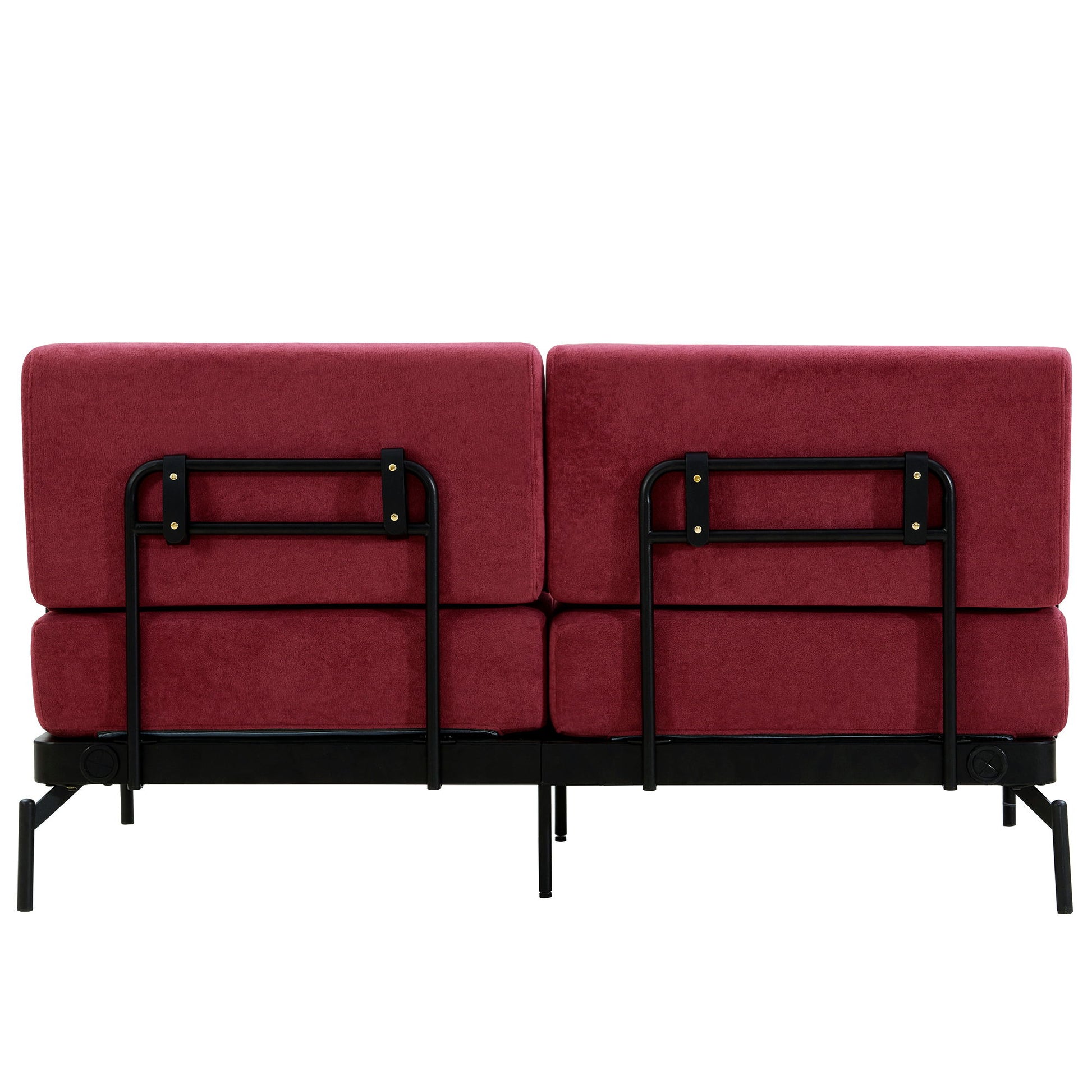 Modern Loveseat Sofa 59" Sofa Couch 2 Seater With USB Ports, Unique Cylindrical Armrests - Red