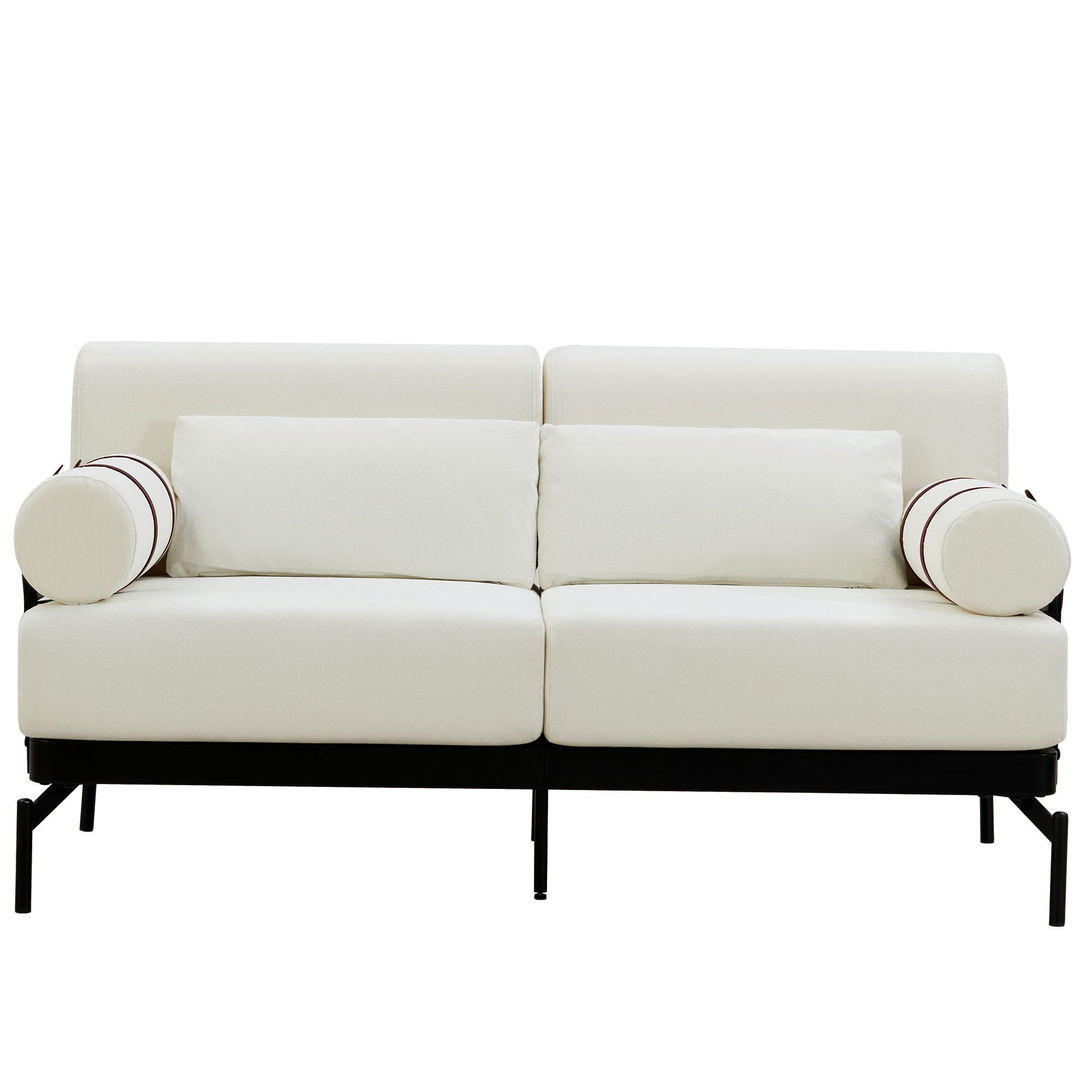 Modern Loveseat Sofa 59" Couch With Flexible USB Ports, Unique Cylindrical Armrests - Beige