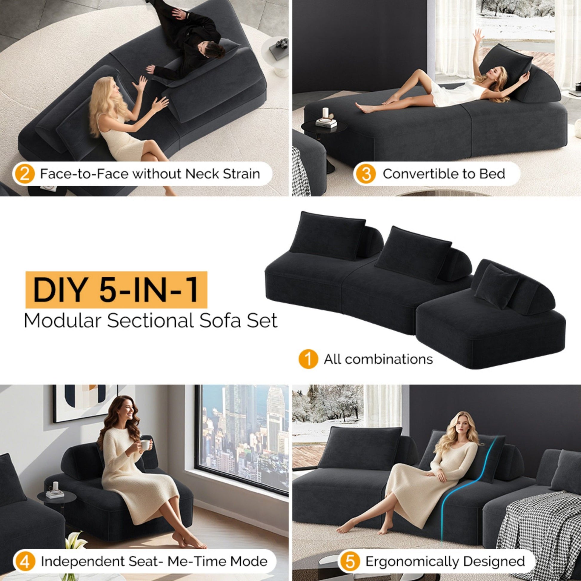 Oversized Modular Sectional Sofa Set With Removable Backrests And Soft Pillows, Deep Seat Couch & Sofa Bed For Living Room - Dark Gray