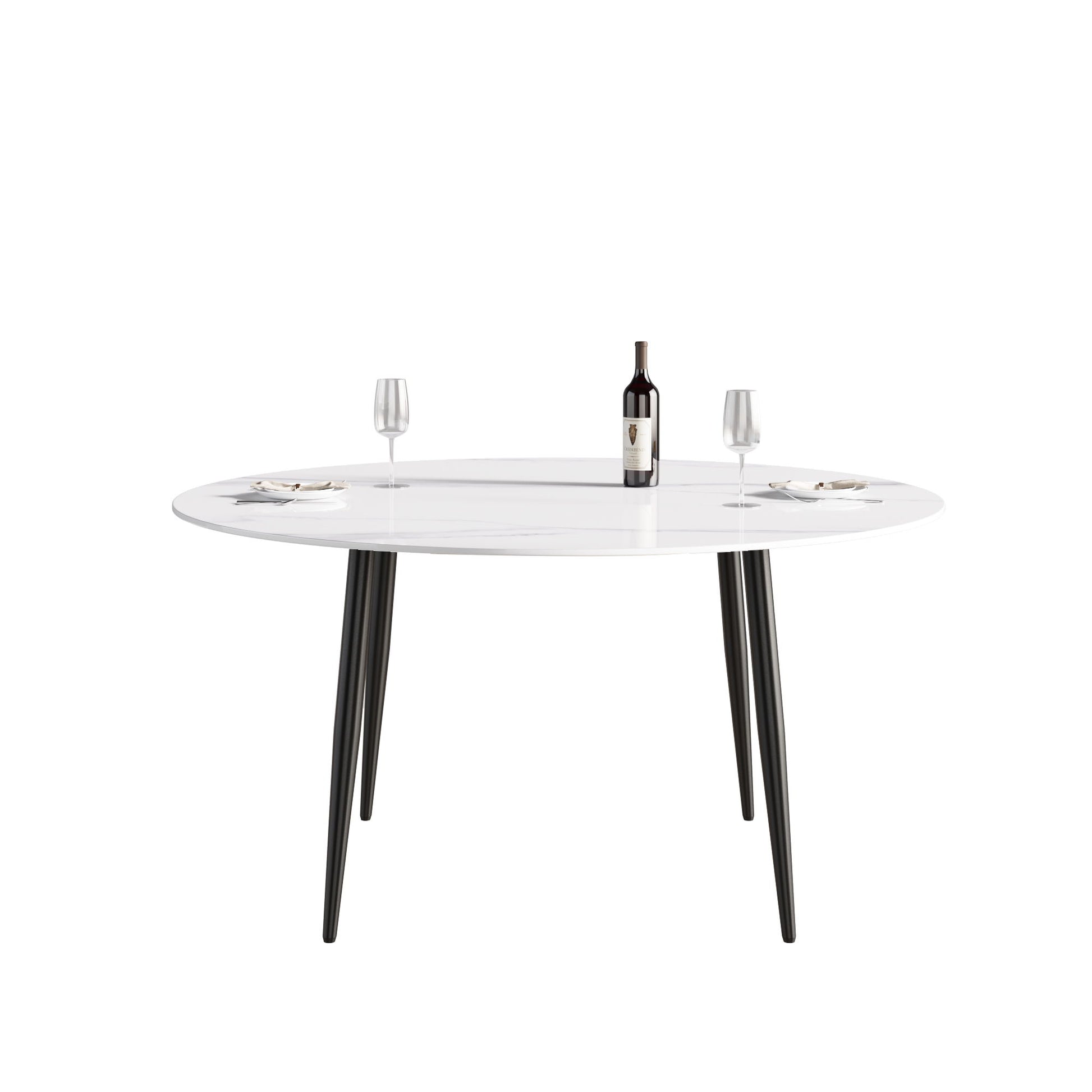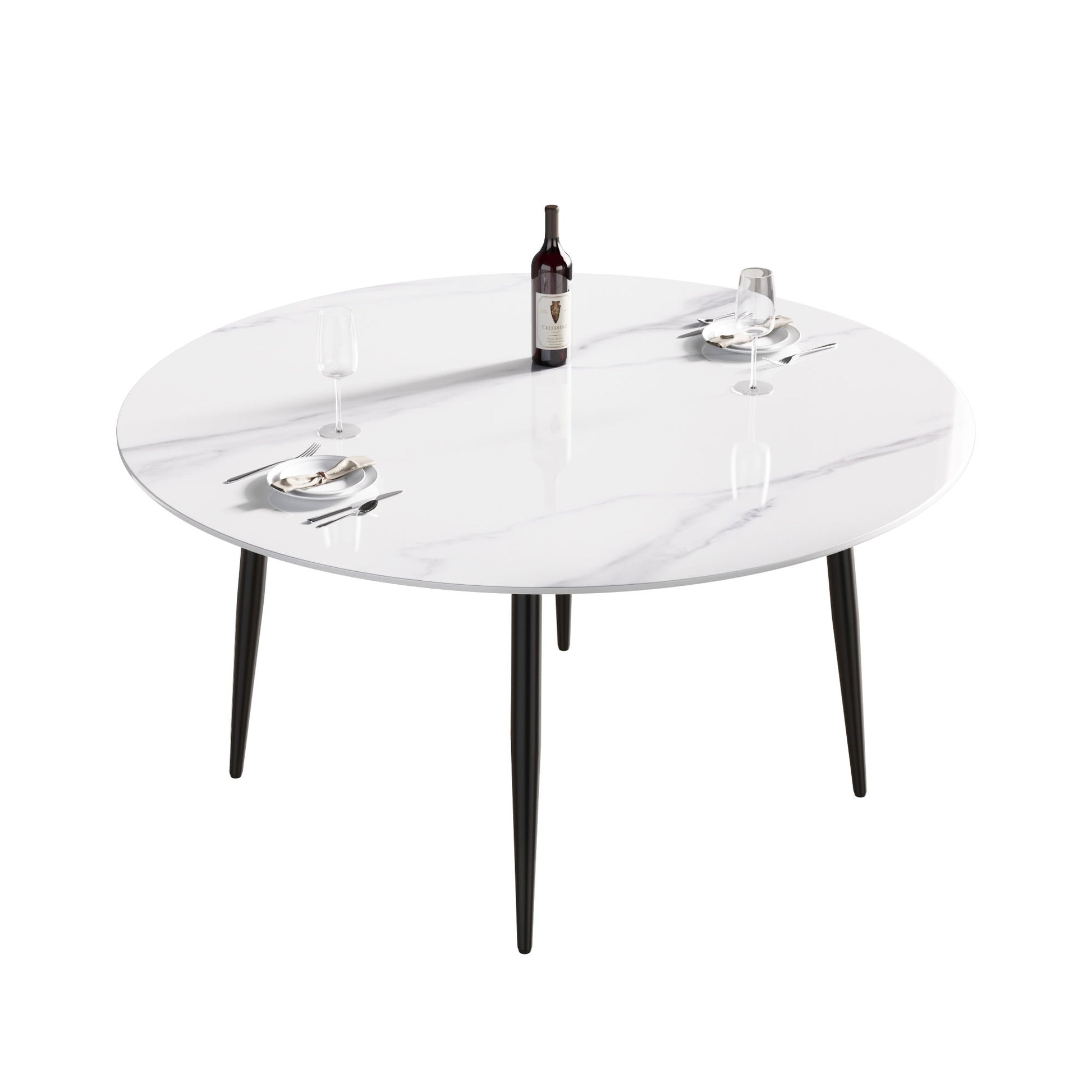 59.05" Modern Man-Made Stone Round Metal Dining Table-Position For 6 People - White / Black