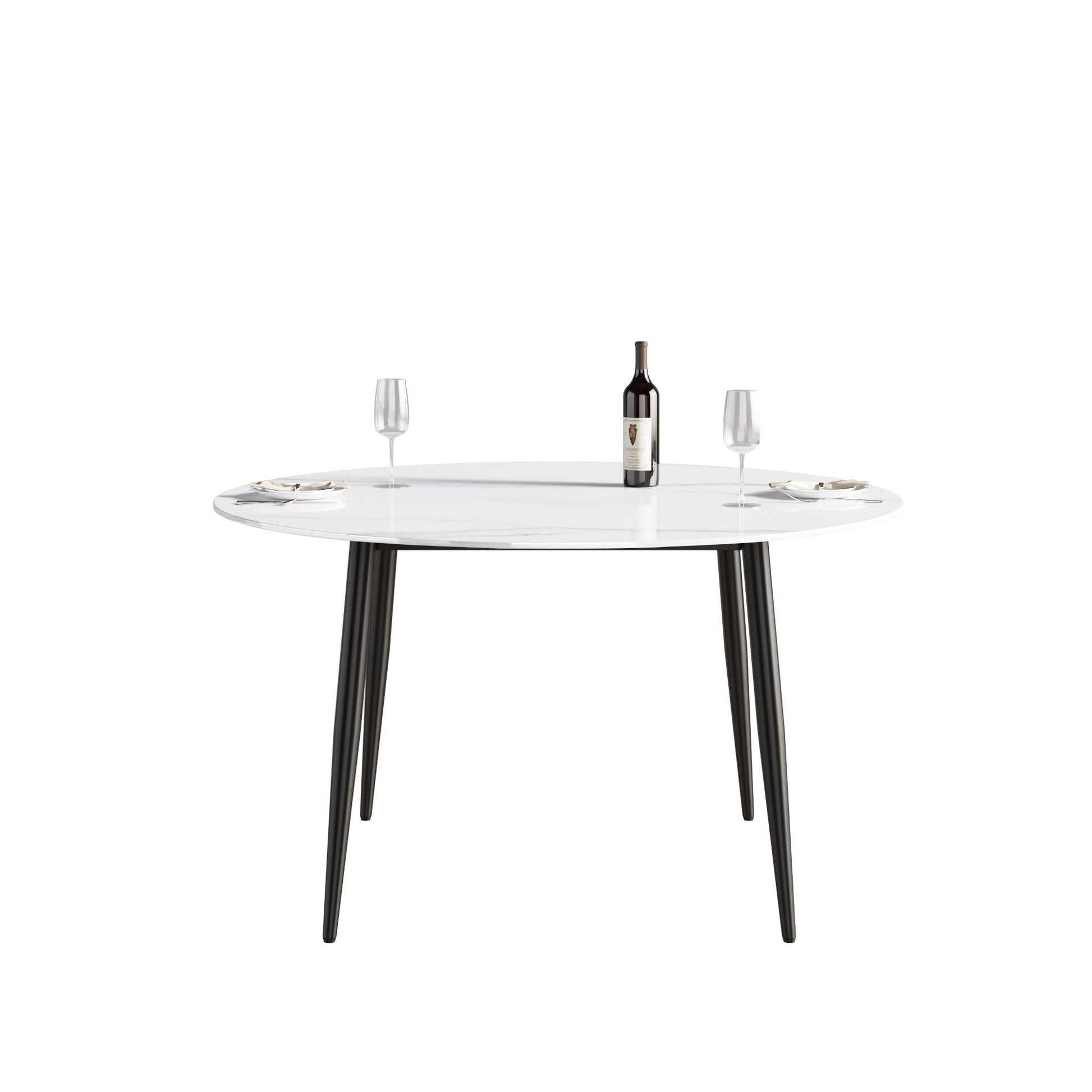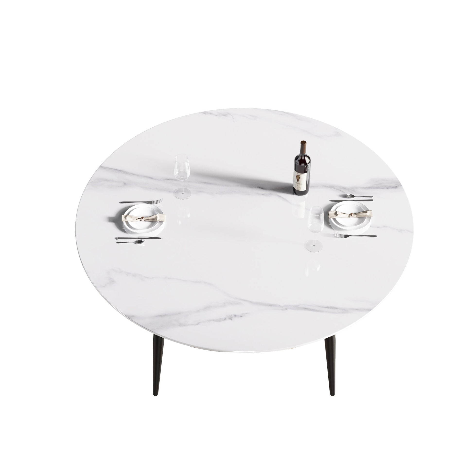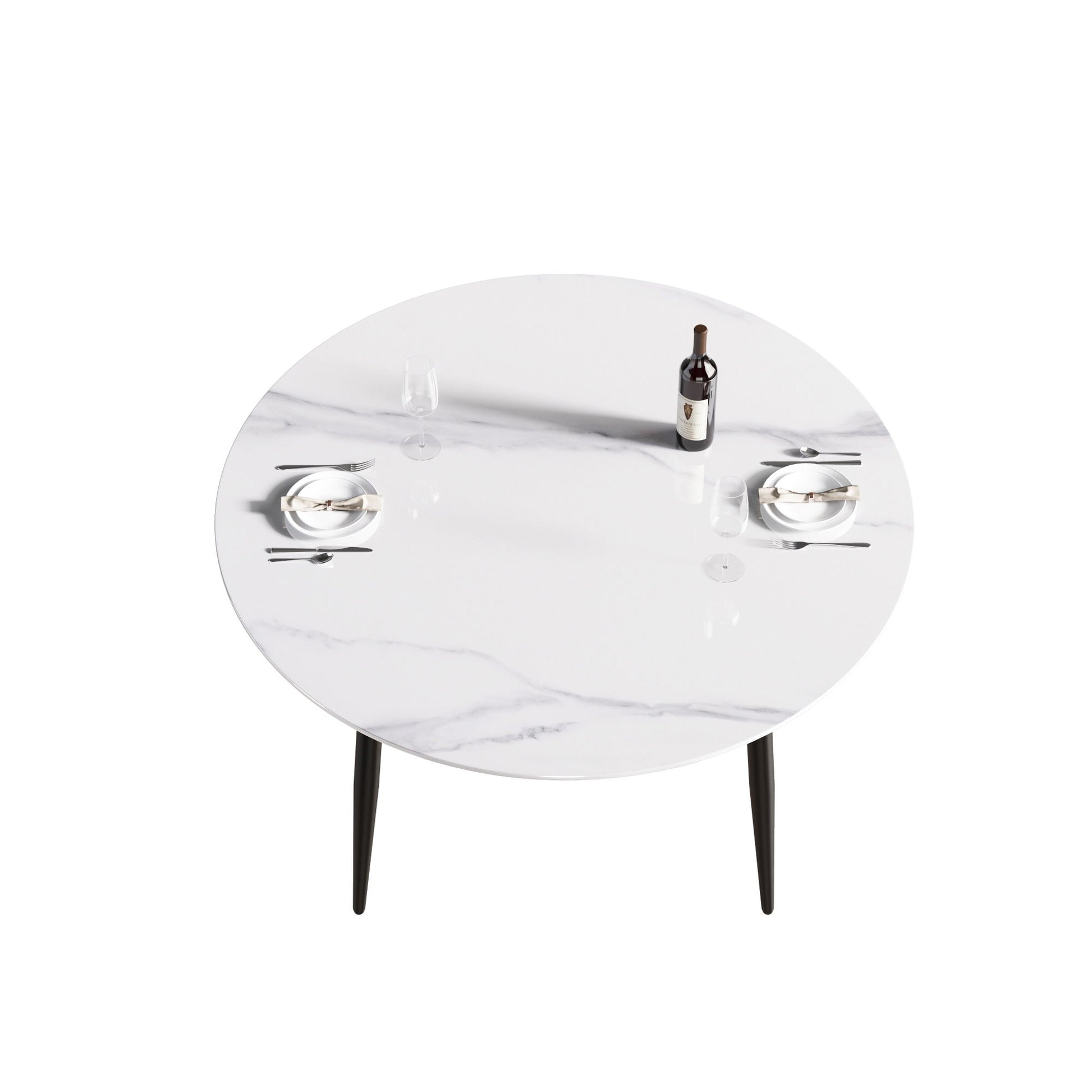 Modern Man-Made Stone Round Metal Dining Table-Position For 6 People