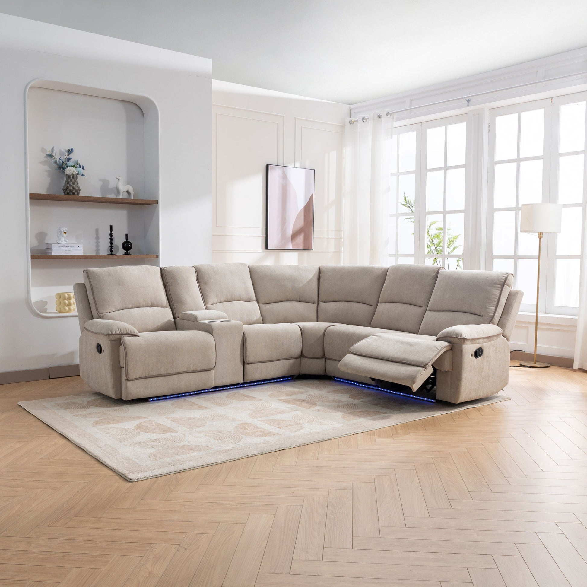 Modern Manual Reclining Living Room Furniture Set With USB Ports, Hidden Storage, Led Light Strip And 2 Cup Holders - Cream