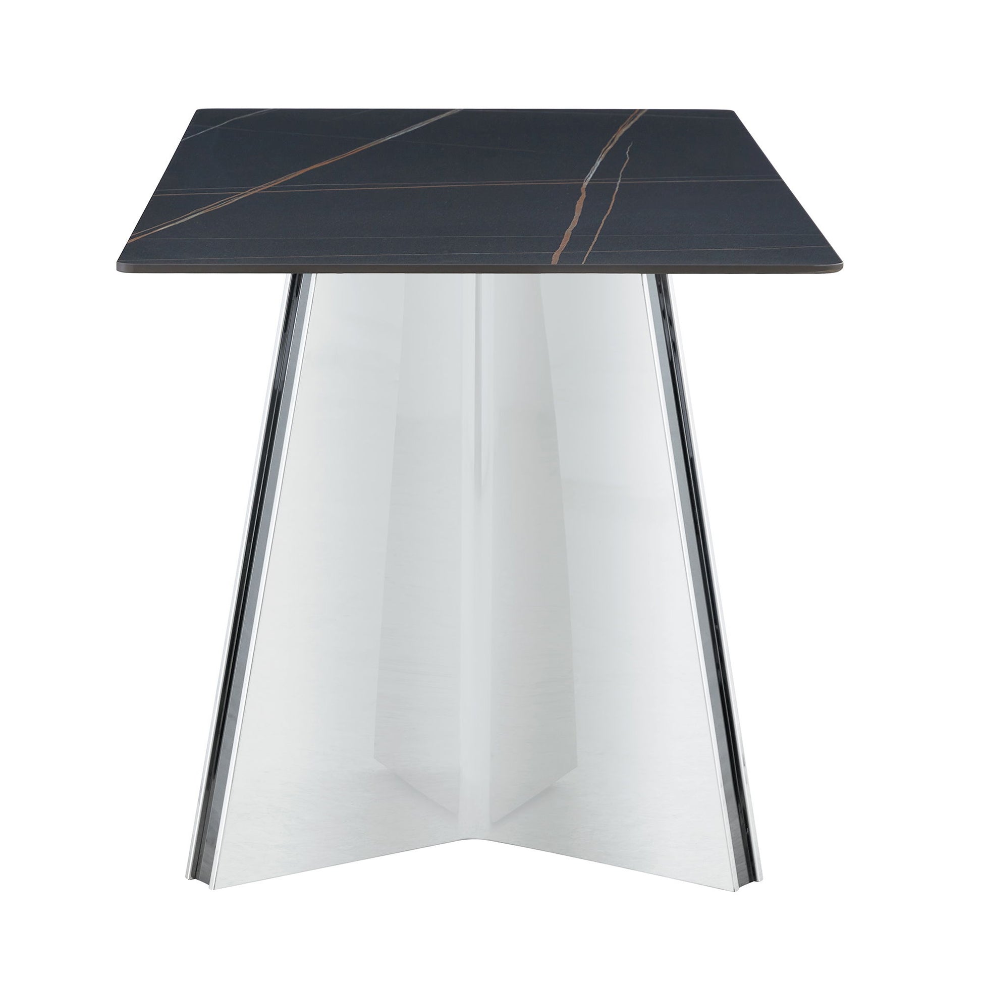 Modern Marble Patterned Dining Table With Stainless Steel Butterfly Legs, Scratch And Heat Resistant - Black / Silver