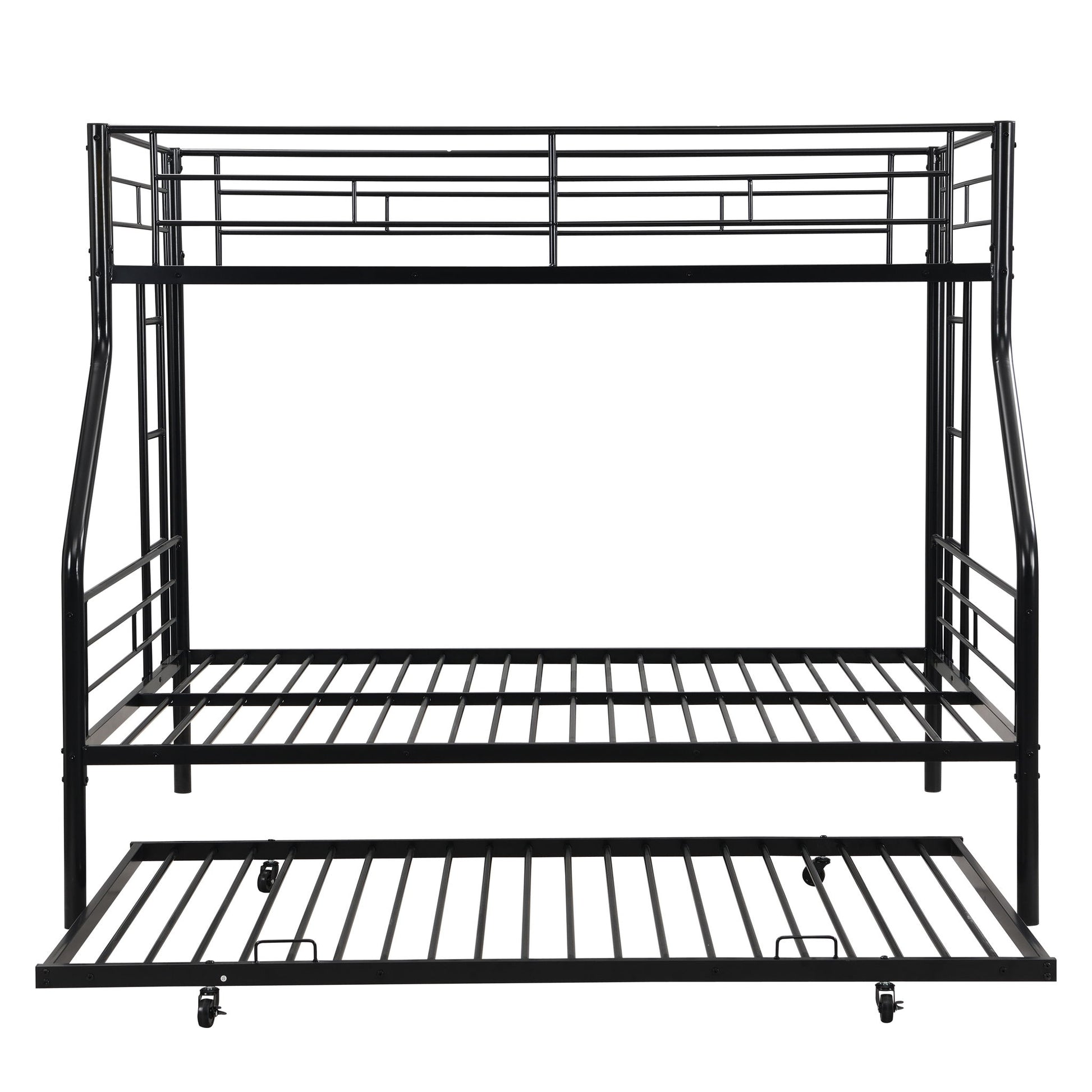 Twin Over Full Metal Bunk Bed With Trundle, No Box Spring Needed - Black