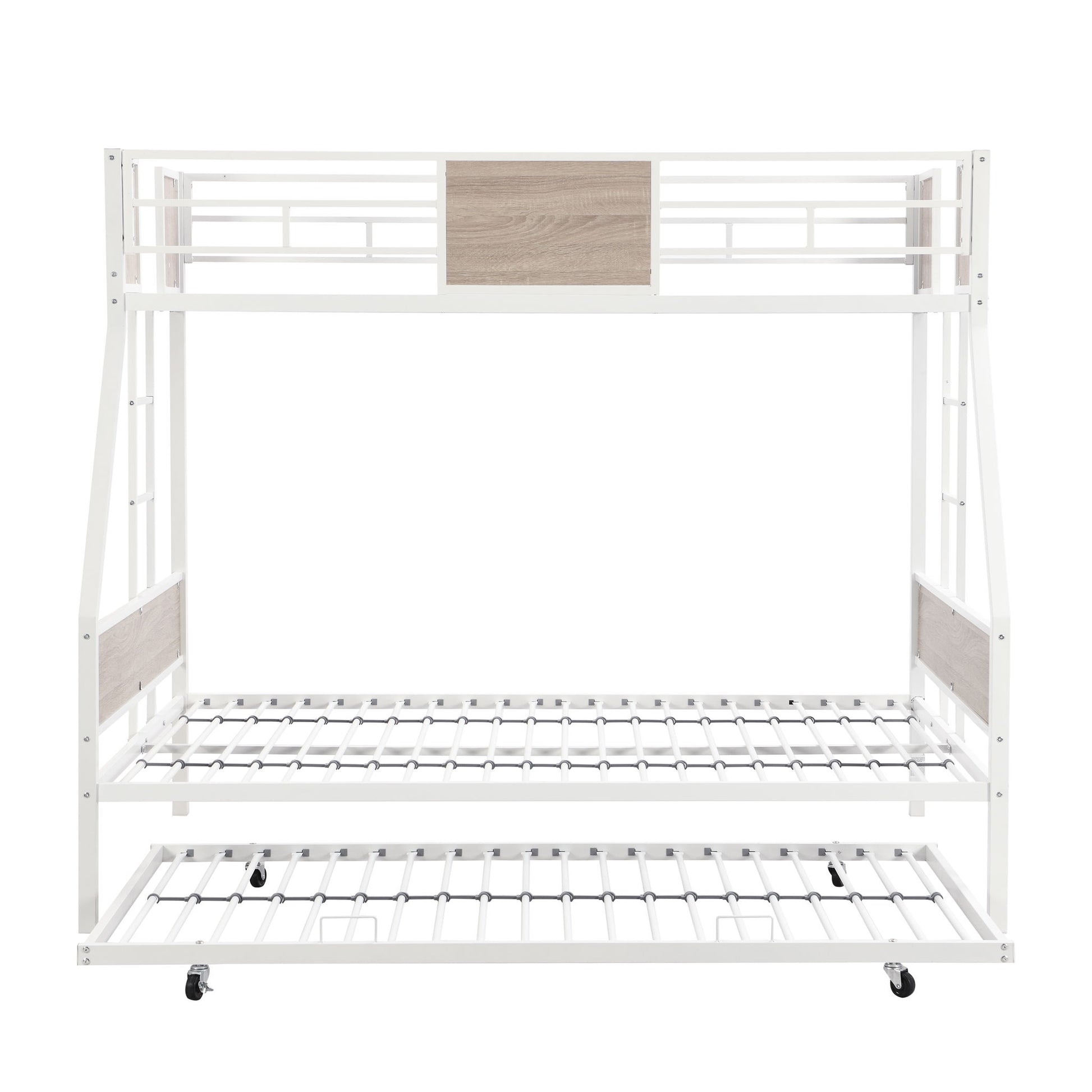 Modern Metal Bunk Bed With Side Ladders And Guardrail