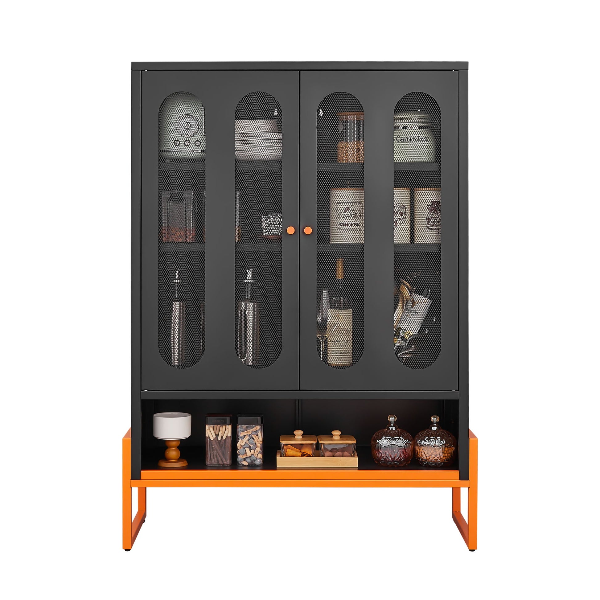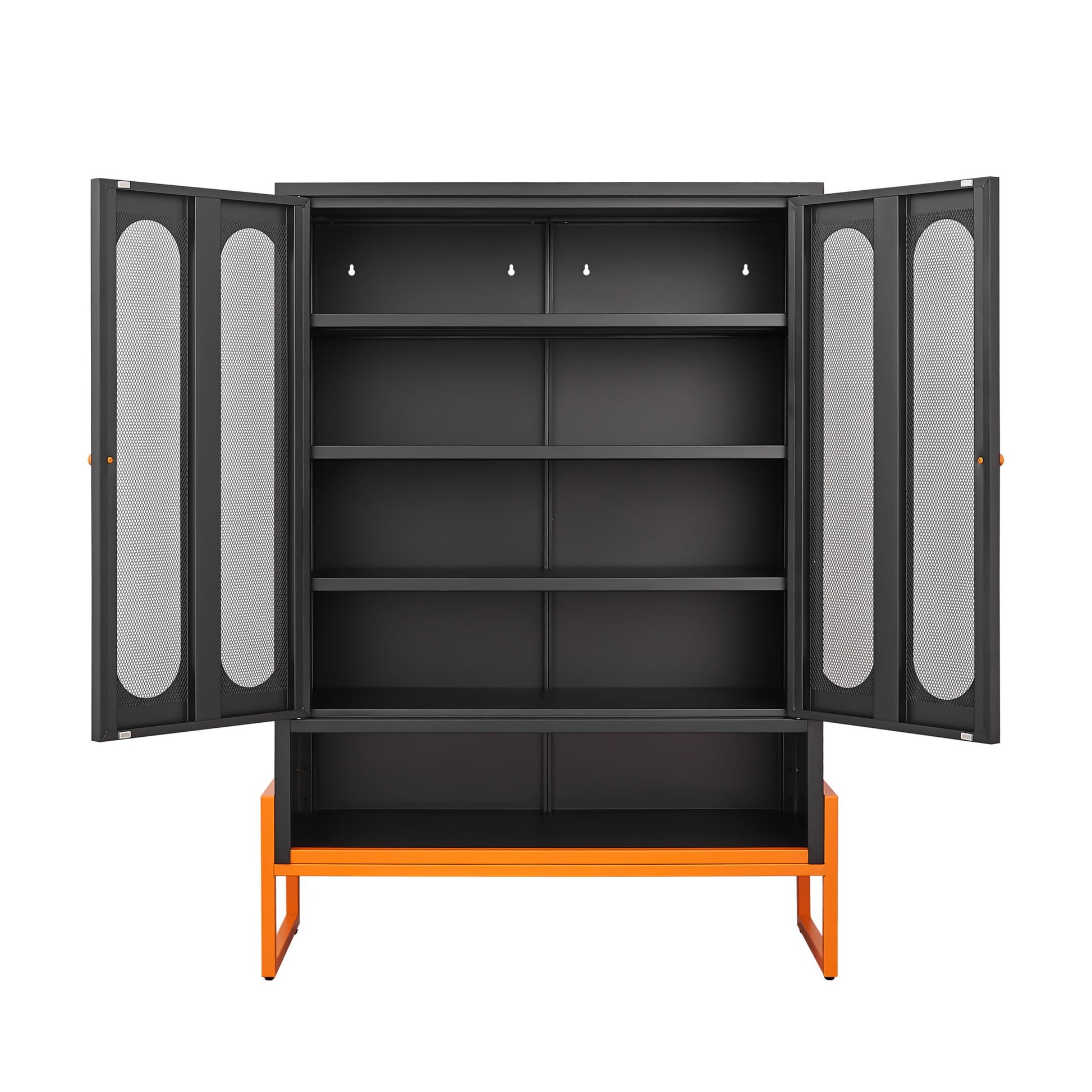 Modern Metal Shoe Cabinet With Double Sided Mesh Doors And Adjustable Partitions - Black