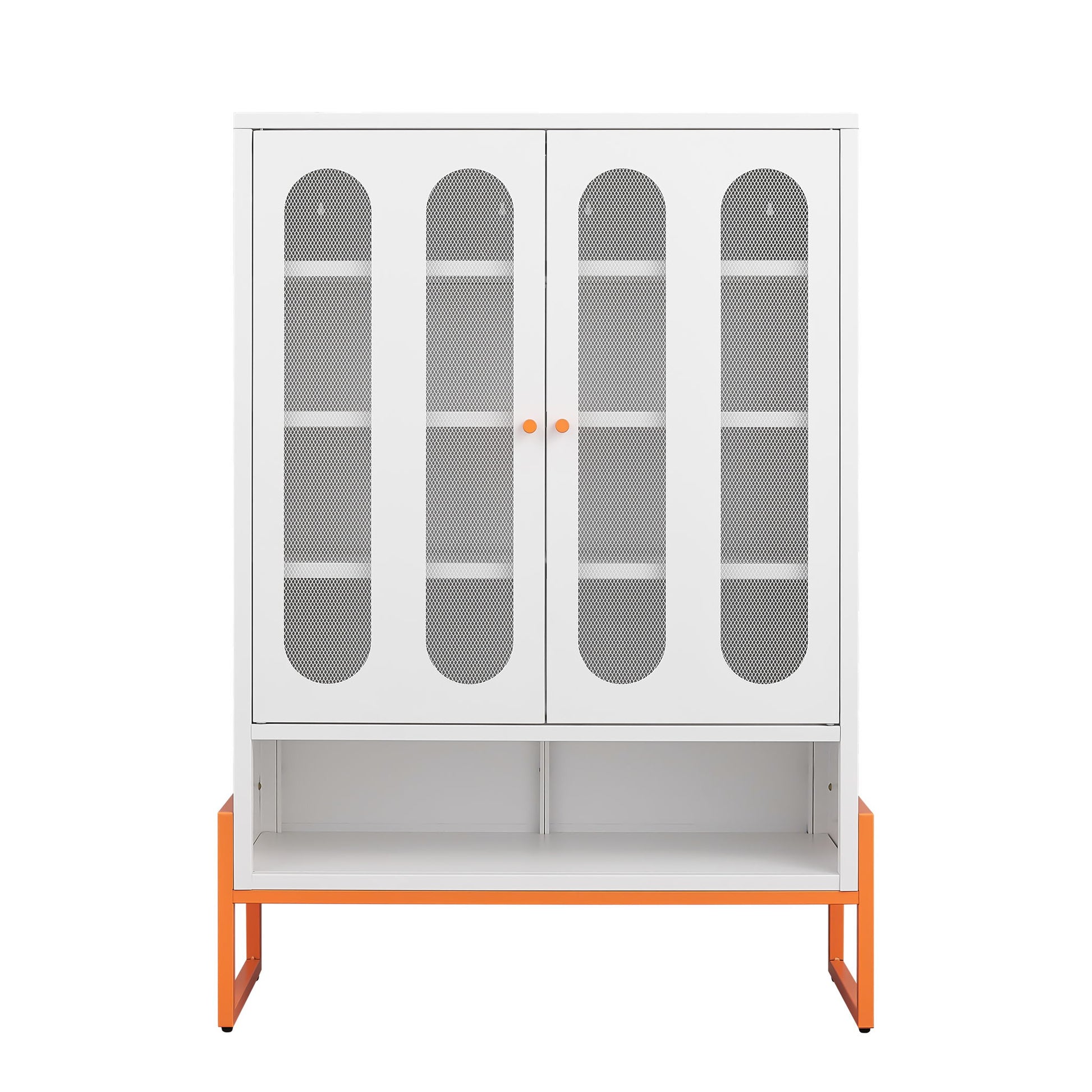Modern Metal Shoe Cabinet With DoublebSided Mesh Doors And Adjustable Partitions
