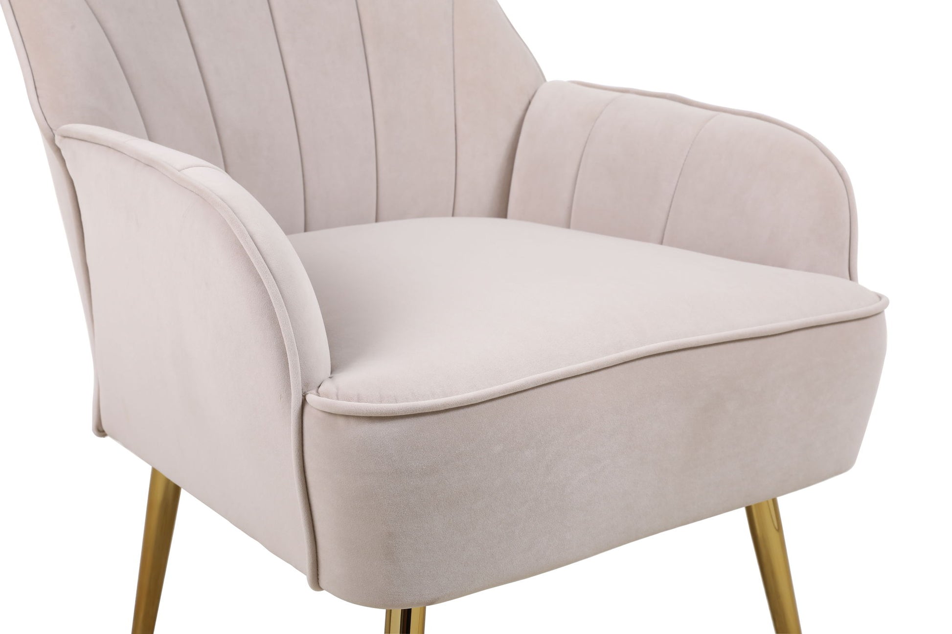 Modern Mid-Century Chair Velvet Sherpa Armchair For Living Room Bedroom Office - Beige