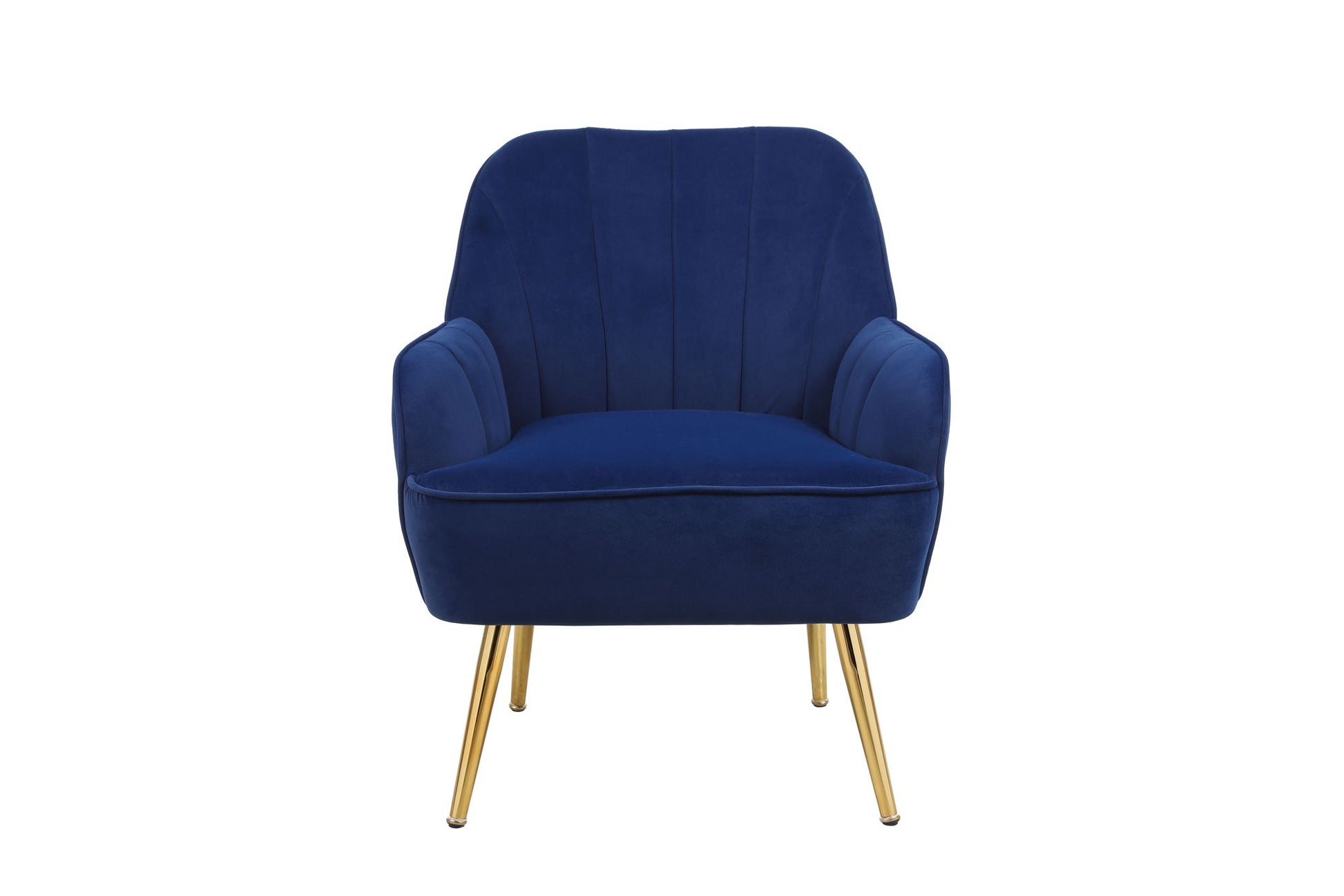 Modern Mid-Century Chair Velvet Sherpa Armchair For Living Room Bedroom Office - Navy
