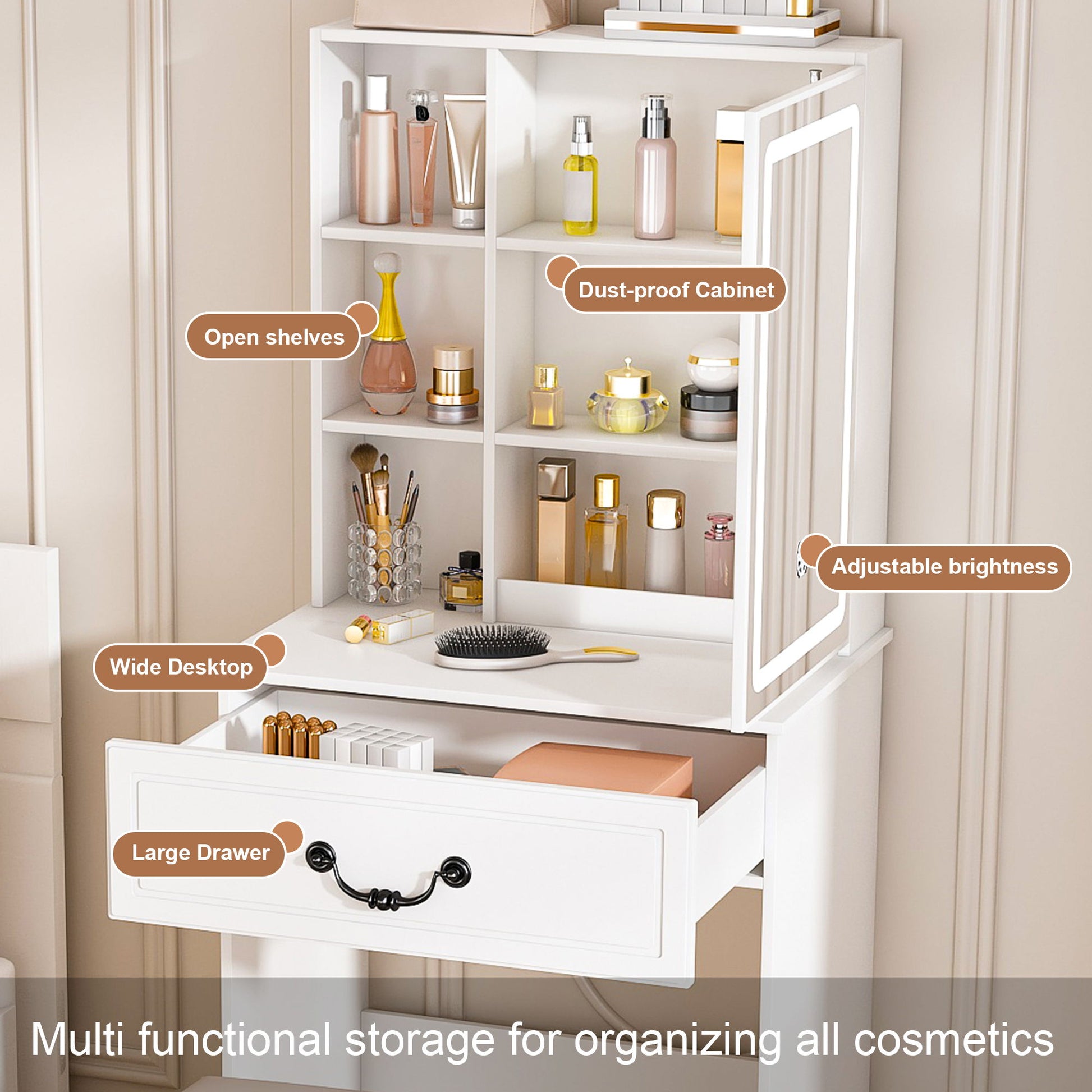 Modern Mini Dressing Table With Led-Lit Mirror & Hidden Storage, Adjustable Brightness Vanity Desk - White