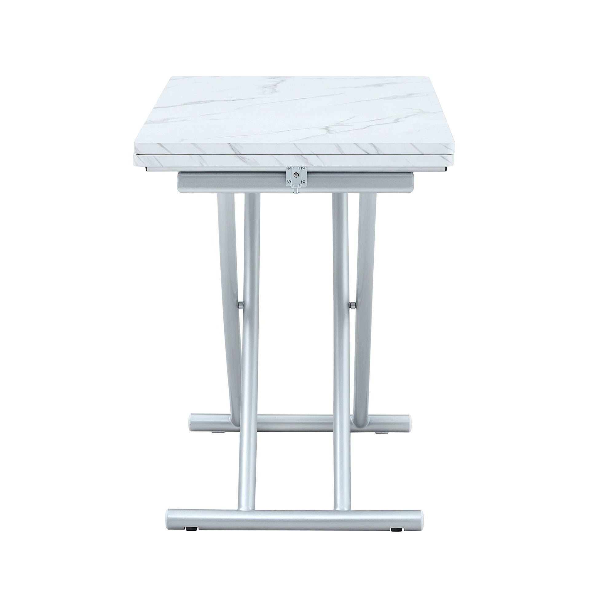 Modern Minimalist Multifunctional Lift Table With Metal Legs - White / Silver