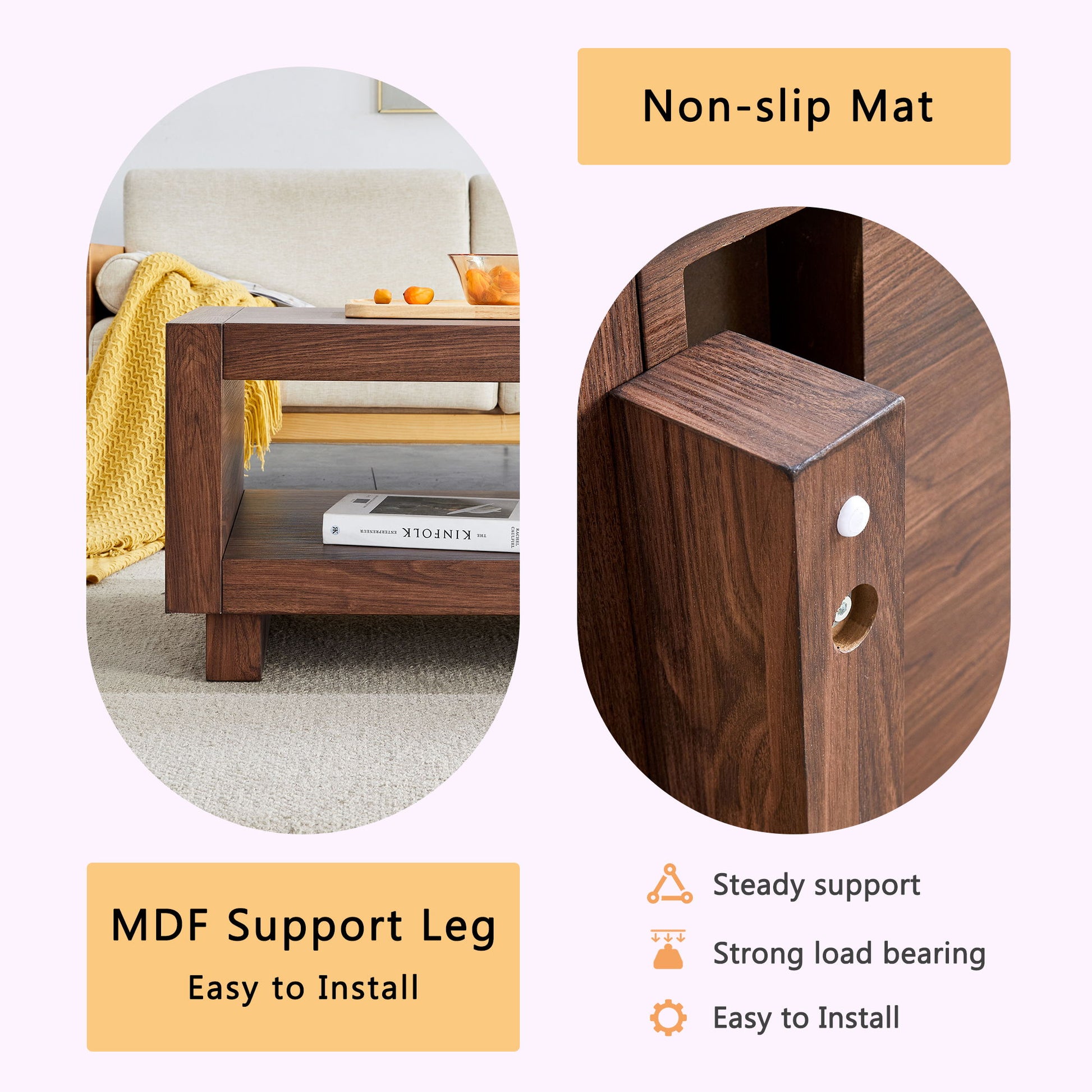 Modern Minimalist Rectangular Coffee Table Measuring Embodies The Simple Charm Of Mid Century Aesthetics, Adding A Touch Of Elegance To Your Living Room - Walnut
