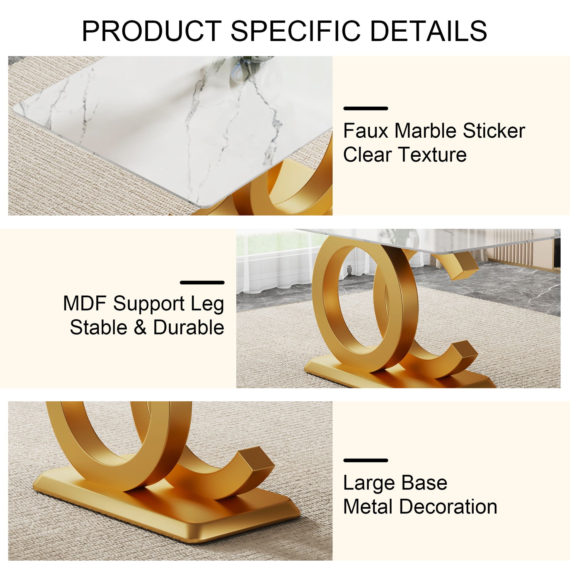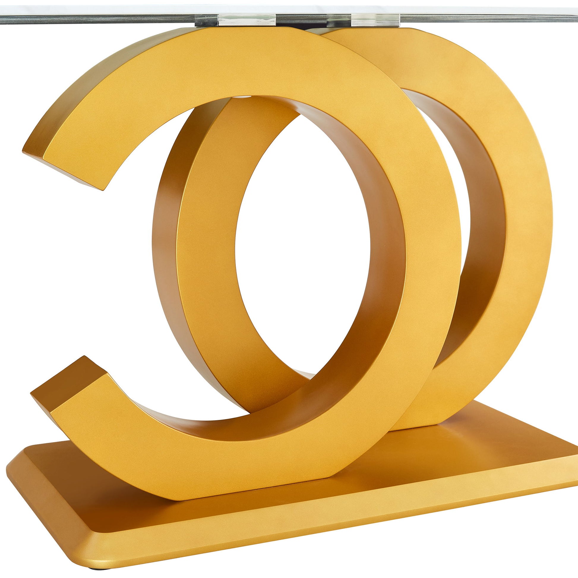 Modern Minimalist Rectangular Dining Table For 6 - 8 People With Brackets And Aureate Base - Gold