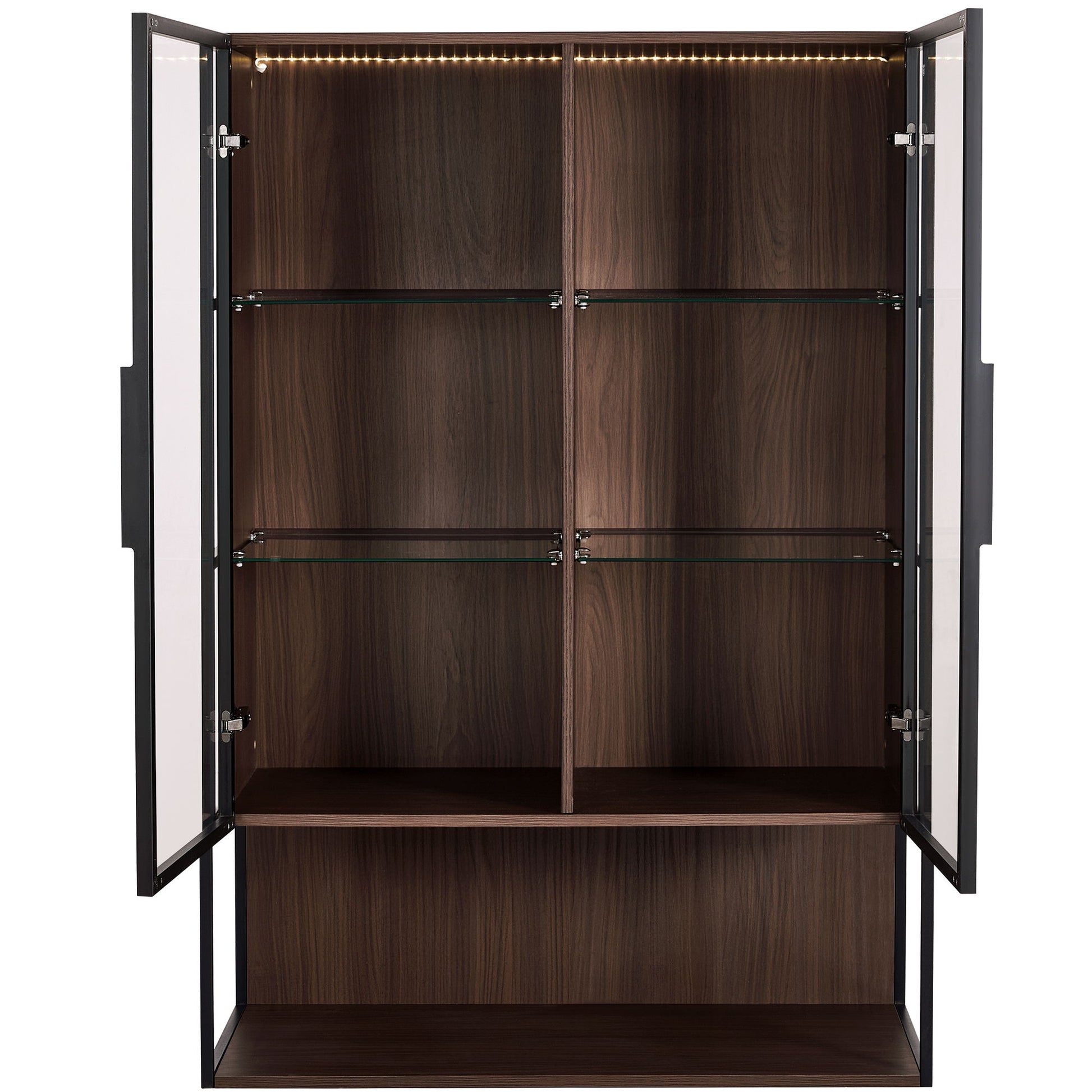 Modern Minimalist Tall Lighted Display Cabinet With Tempered Glass Door - Black / Dark Walnut