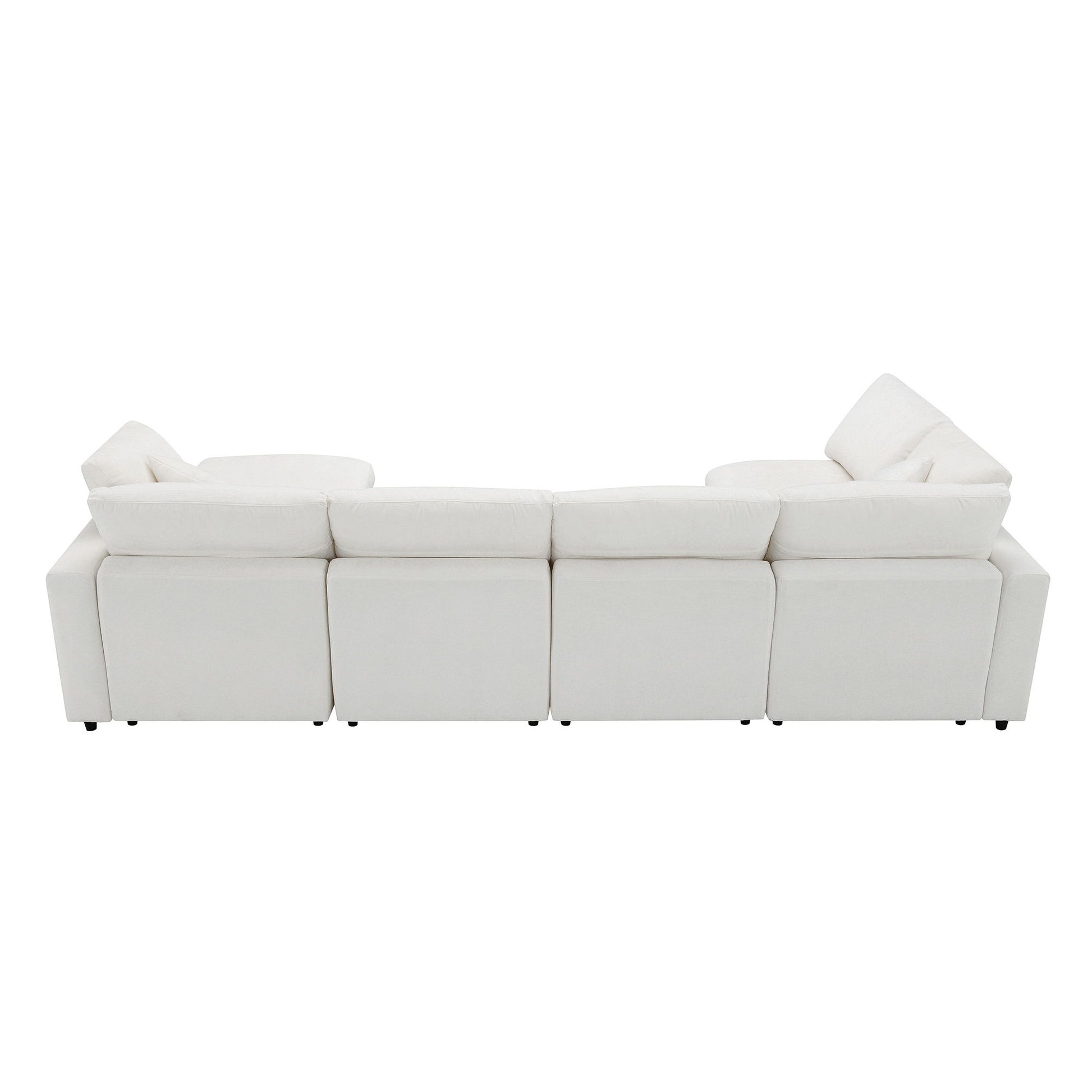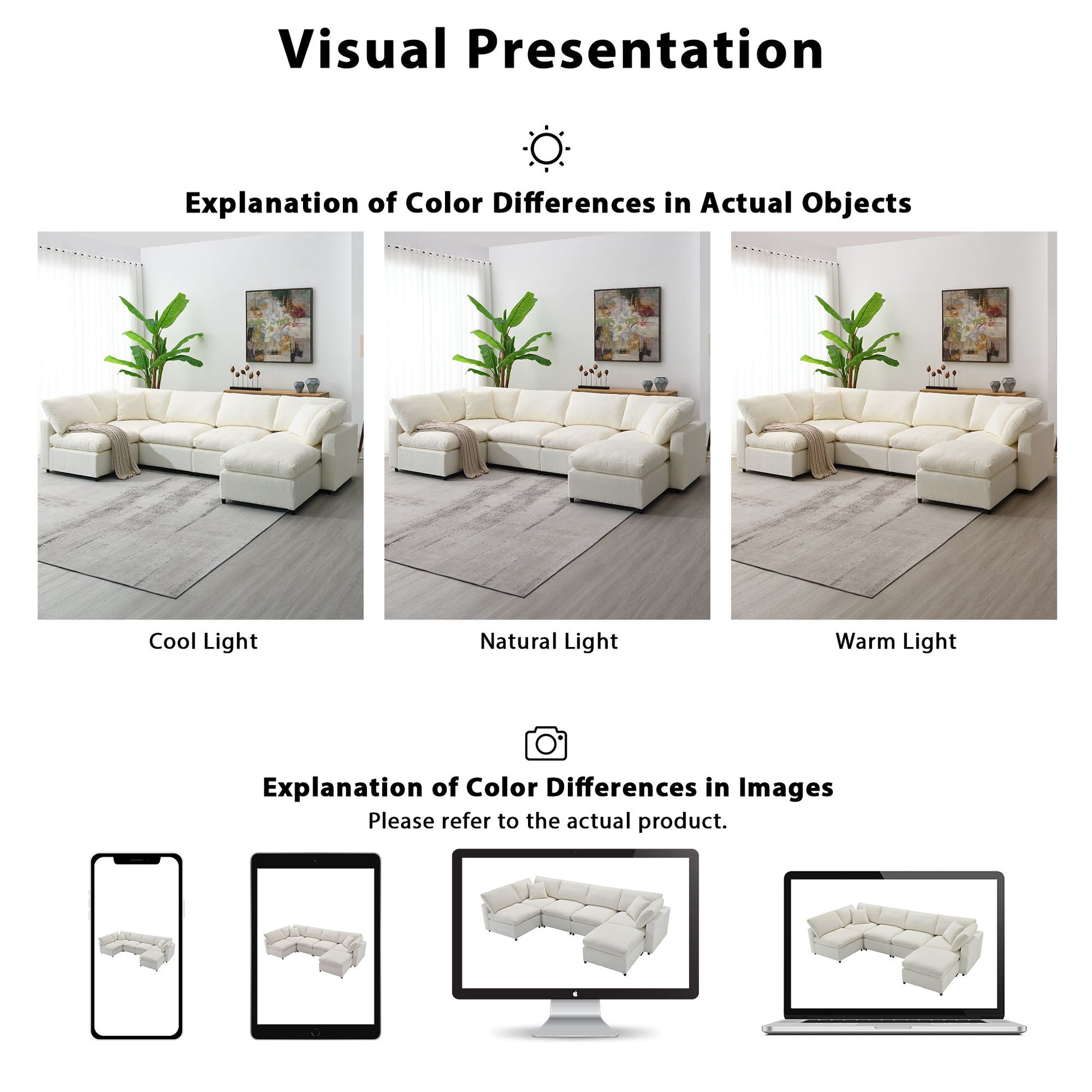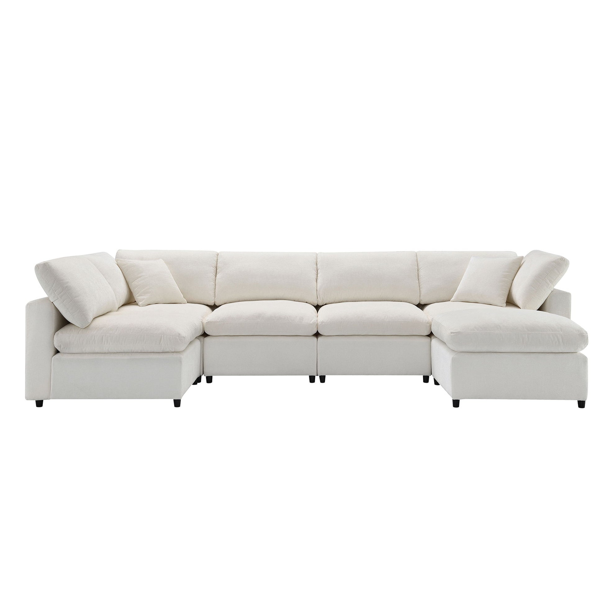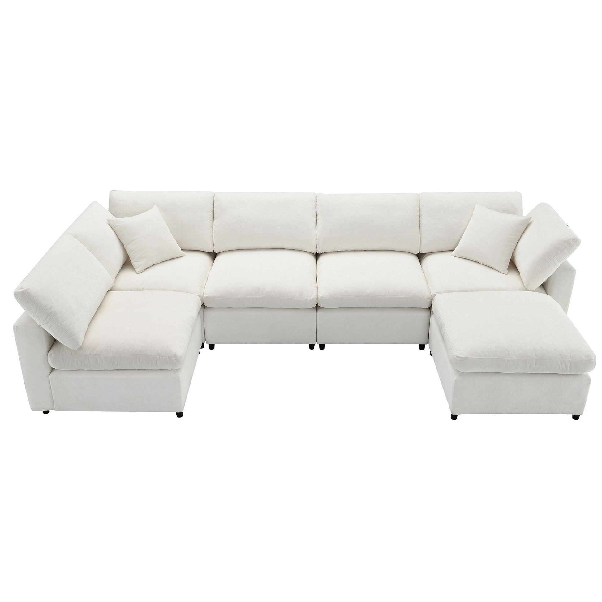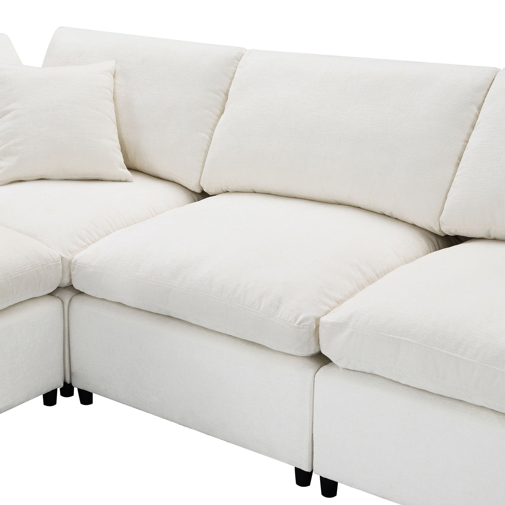 Modern Modular Cloud Sofa Bed, 6 Seat Chenille Sectional Couch Set With Ottoman, Free Combination, Convertible U Shaped Sleeper Sofa - Beige