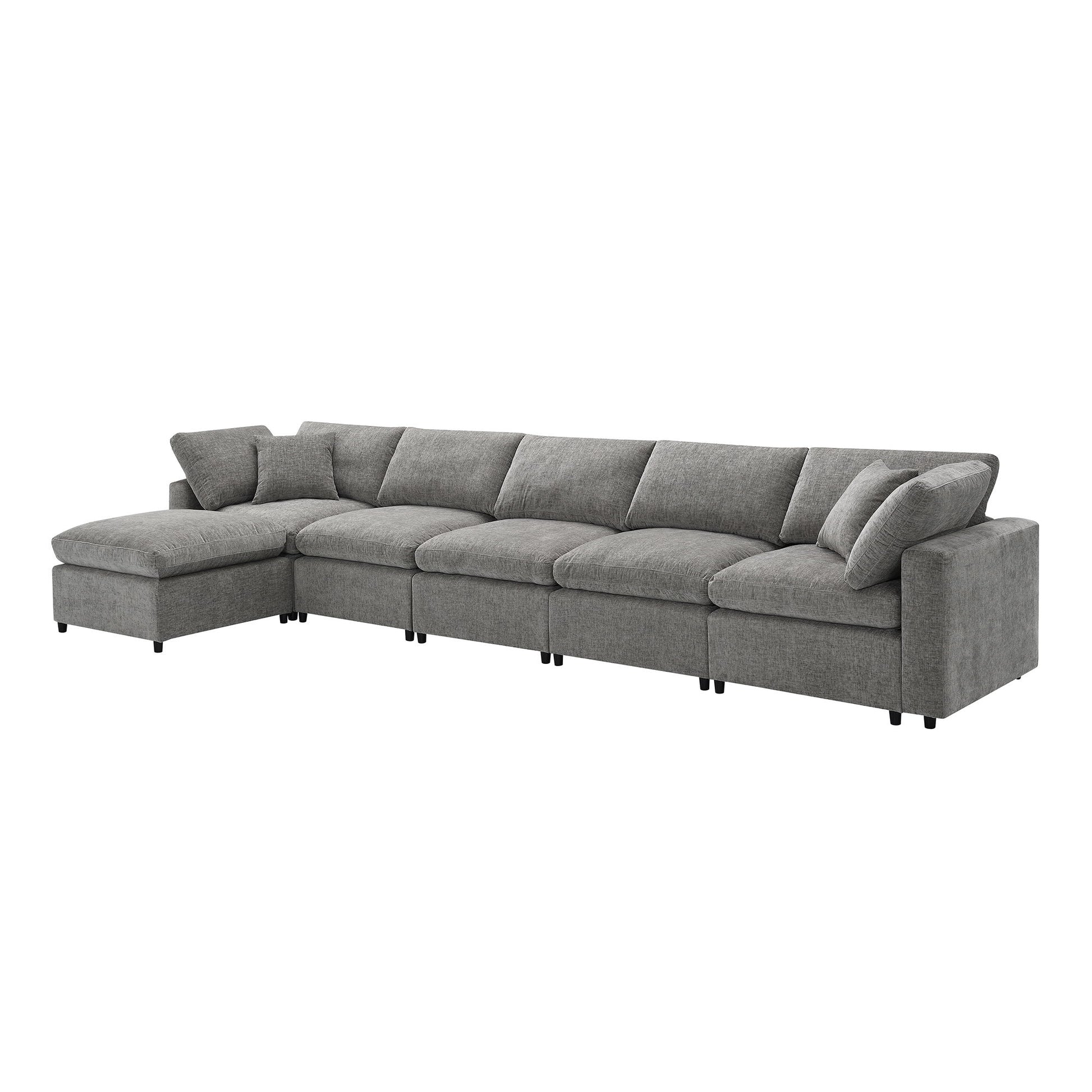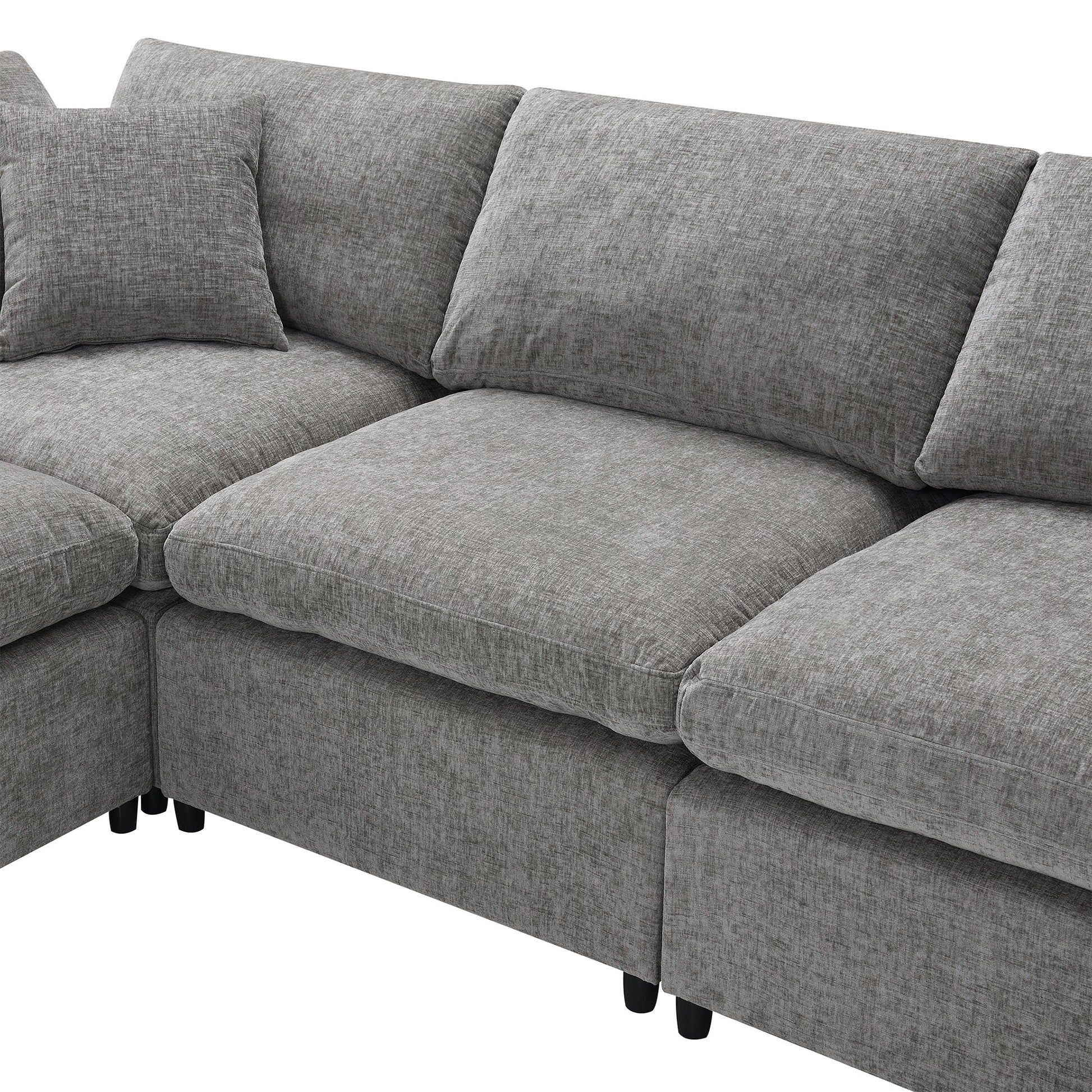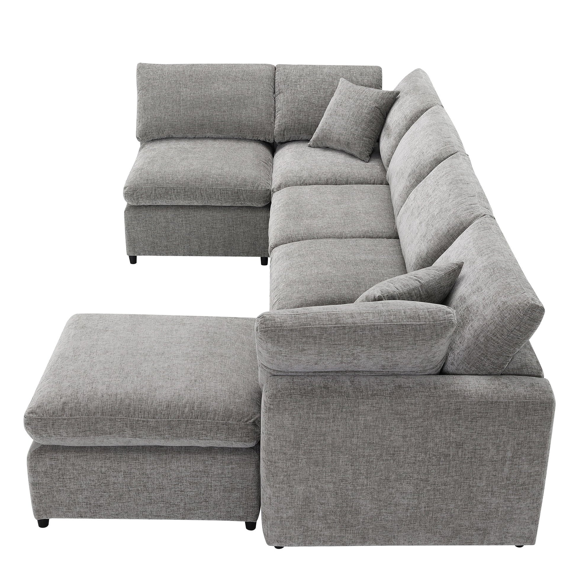 Modern Modular Cloud Sofa Bed, 6 Seat Chenille Sectional Couch Set With Ottoman, Free Combination, Convertible U Shaped Sleeper Sofa - Gray