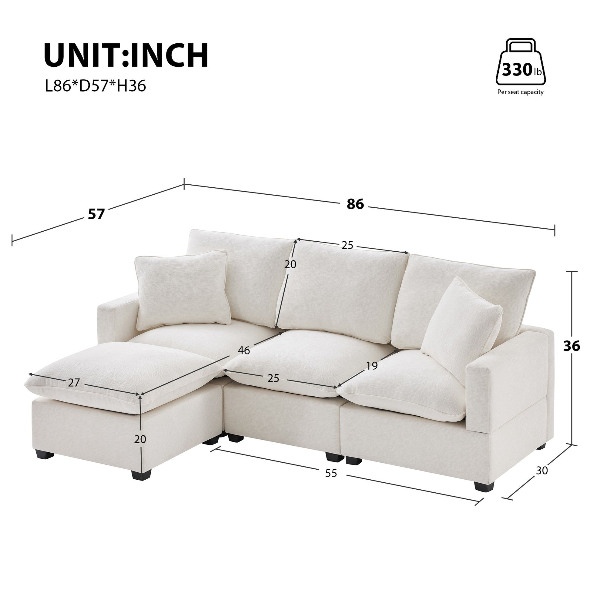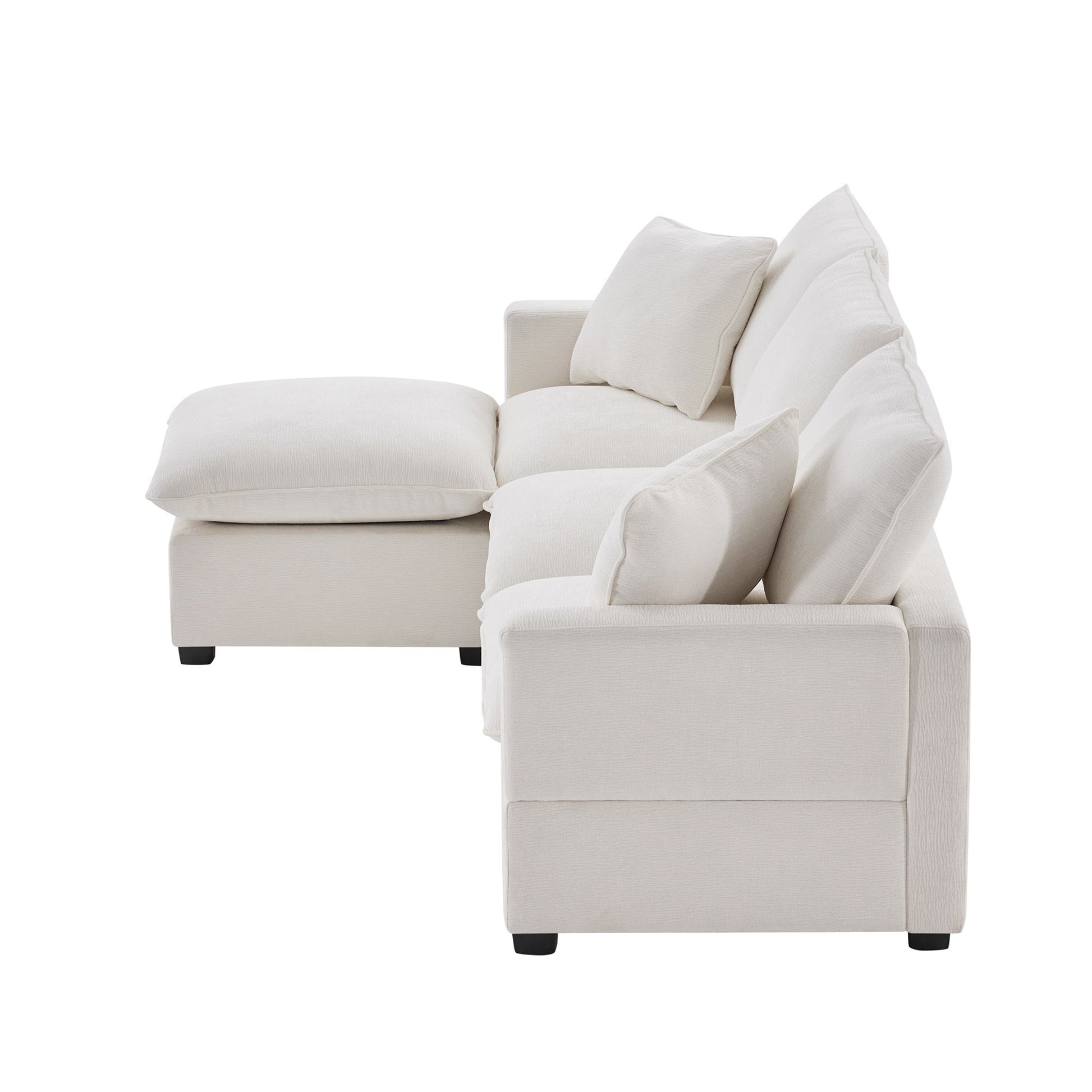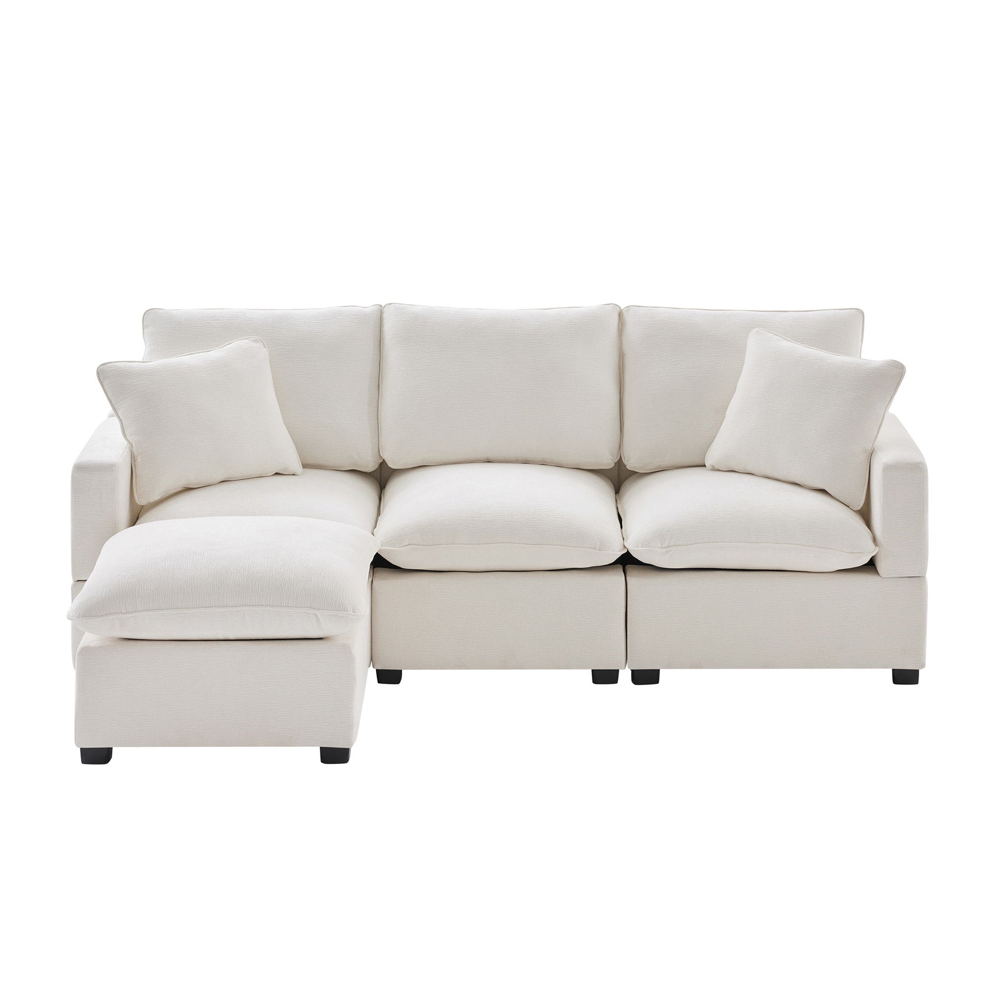 Modern Modular Sofa, 4 Seat Chenille Sectional Couch Set With 2 Pillows Included, Freely Combinable Indoor Funiture - White