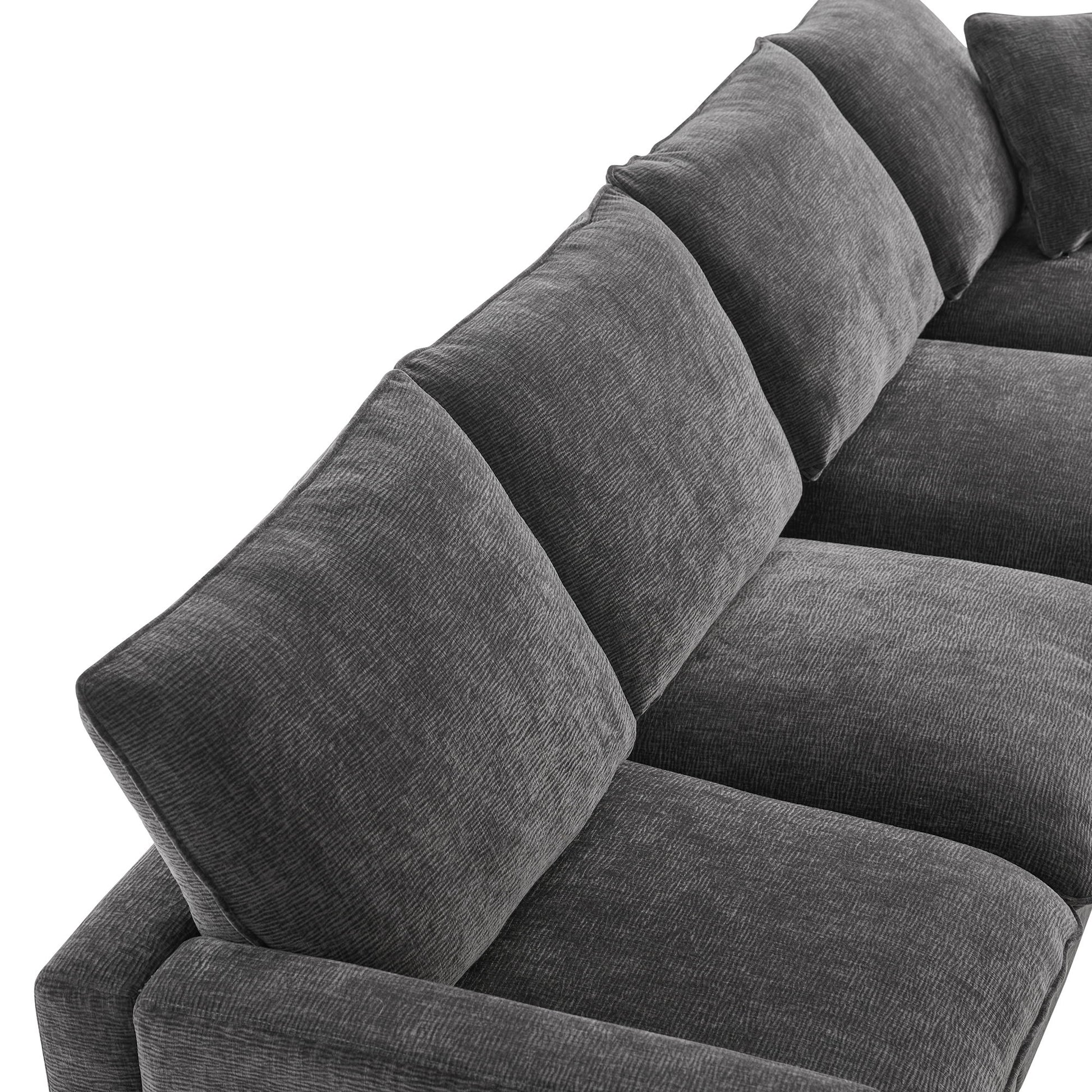 Modern Modular Sofa, 4 Seat Chenille Sectional Couch Set With 2 Pillows Included, Freely Combinable Indoor Funiture - Black / Gray