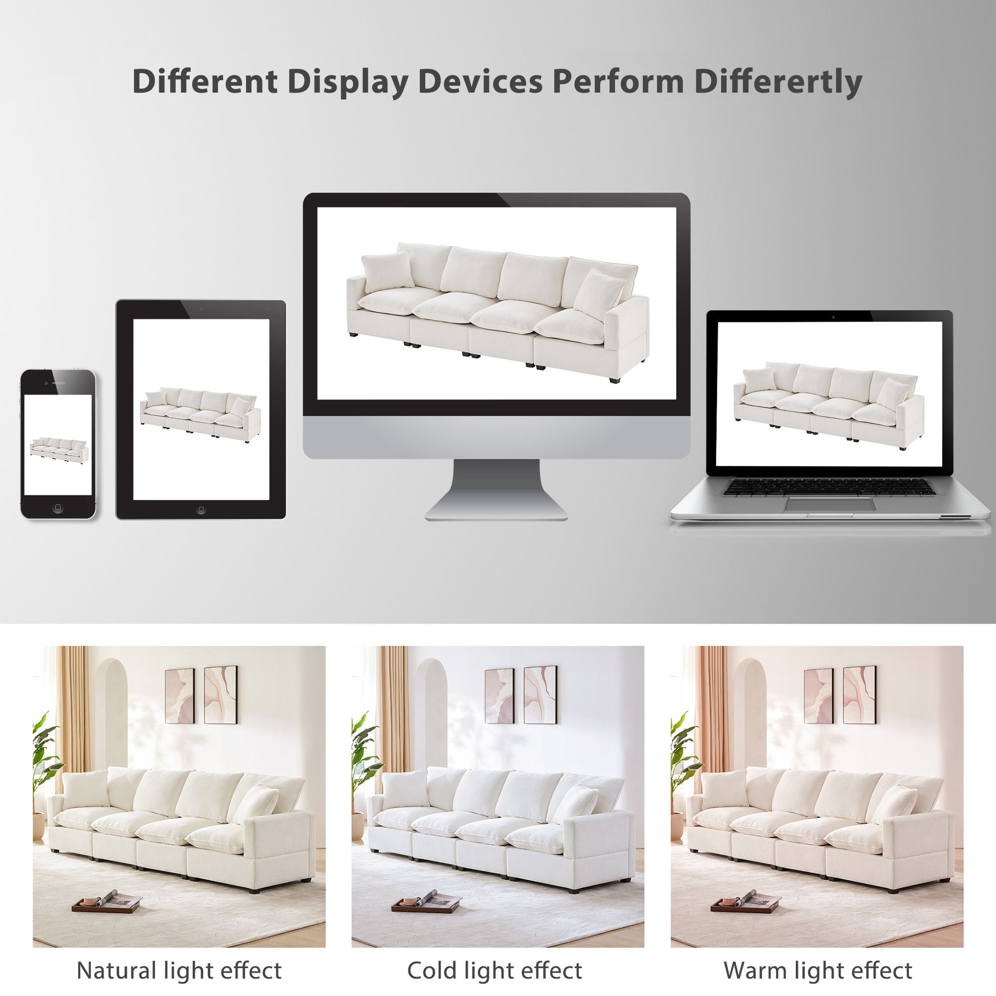 Modern, Modular Sofa, 4 Seat Chenille Sectional Couch Set With 2 Pillows Included, Freely Combinable Indoor Funiture - White