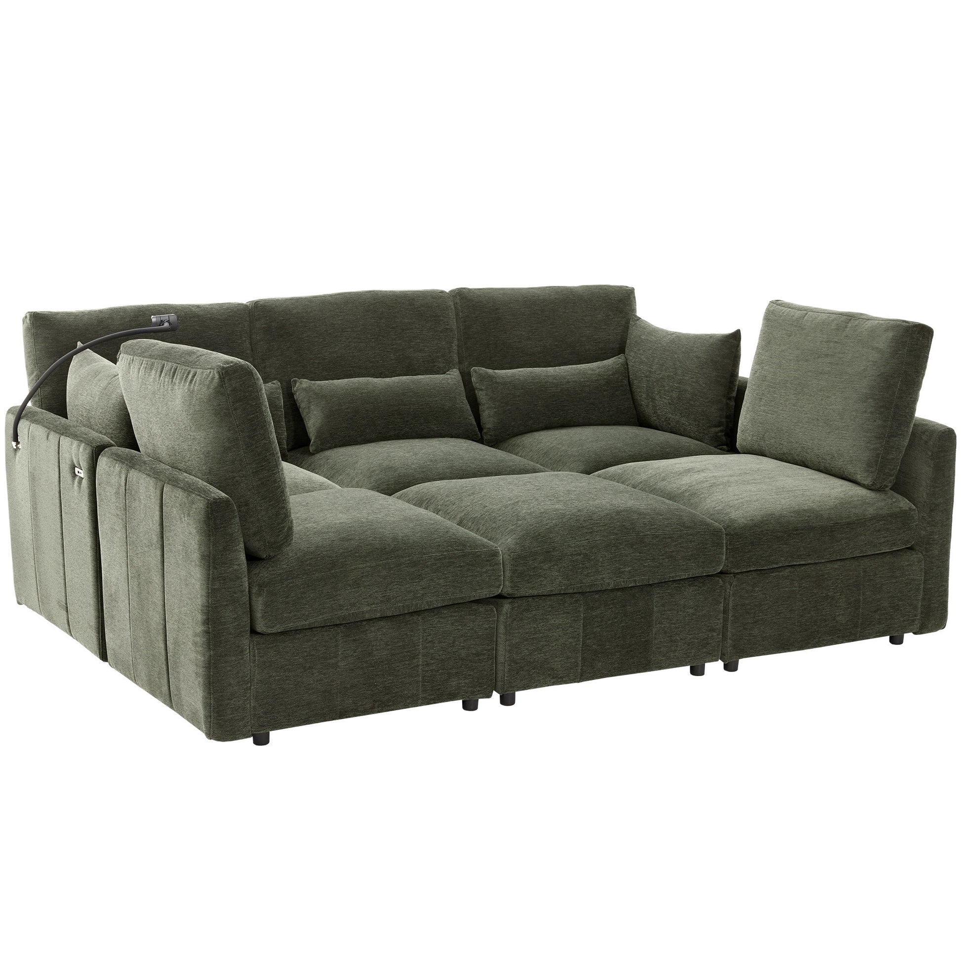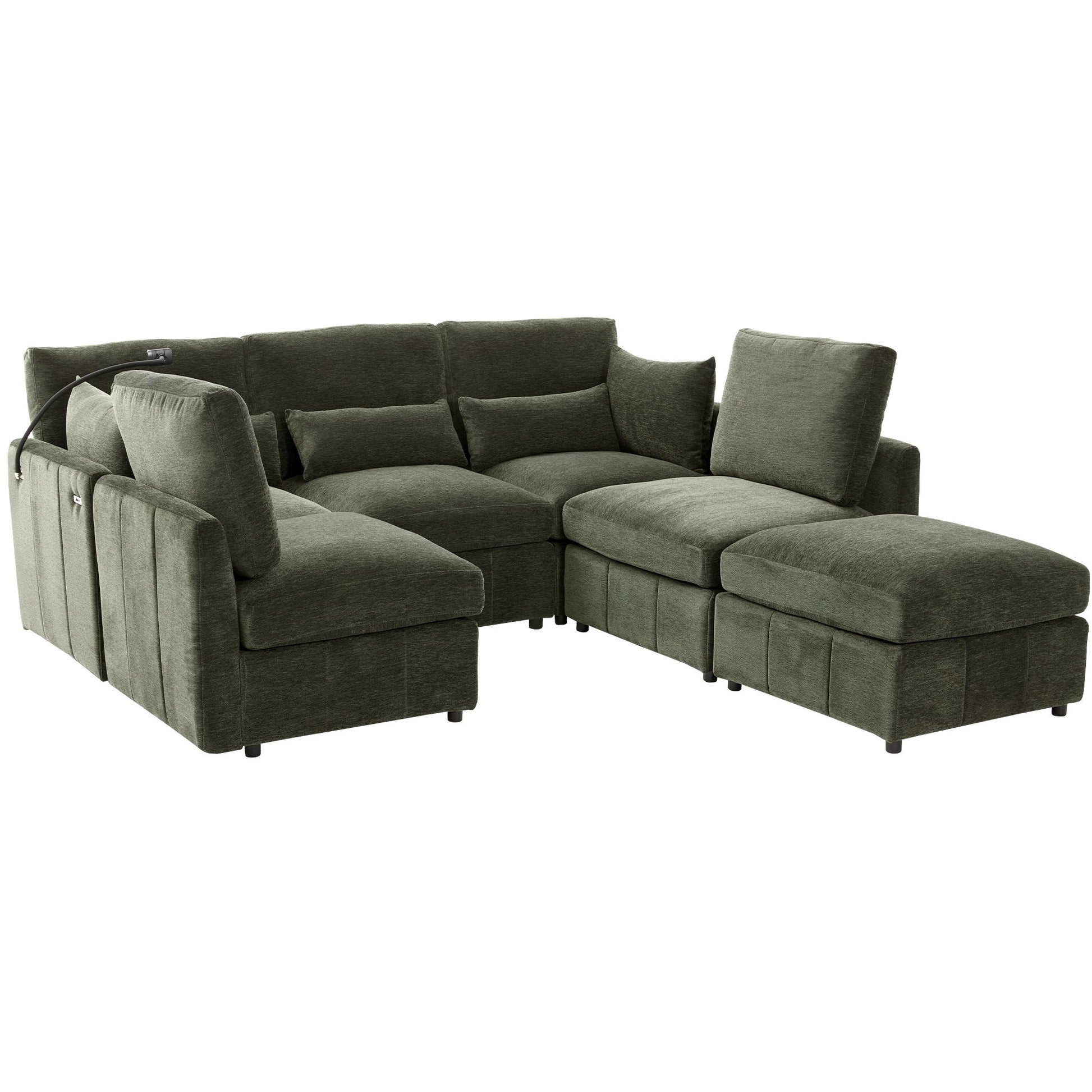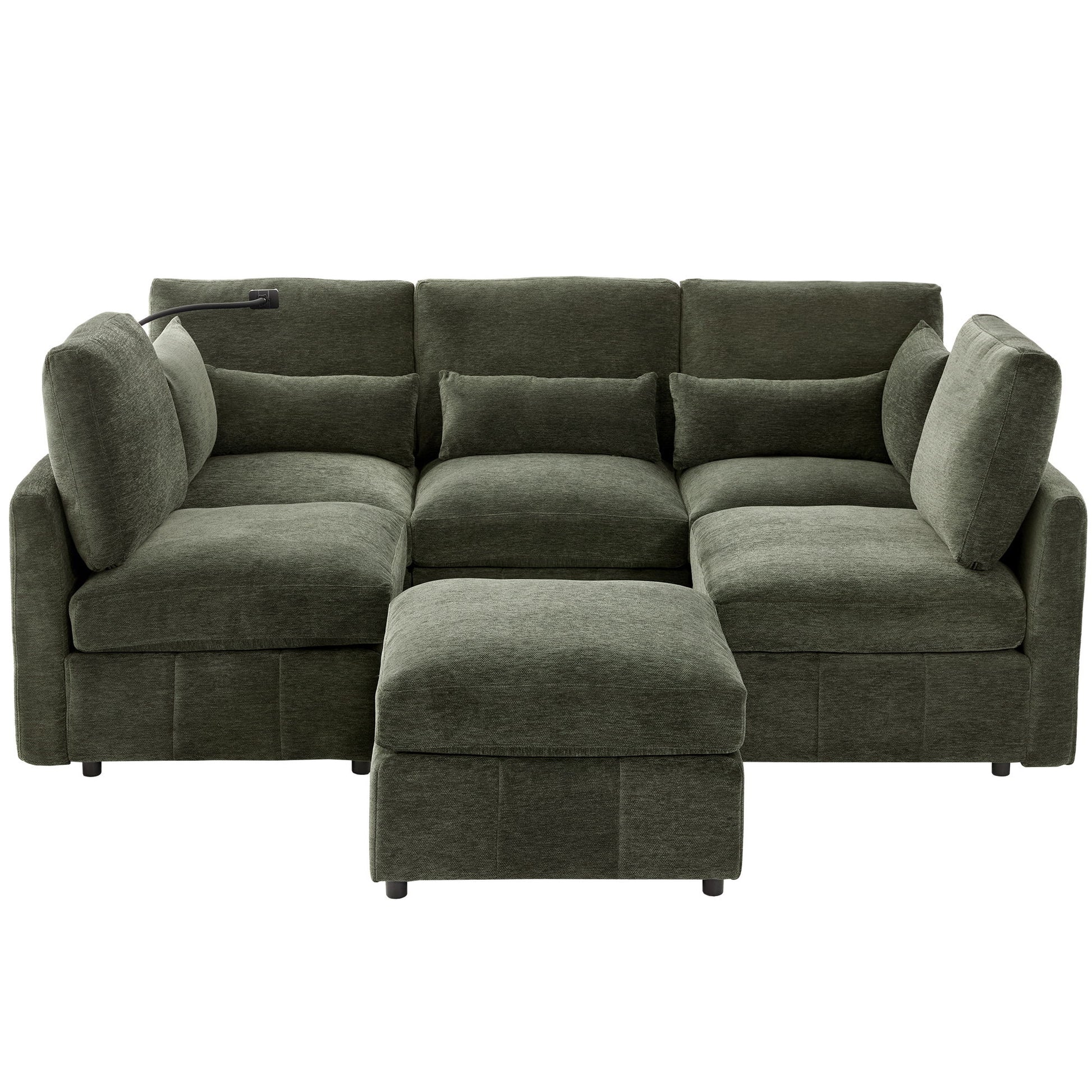 Modern Sectional Sofa Modular Sofa U Shaped Sofa Couch Sofa Bed With Movable Ottoman, USB Ports, Phone Holder - Green