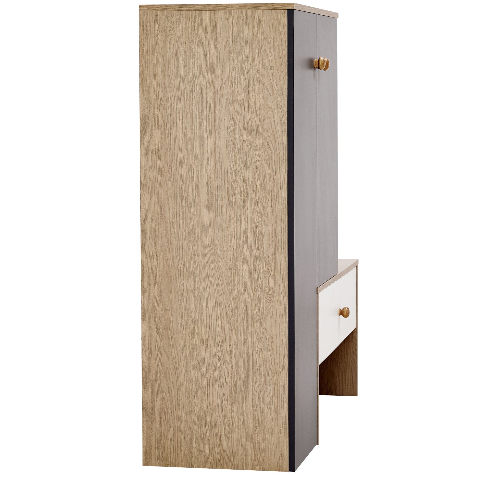 Modern Multi Functional Shoe Storage Bench & Cabinets With Adjustable Shelves - Gray / Natural Wood / White