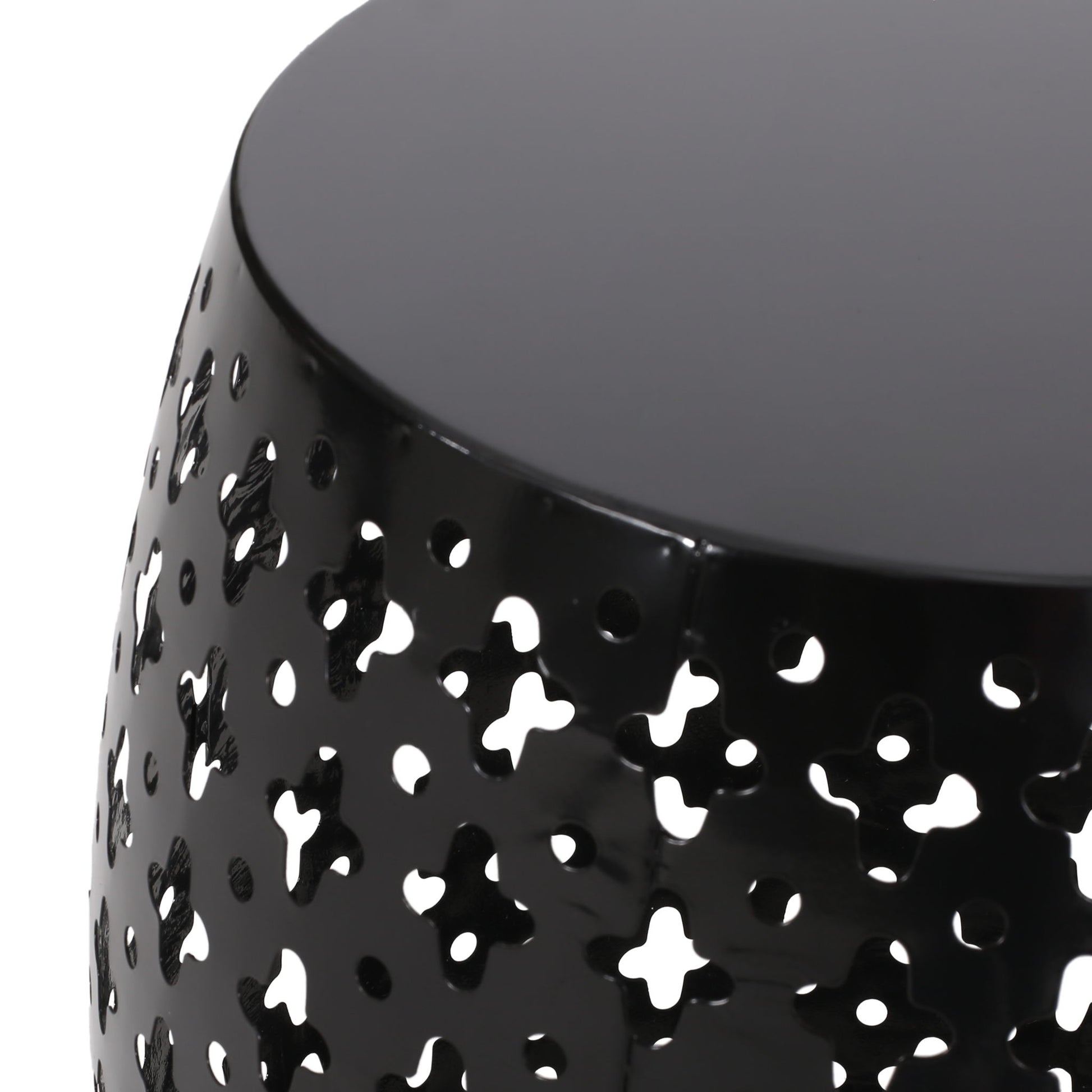 Modern Outdoor Metal End Table Set With Durable Iron Frame - Black