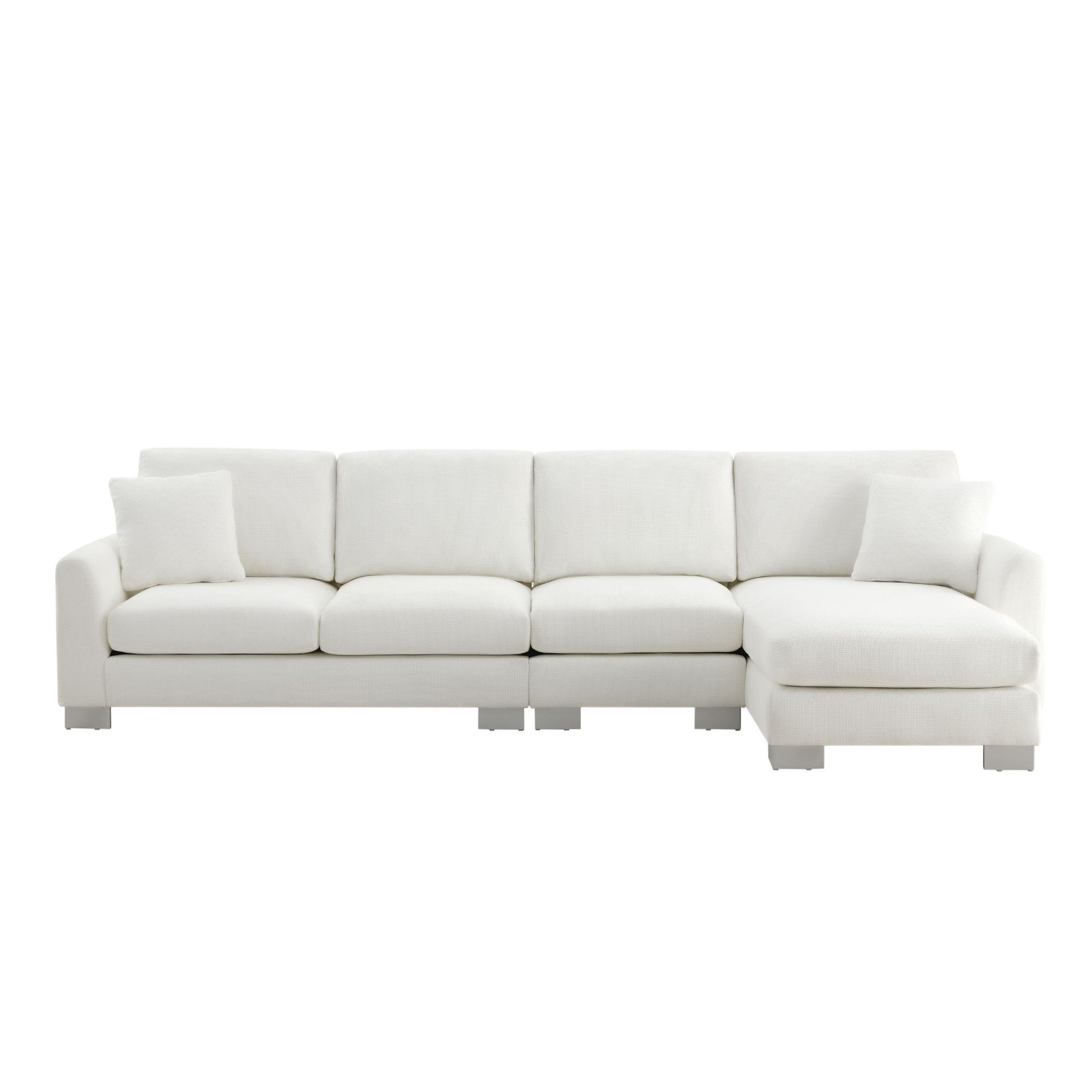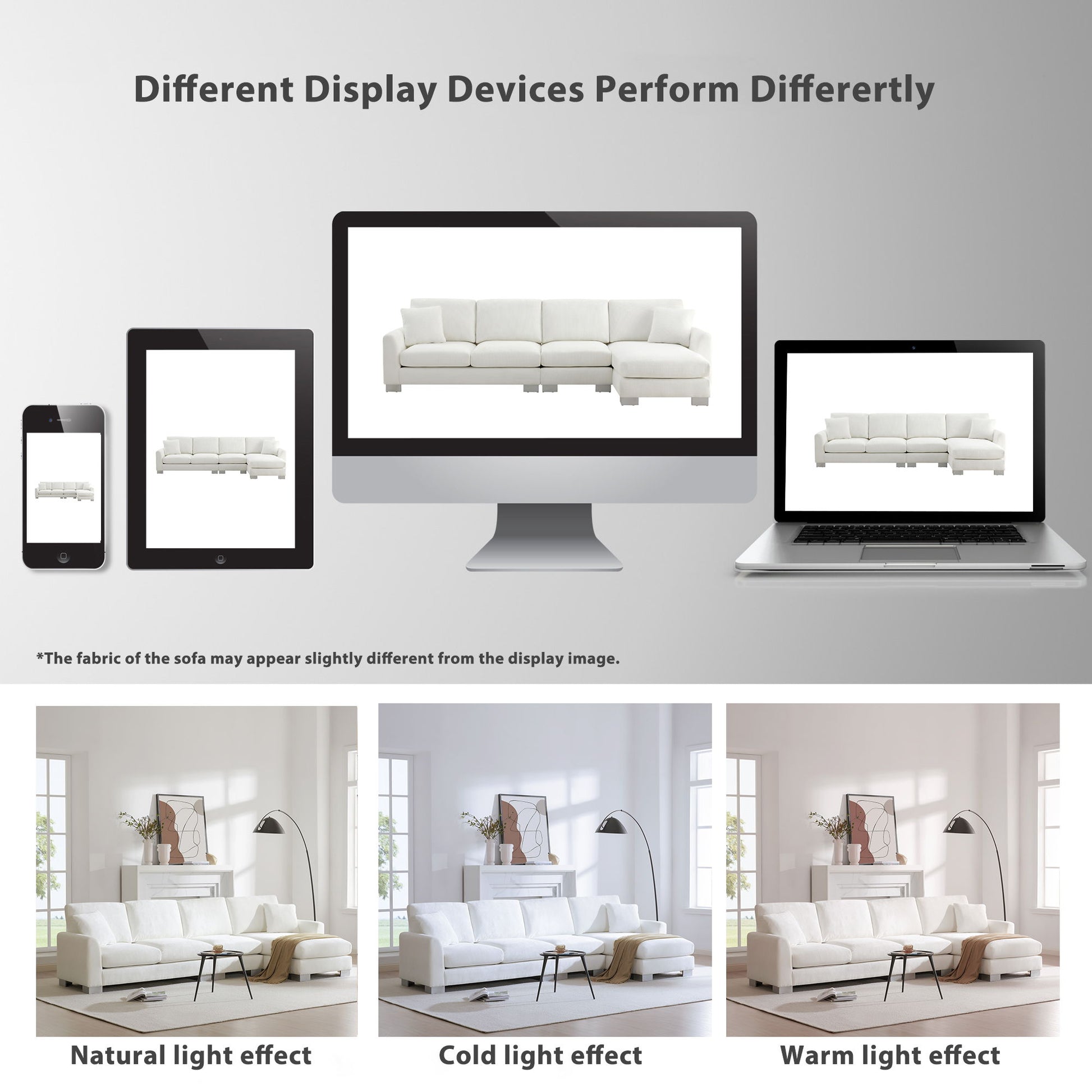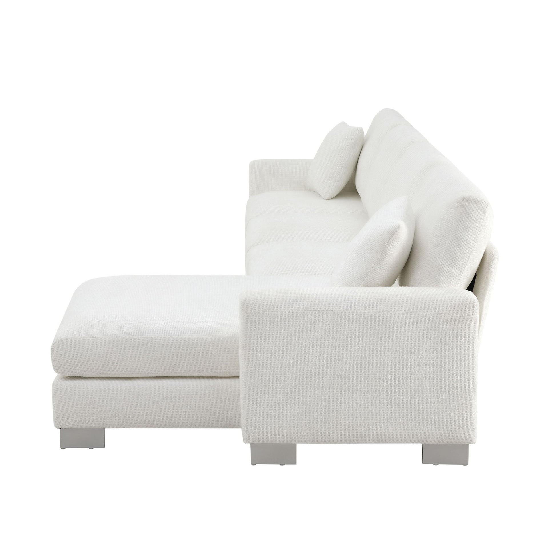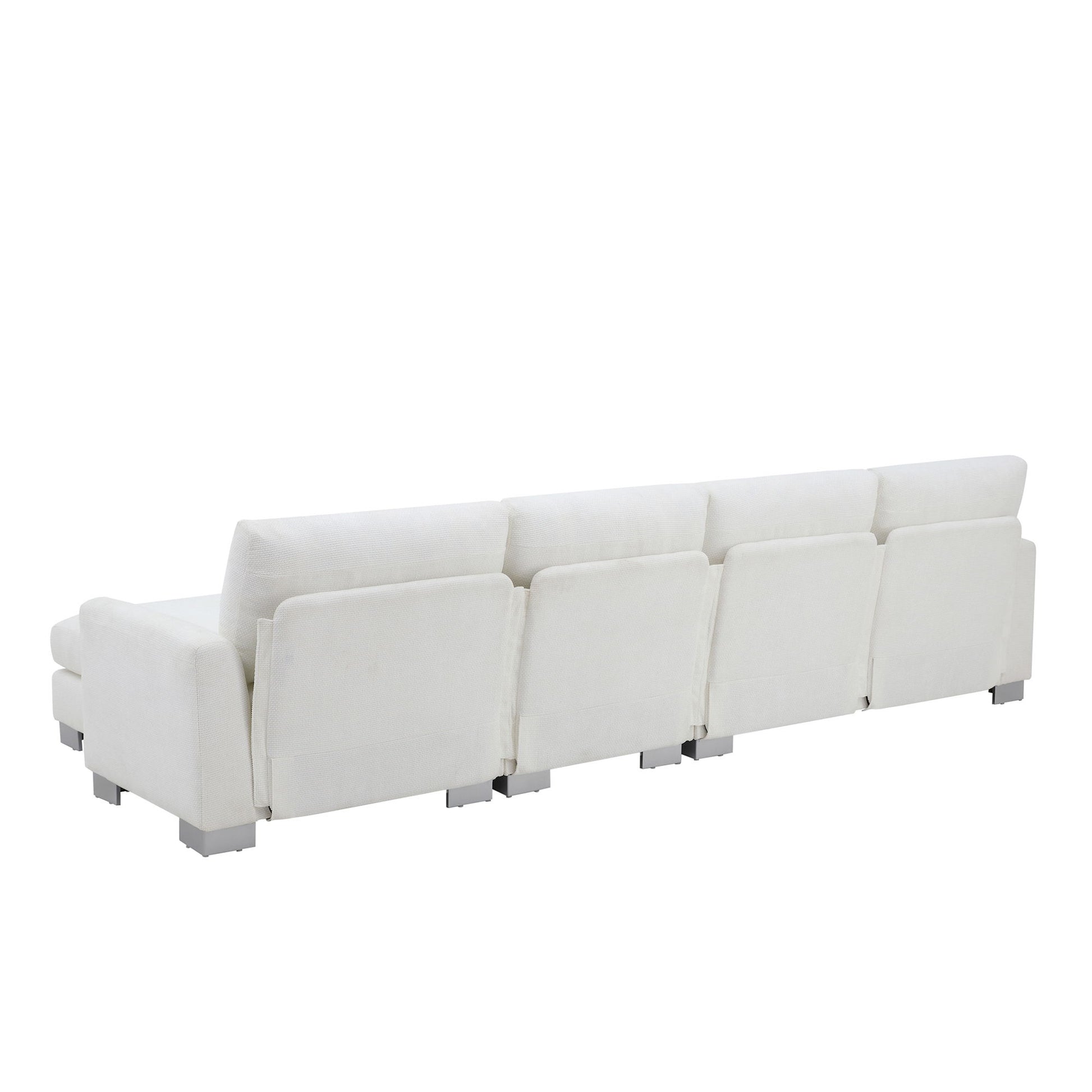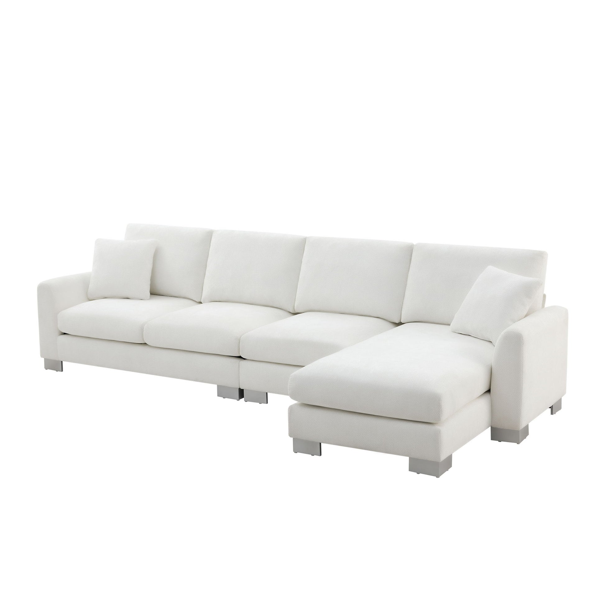 Modern Oversized Sectional Sofa, L-Shaped Luxury Couch Set With 2 Free Pillows, 5 Seat Chenille Indoor Furniture With Chaise - White