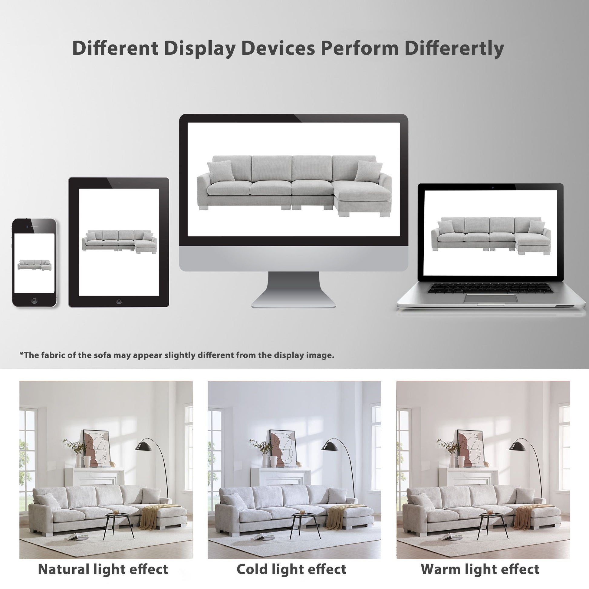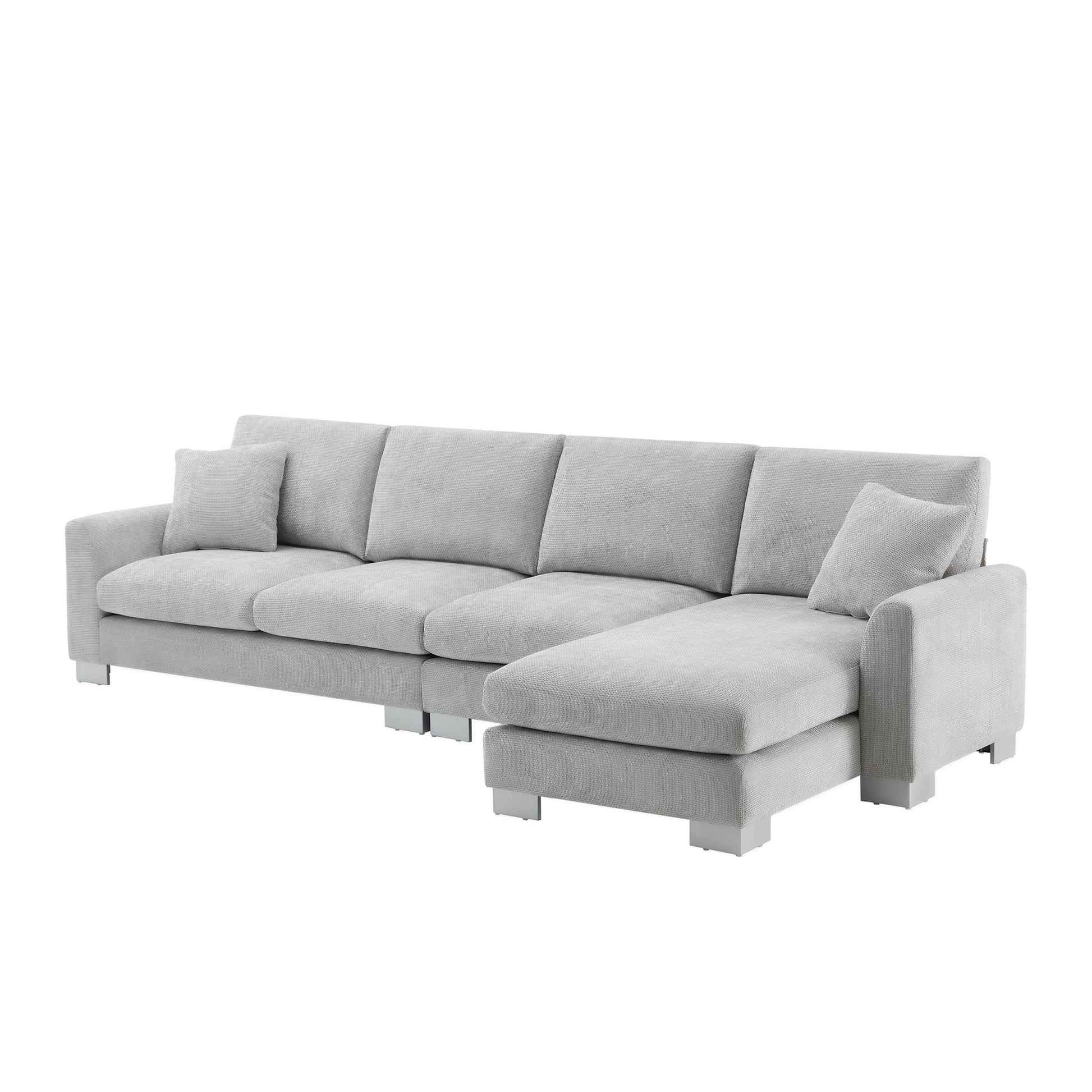 Modern Oversized Sectional Sofa, L-Shaped Luxury Couch Set With 2 Free Pillows, 5 Seat Chenille Indoor Furniture With Chaise - Light Gray