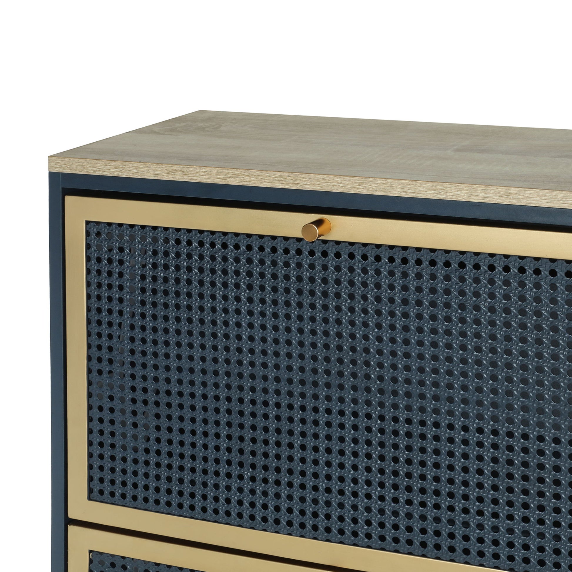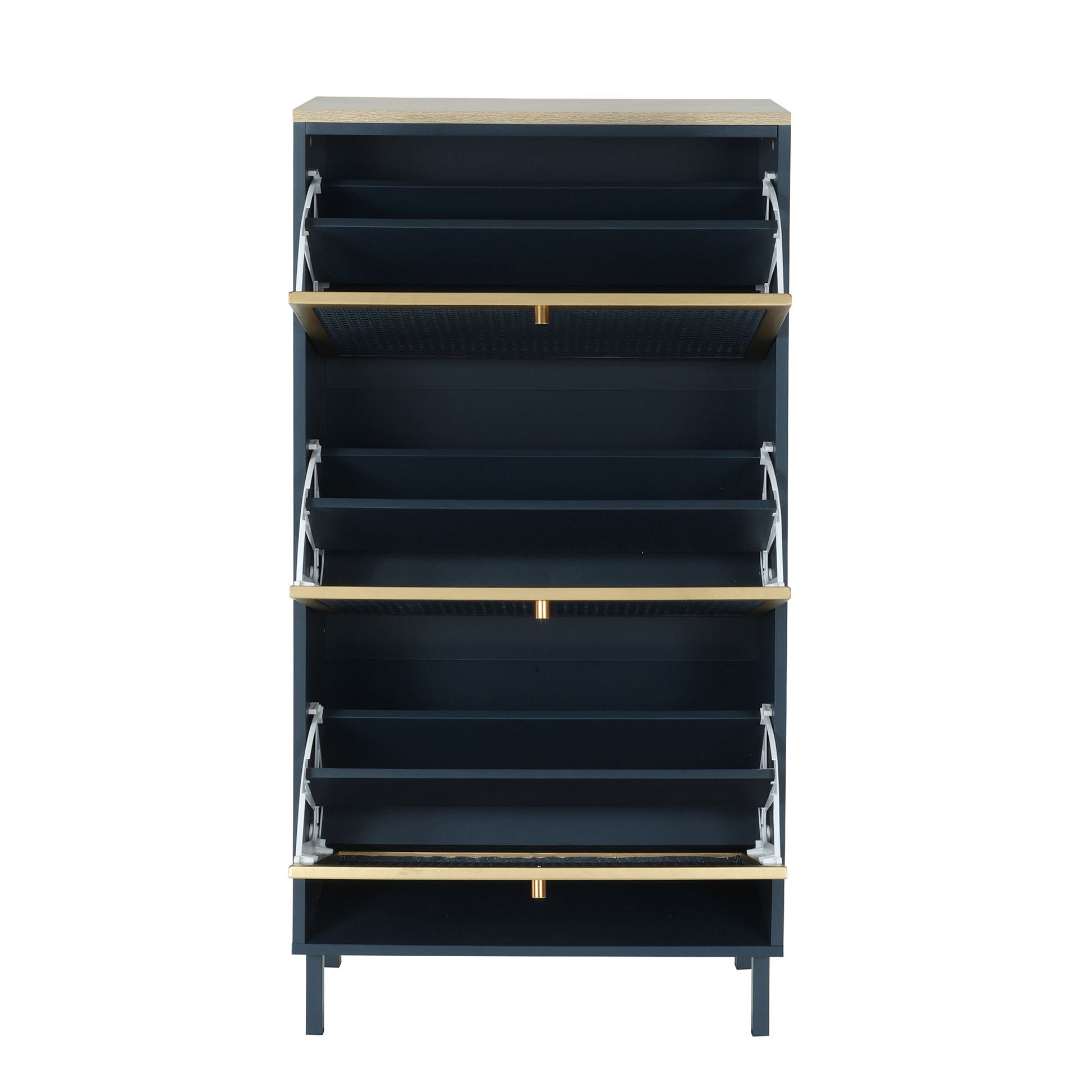 3 Door Metal Shoe Rack, Freestanding Modern Shoe Storage Cabinet With Metal Rattan, Particle Board For Entryway - Blue Gray