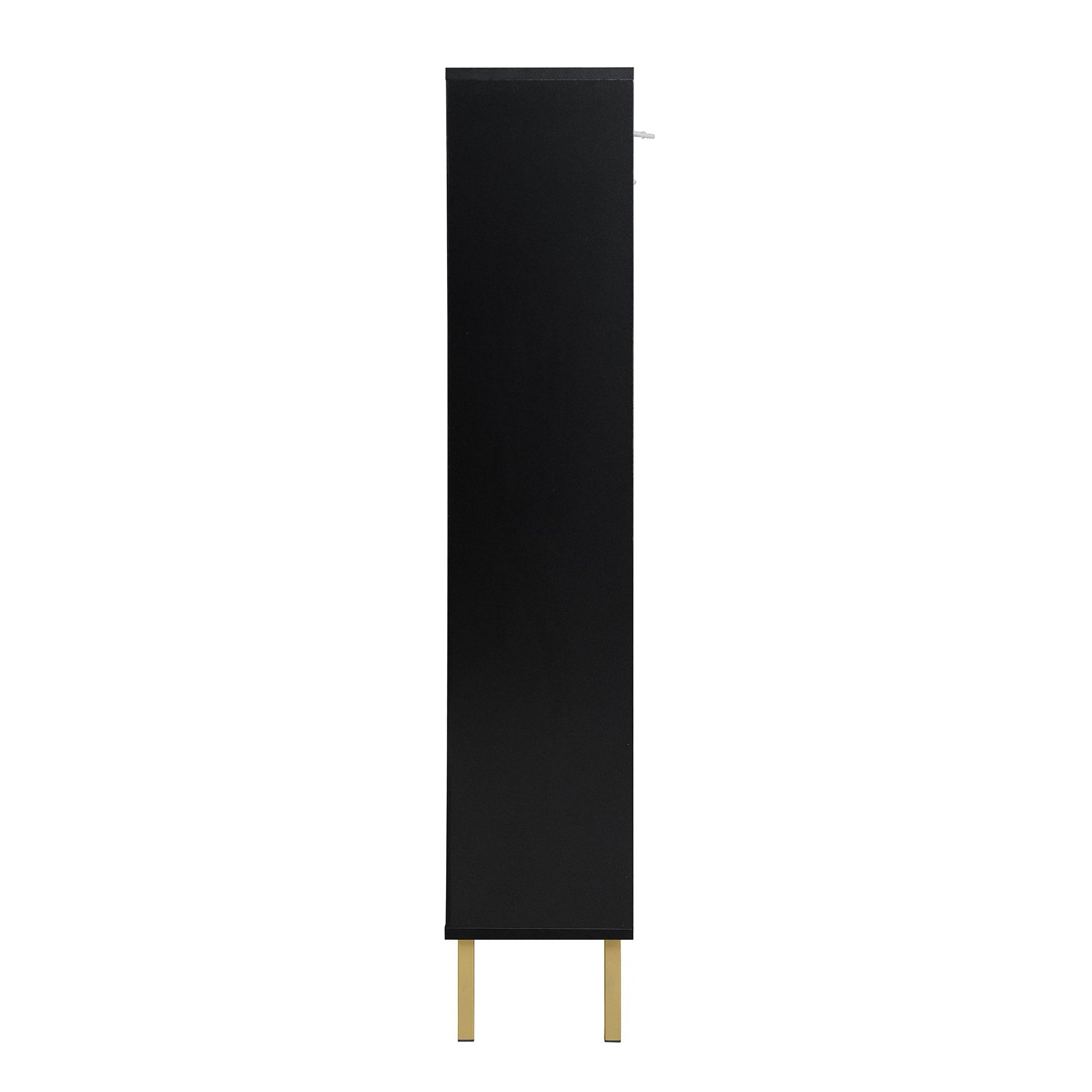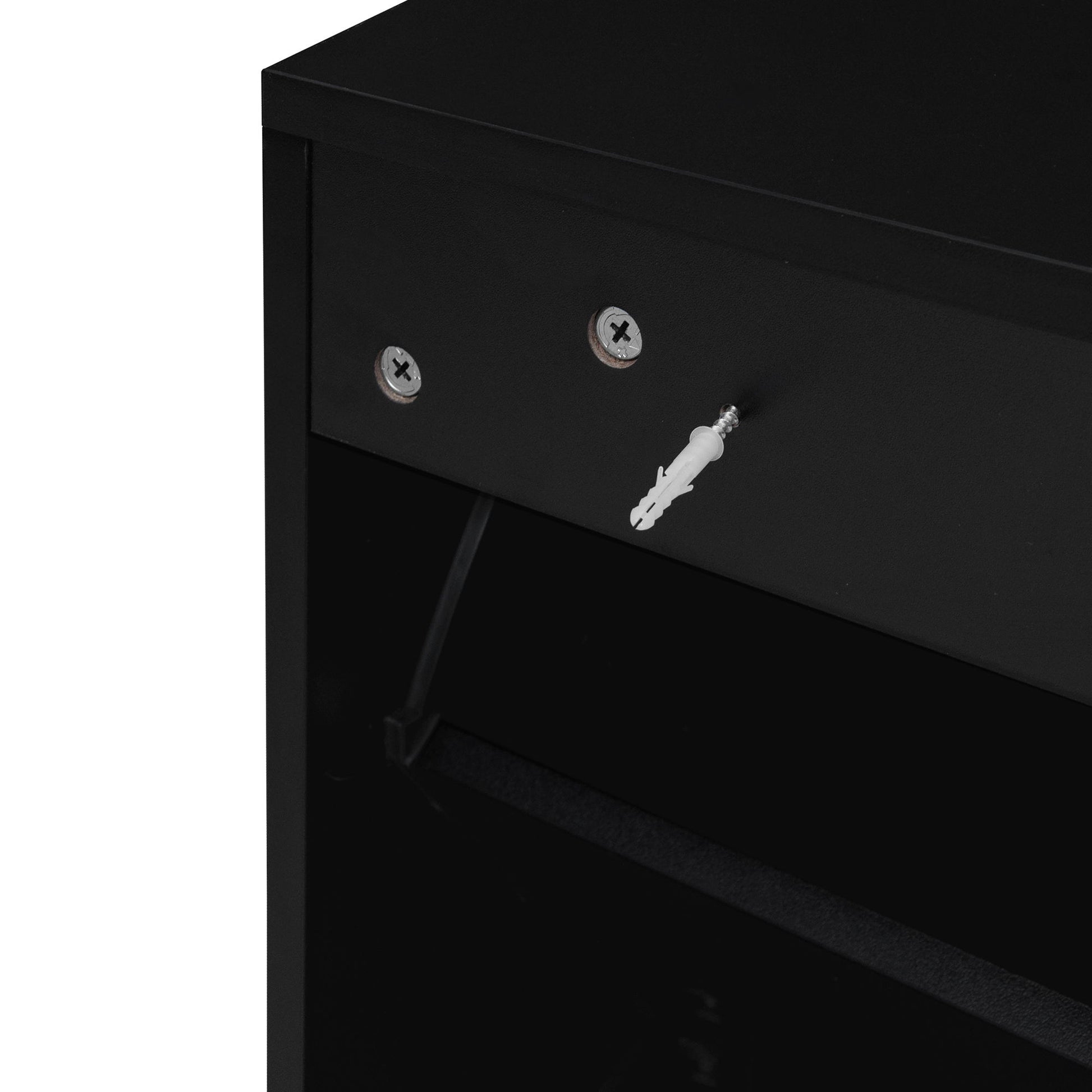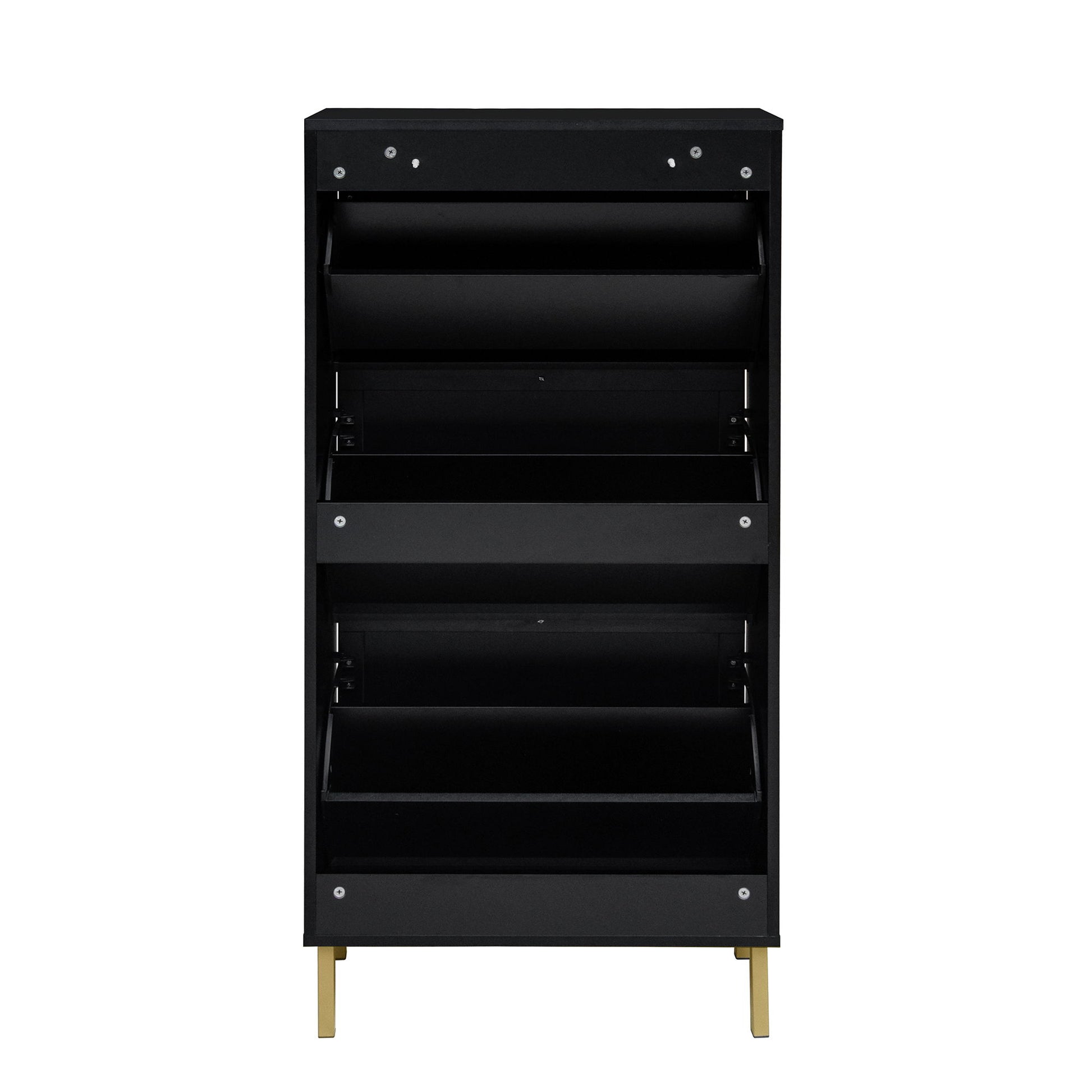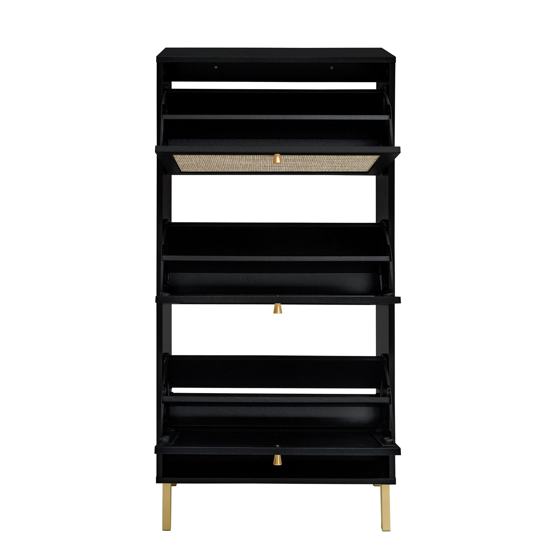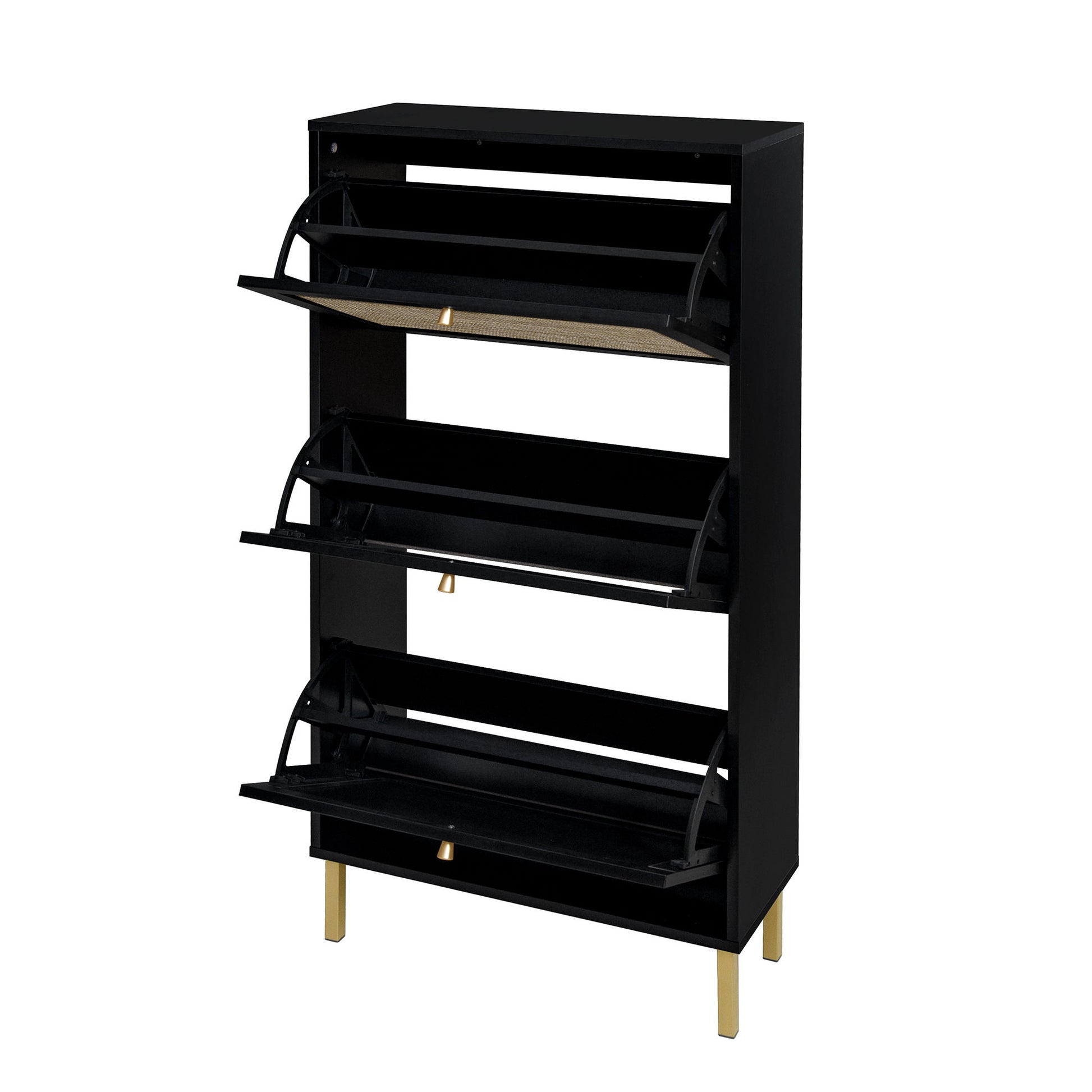Modern Rattan 3 Door Shoe Rack Cabinet For Entryway Freestanding Black Storage Unit In Particle Board - Black