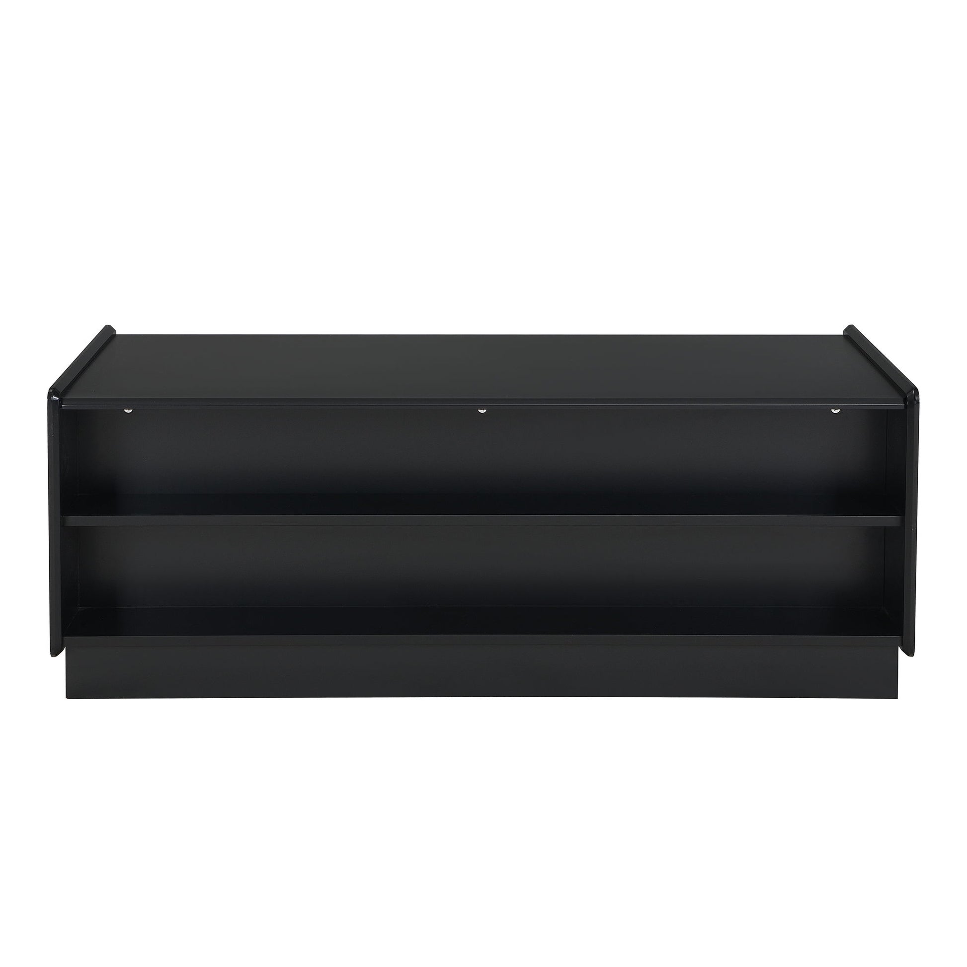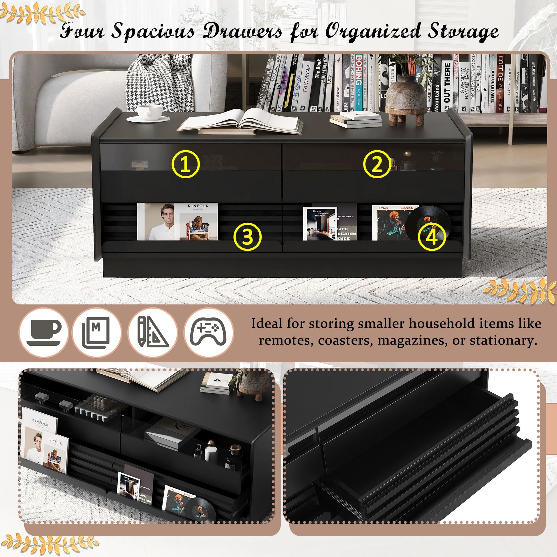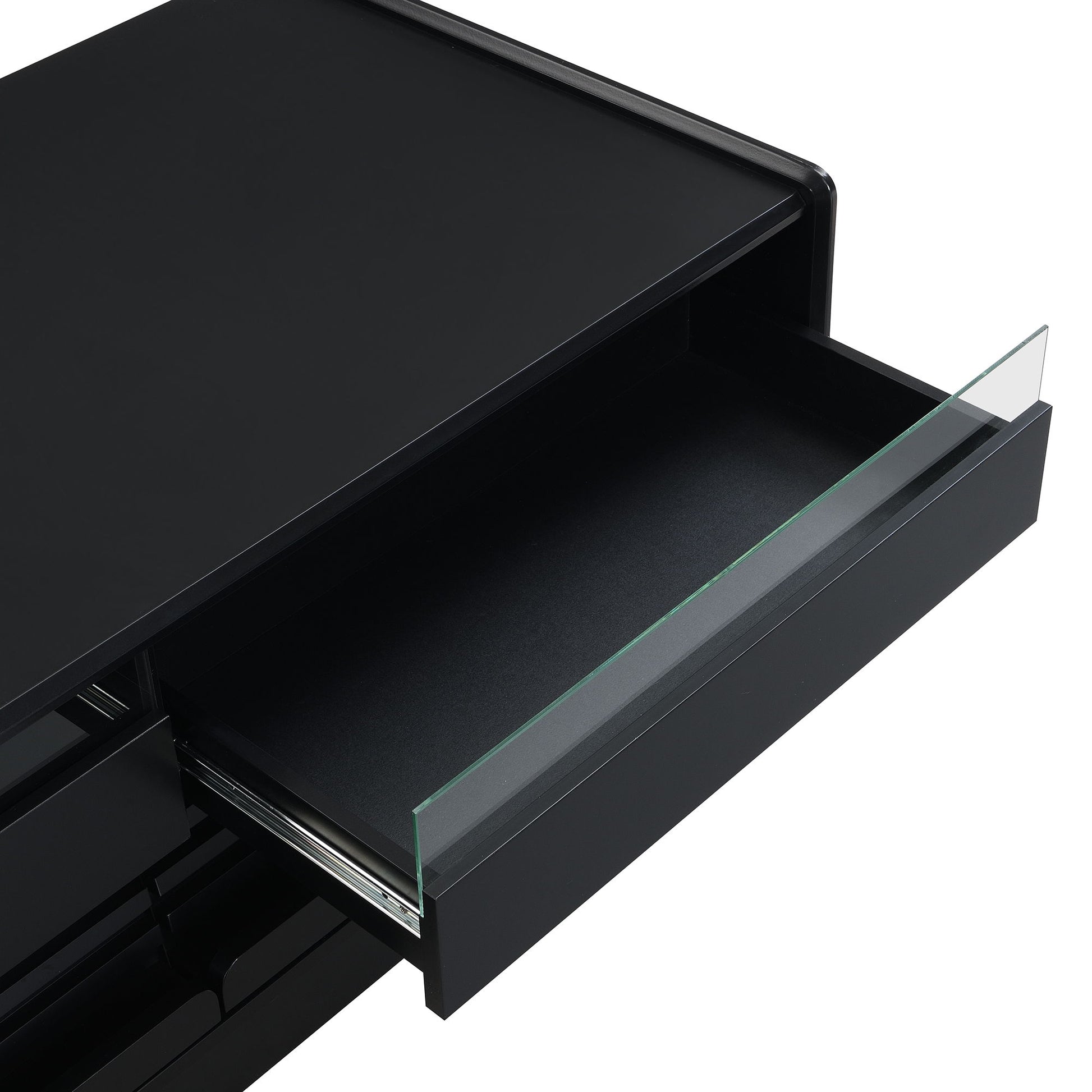 Modern Rectangle Coffee Table With 4 Drawers And 2 Display Shelves, Tempered Glass For Living Room - Black