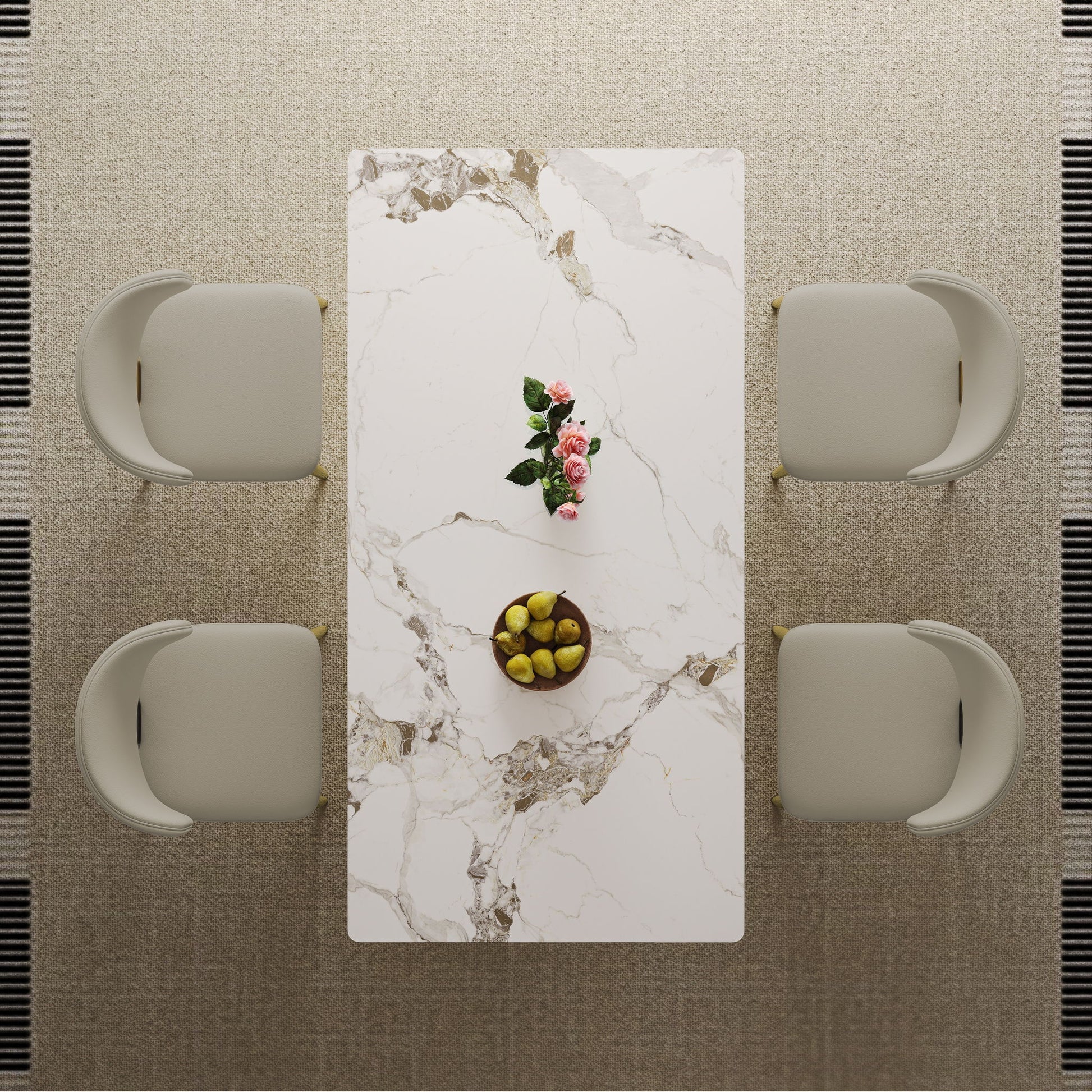 Modern Rectangular Dining Table For 6 - 8, Plated Hourglass Base, Sintered Stone Top - Gold / White