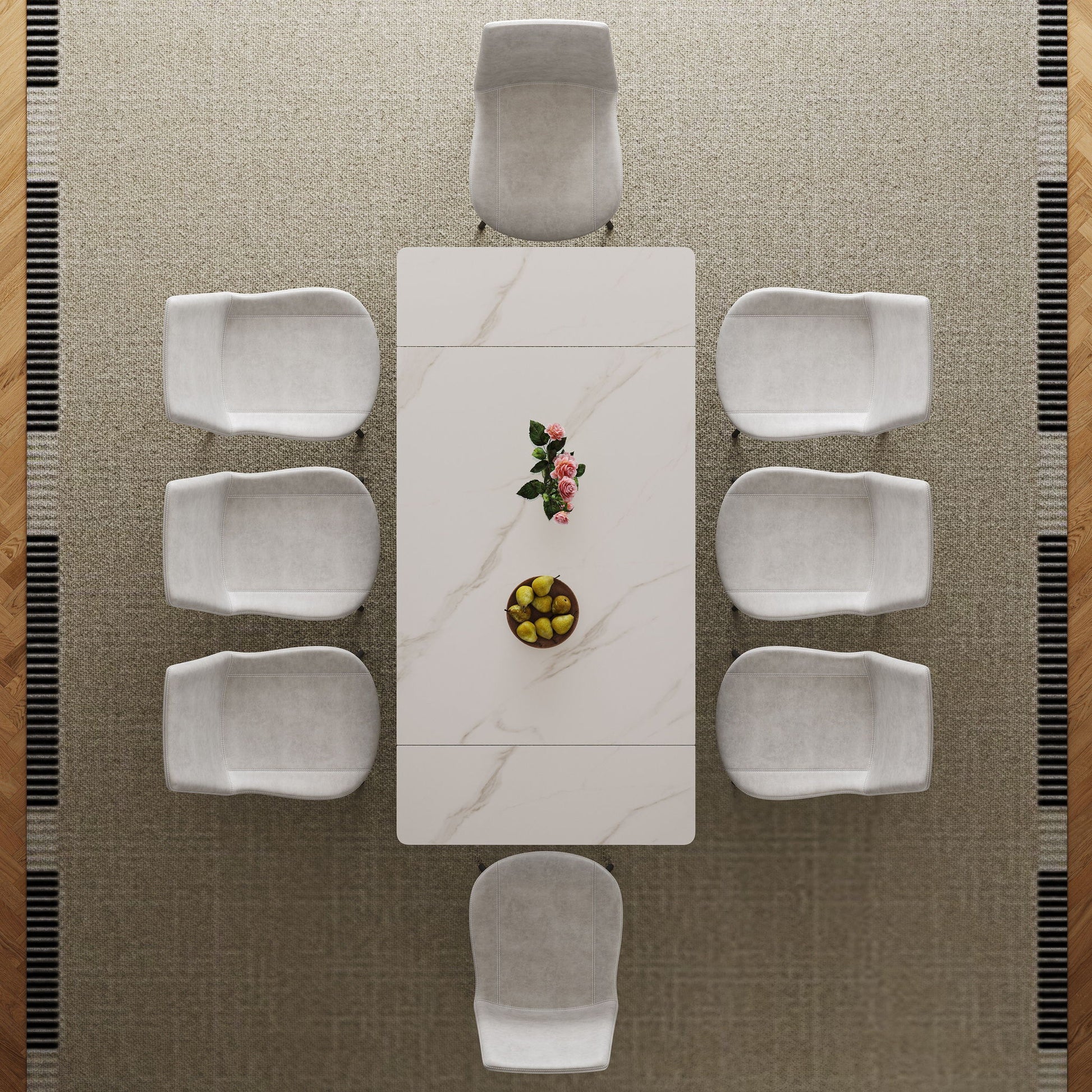 Retractable Dining Table With Carbon Steel Legs, For 6 - 8 Seats - White