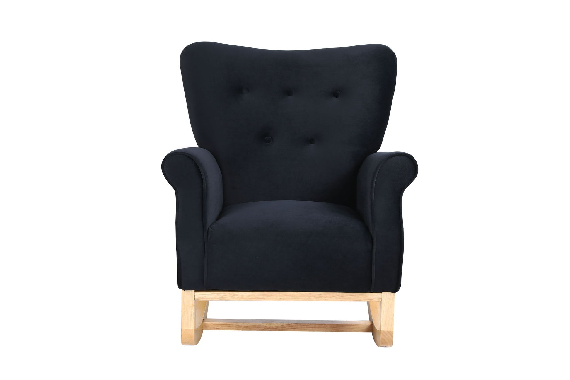Mid-Century Rocker Chair With Wood Legs And Velvet For Livingroom Bedroom - Black