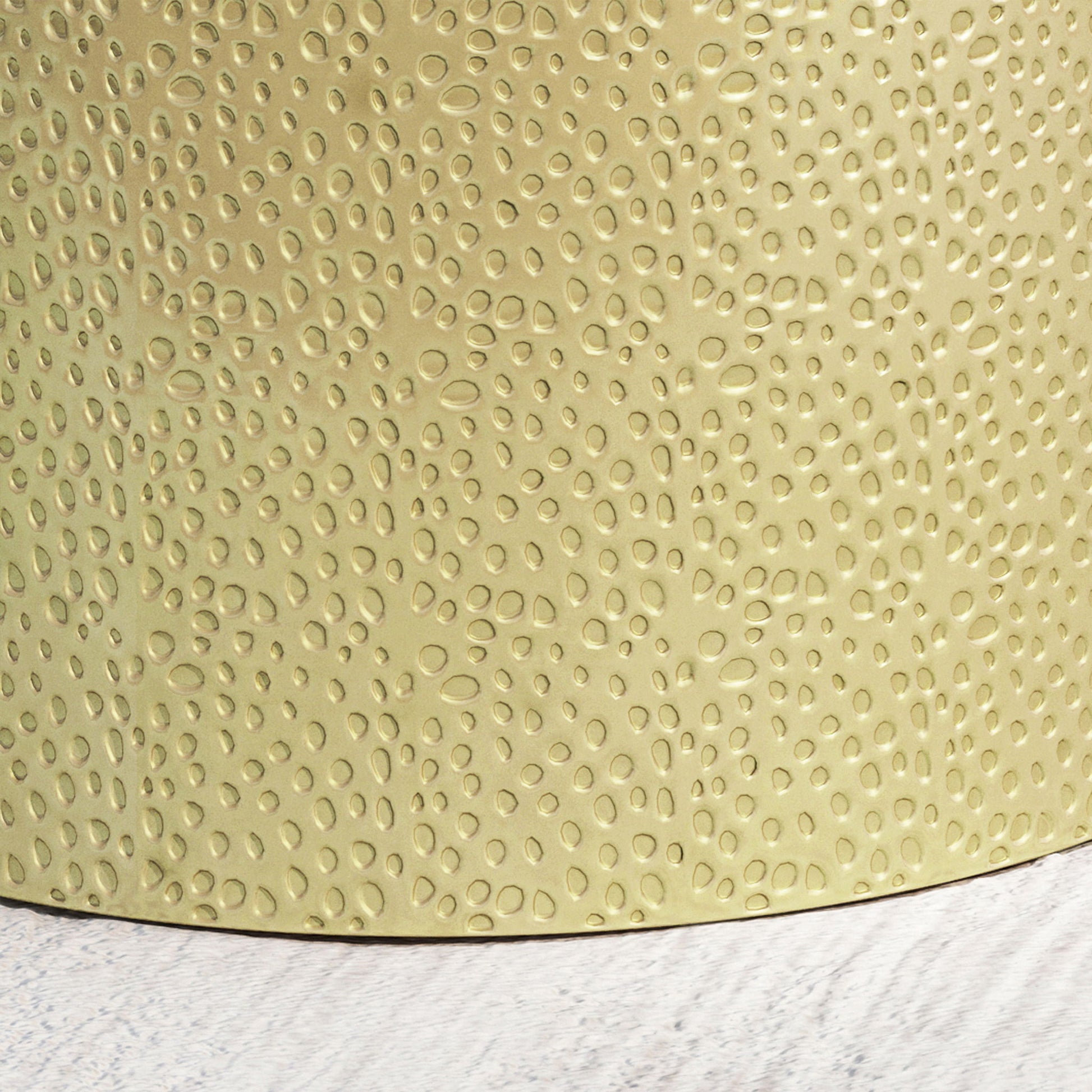 - HAMMERED METAL: This table features a hammered surface to create a gorgeous textured look. This finish allows this piece aesthetic versatility, blending seamlessly with a range of decor styles.