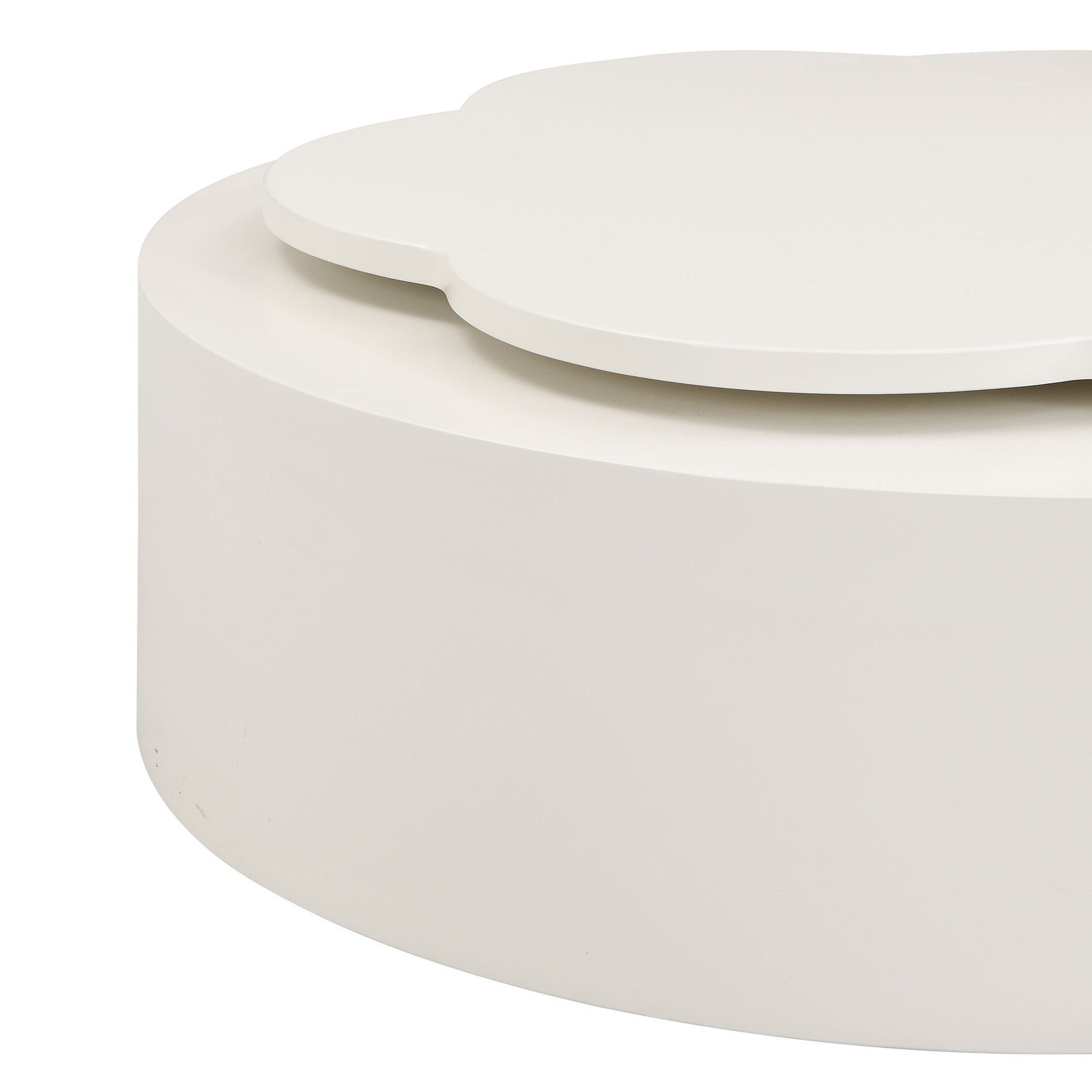 Modern Round Coffee Table (Set of 2), 360 Degree Rotatable Flower Shaped Top With 2 Drawers, Top Circle Side Table End Table With Glass For Living Room - Off White