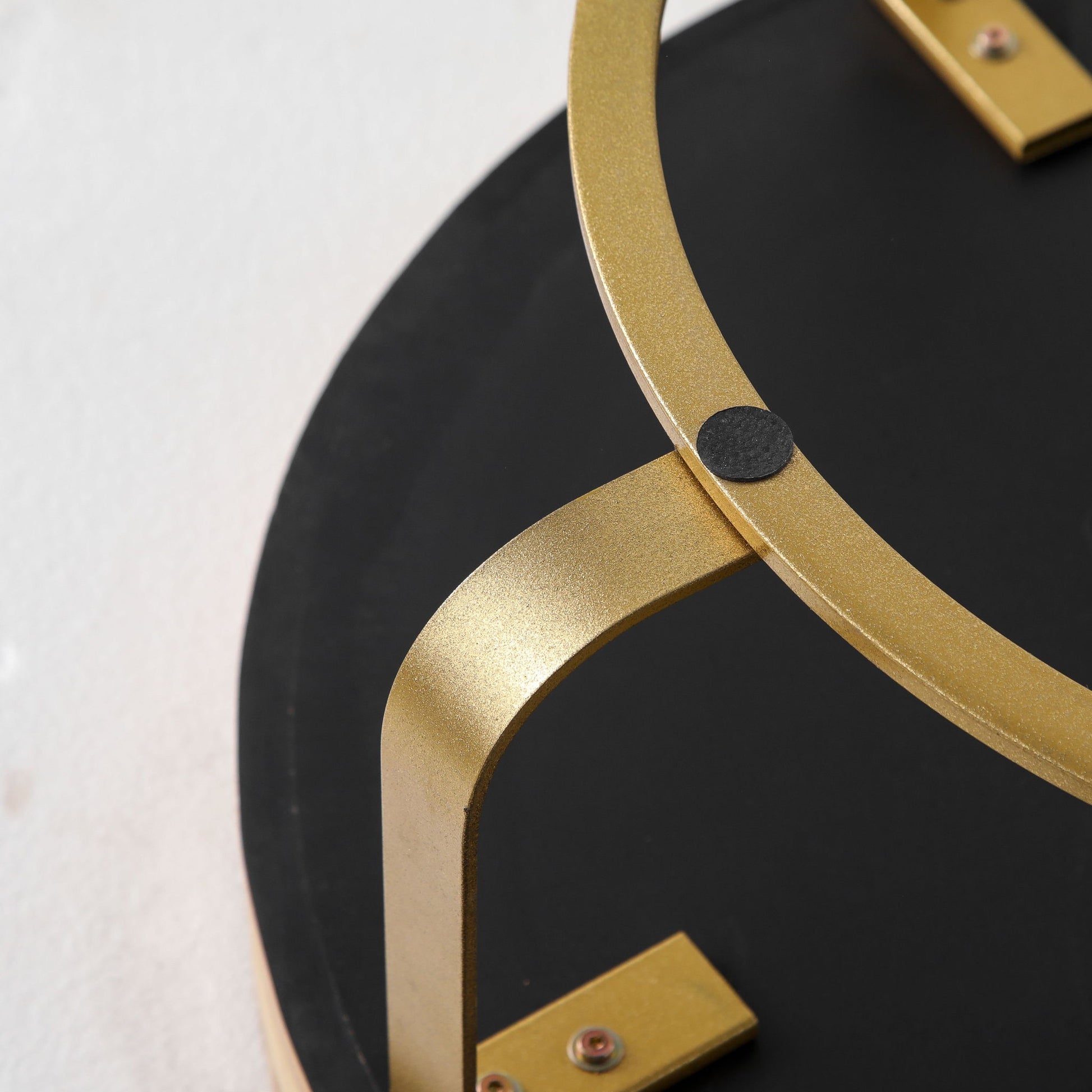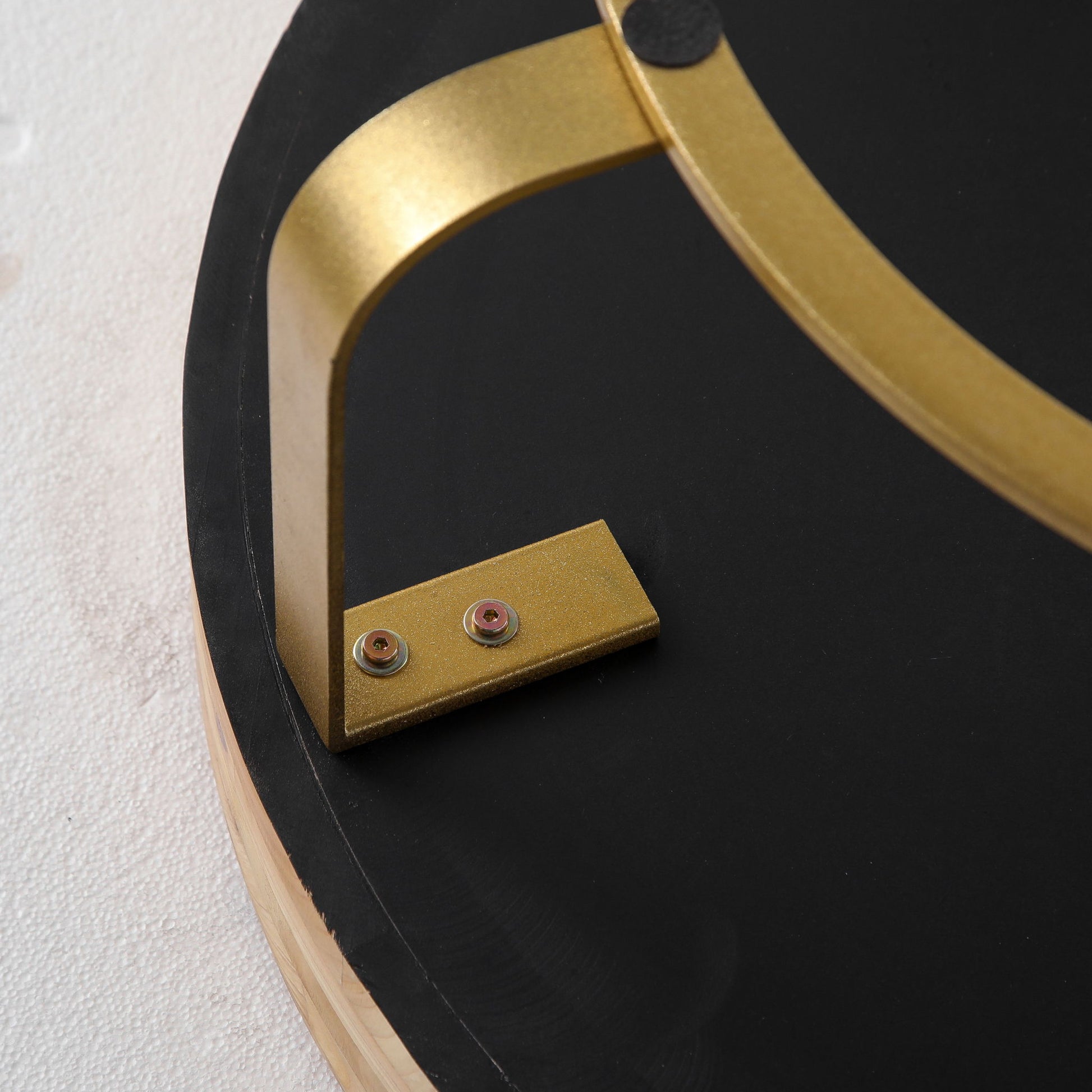 Round Coffee Table With Carving Pattern - Natural / Gold