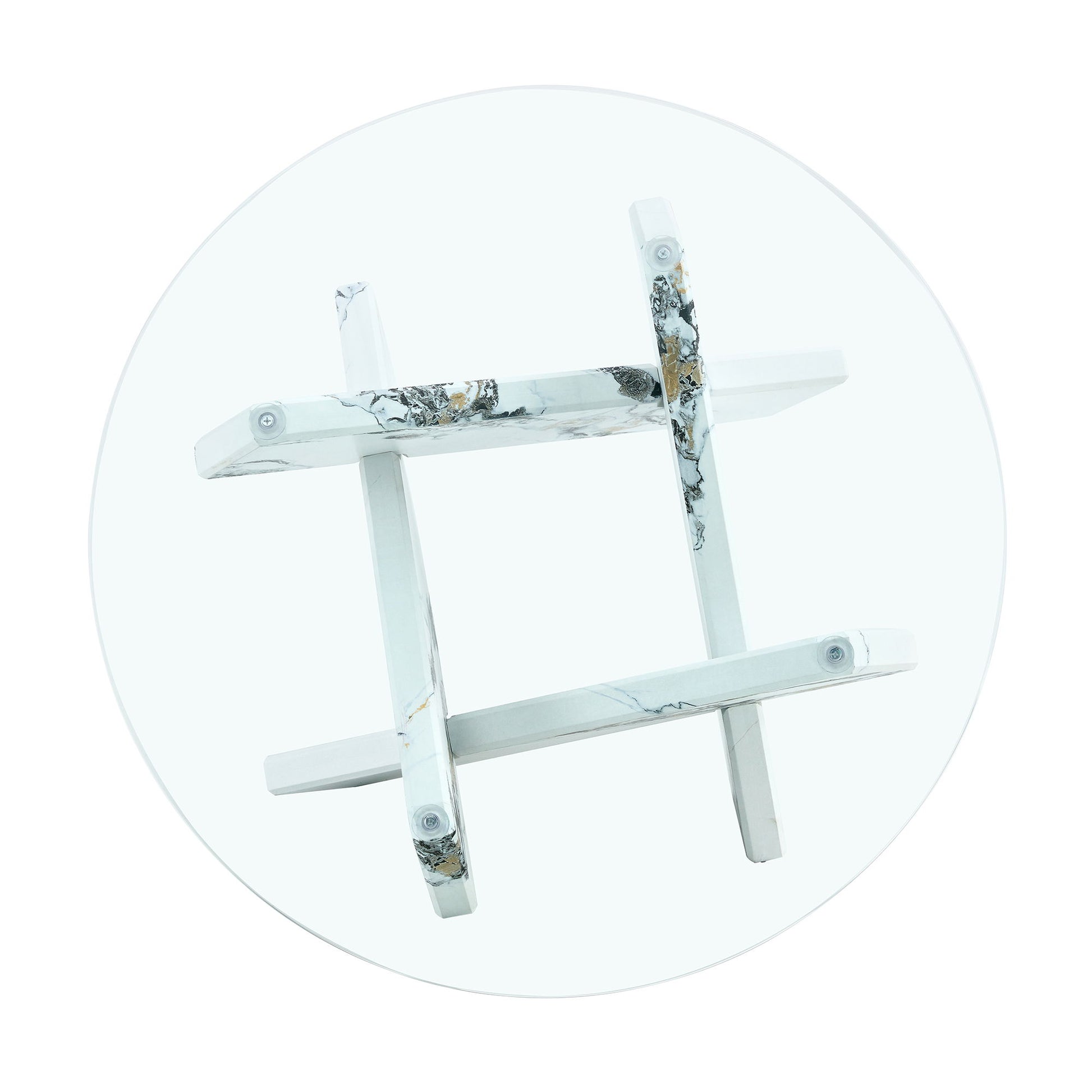 Modern Round Glass Coffee Table With Tempered Glass Countertop - White
